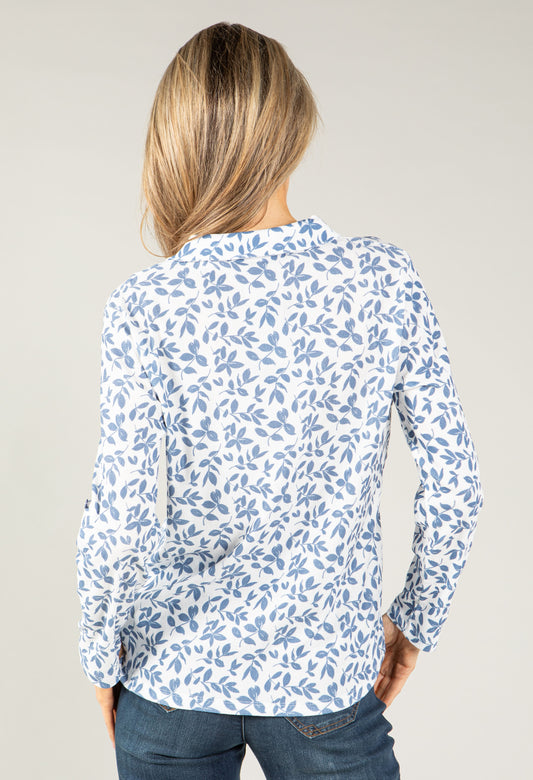 Soft Leaf Print Buttoned Blouse with Sleeves in Light Pink