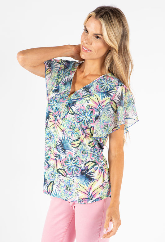 Palm Print Angel Sleeve Top