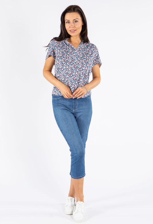 Lux Touch Knit Top in Blue Mix