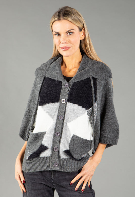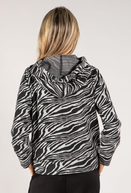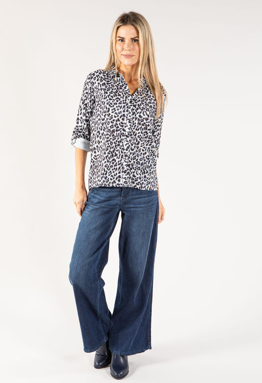 Leo Print Button Down Soft Knit Top in Dark Grey
