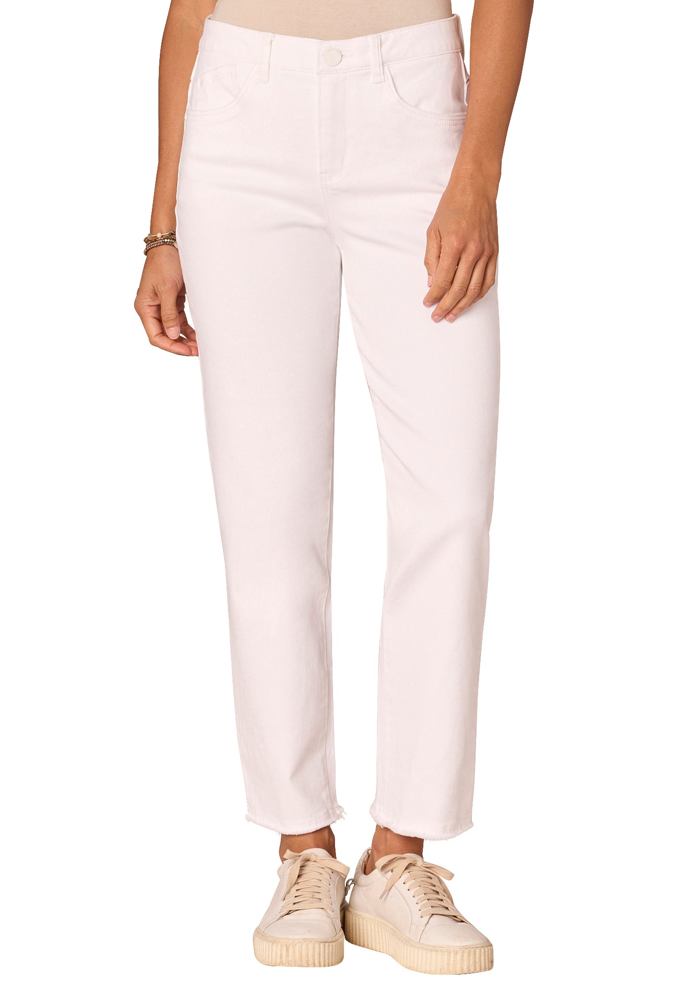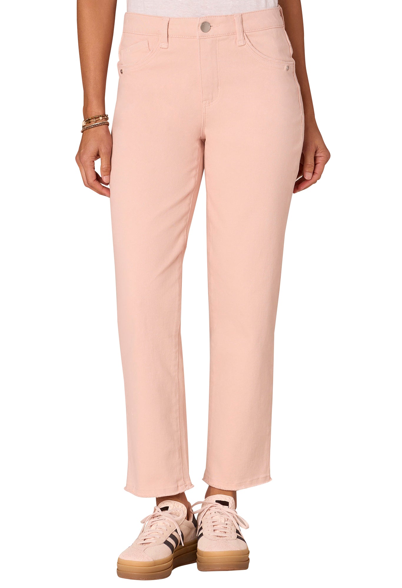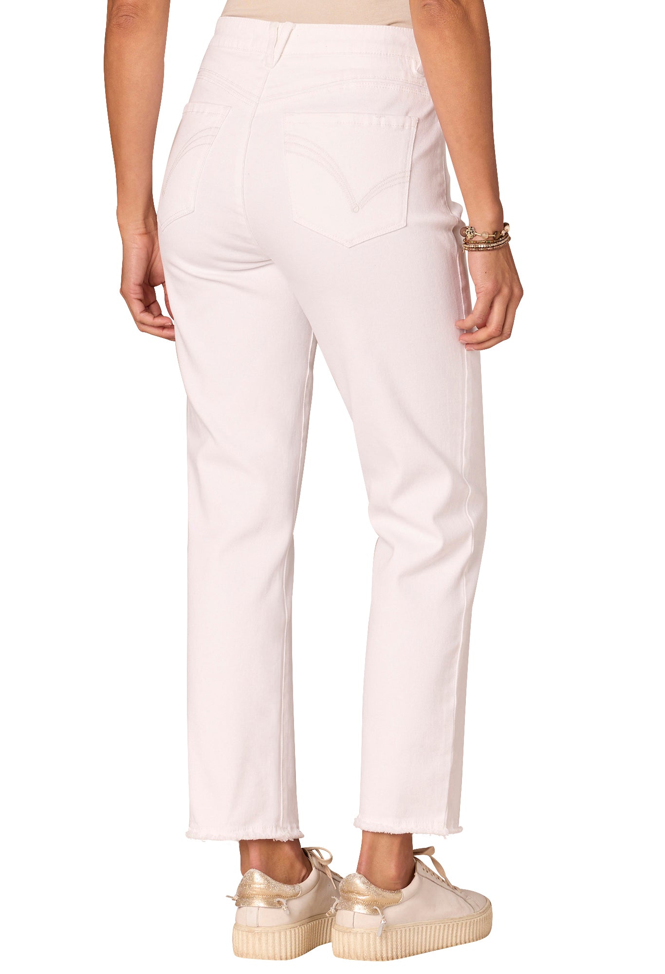 Embrace unique shades and edgy details with this Slim Straight silhouette, designed to look and feel like they were made just for you with our “Ab”solution® fit technology. In addition to their mold-and-hold capabilities, these non-denim bottoms have a high rise waist, embroidered back pockets with a cascading “D” design, a sweetheart shaped yoke, and a clean finish fray hem.