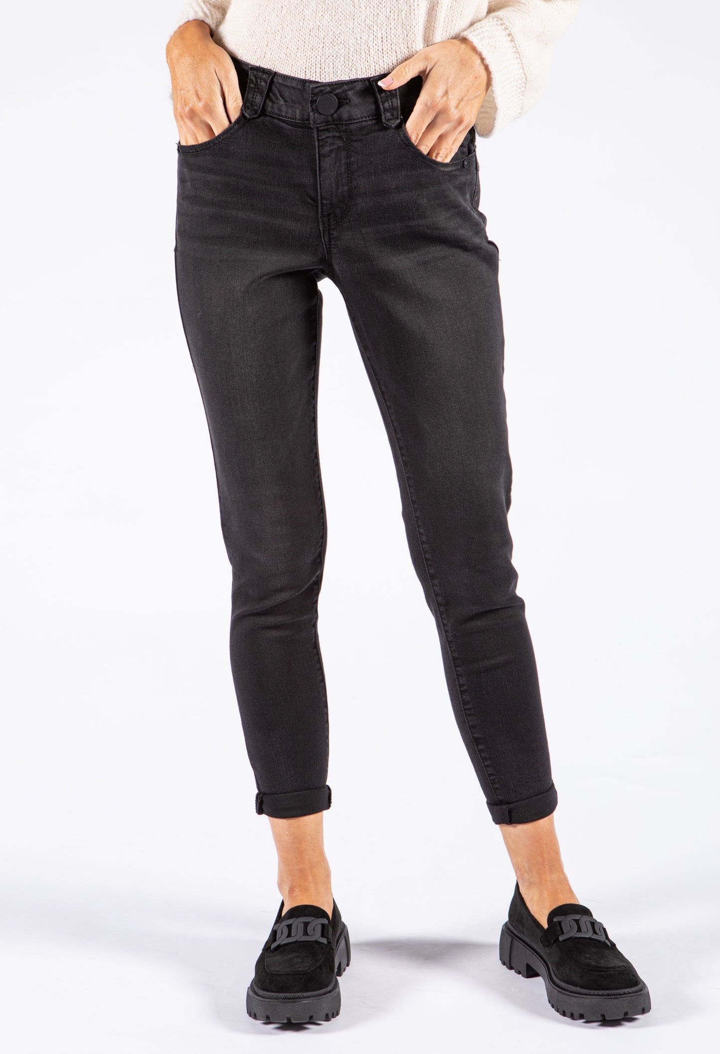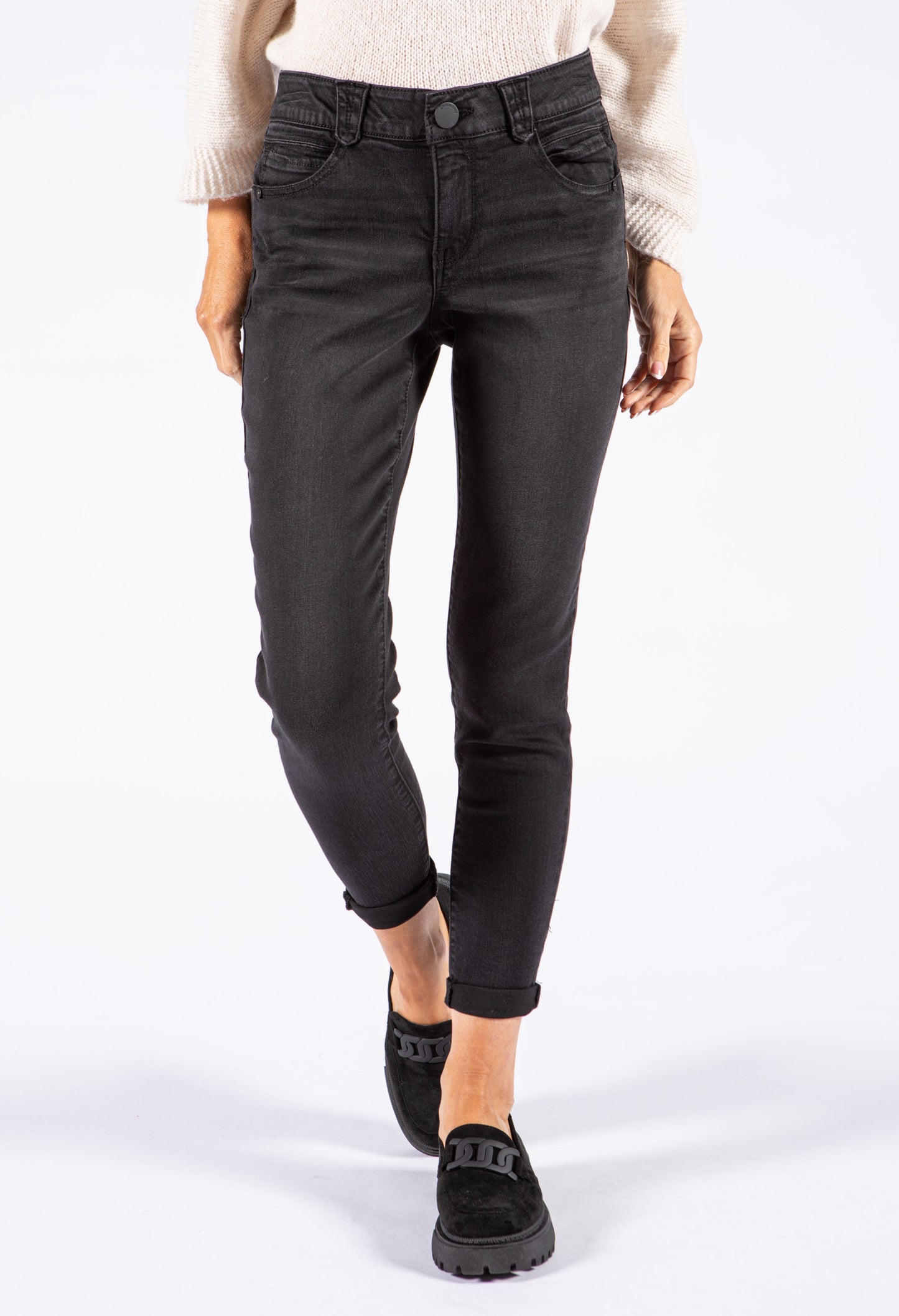 Constructed from buttery-smooth luxe touch premium denim with the perfect amount of stretch and mold-and-hold "Ab"solution® technology no-gap waistband, interior power-mesh panels for total tummy-smoothing control, and an instant "booty-lift" thanks to the strategically placed back pockets. For a length that skims the ankle style these cuffed at the hem, wear them uncuffed for a longer length.