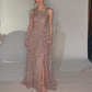 Maya Blush Full Length Sequin Dress with Leg Slit