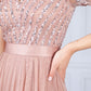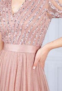 Maya Blush V Neck Sequin and Tulle Dress with Tie Waist