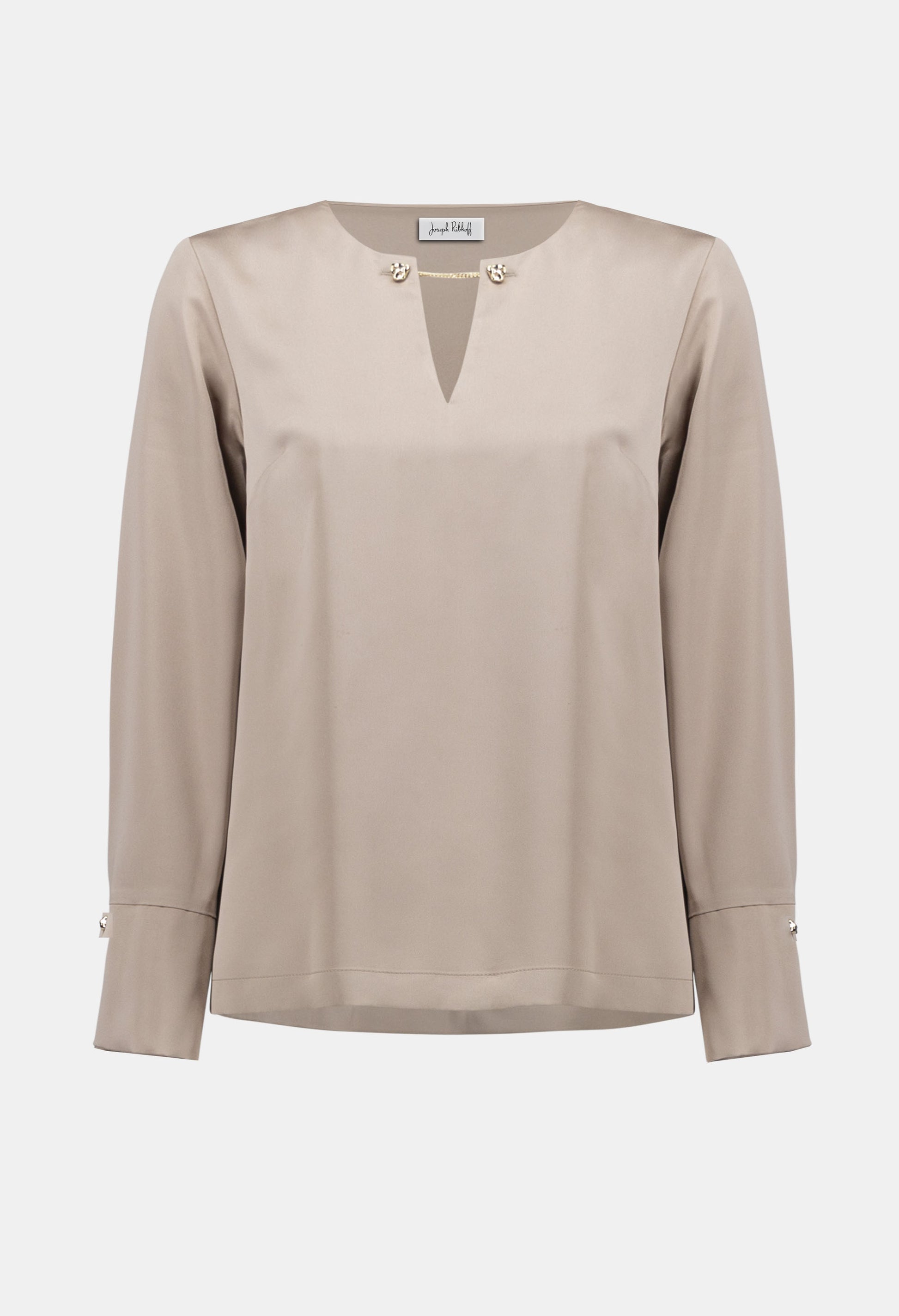 Experience the perfect blend of chic and minimalistic style with this Joseph Ribkoff top. Featuring a flattering v-neck and jewel embellishments, this hip-length, regular-fit piece is ideal for both casual and office settings. The long, straight sleeves and button closure add a touch of elegance to its plain design, making it a versatile addition to your wardrobe.
