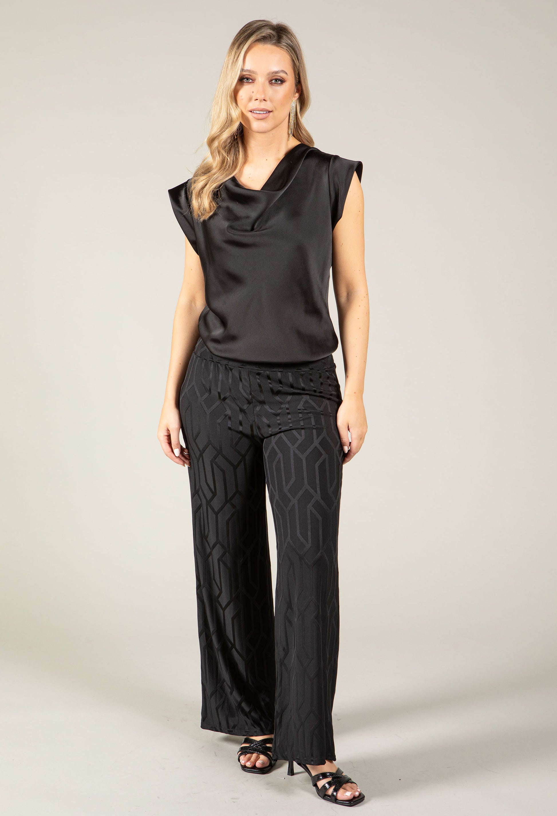 Slip into effortless style with these striking geometric trousers. Featuring a comfortable elasticated waistband and relaxed wide-leg silhouette, they're designed for all-day wear. The stretch fabric moves with you, while the bold geometric pattern adds visual interest to any outfit.