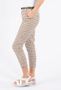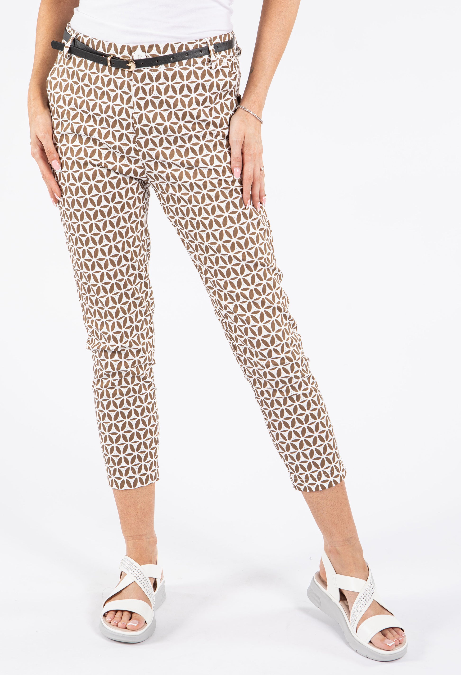 Get ready to elevate your style with these geometric slim fit trousers! With a high rise, button and zip closure, and a stretchy material, these pants offer both comfort and fashion. Plus, you'll love the convenient side pockets and the added bonus of a stylish belt included.