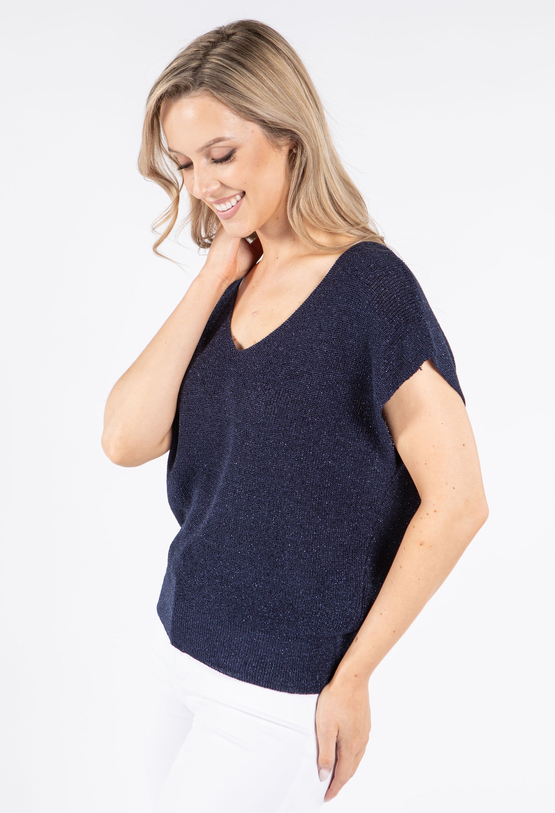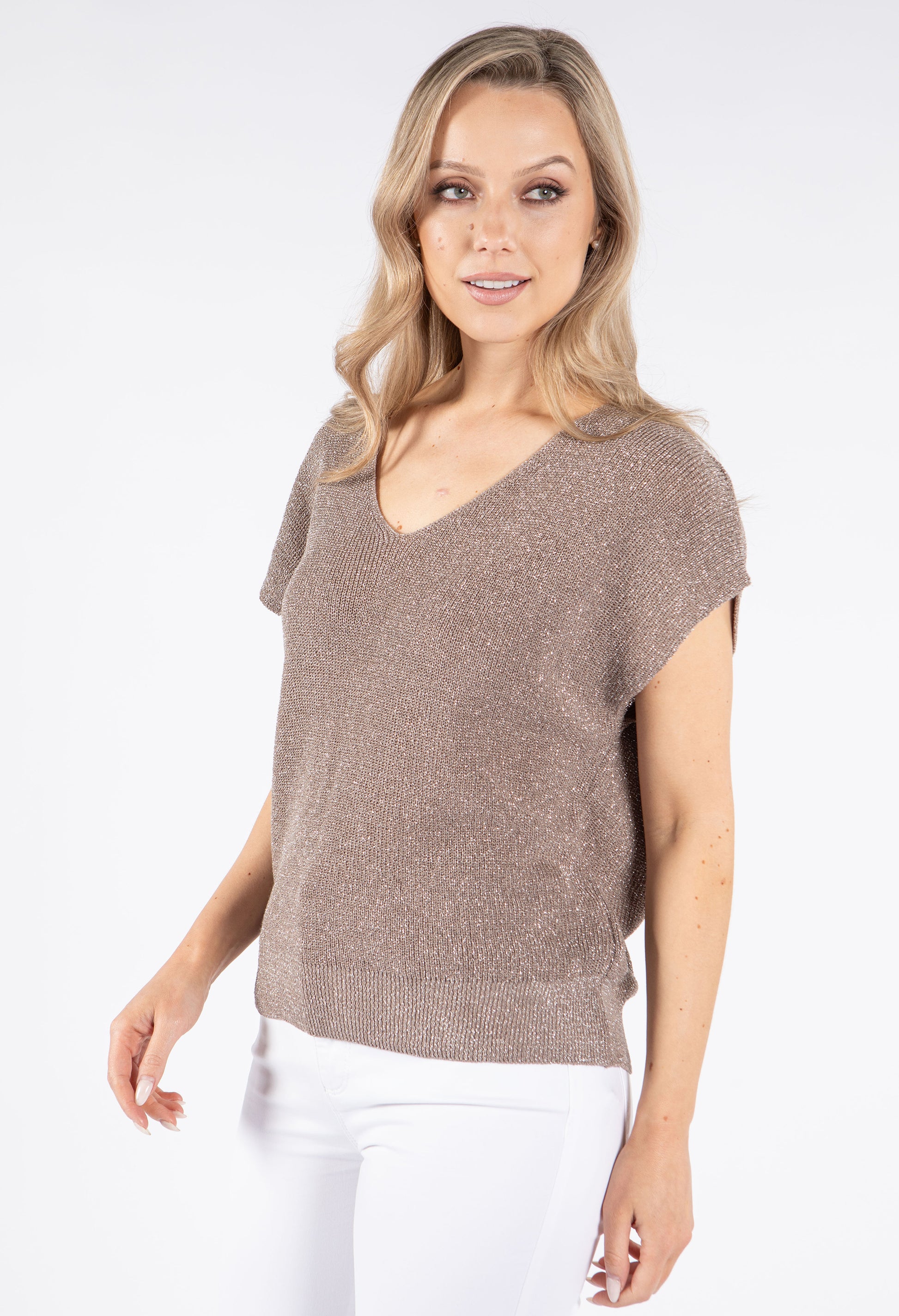 Emporium Lurex Knit Short Sleeve Top