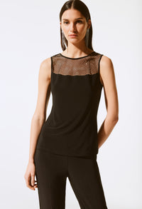 Embrace effortless chic with this sleeveless pullover. The boat neck and hip-length design make it perfect for a casual night out. The mesh detailing adds a touch of minimalistic style, while the regular fit ensures comfort all day long.