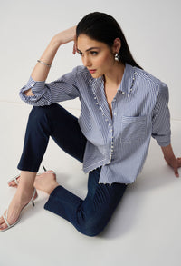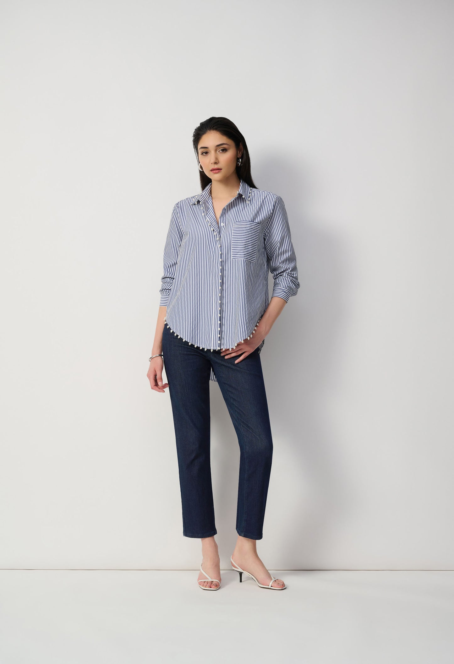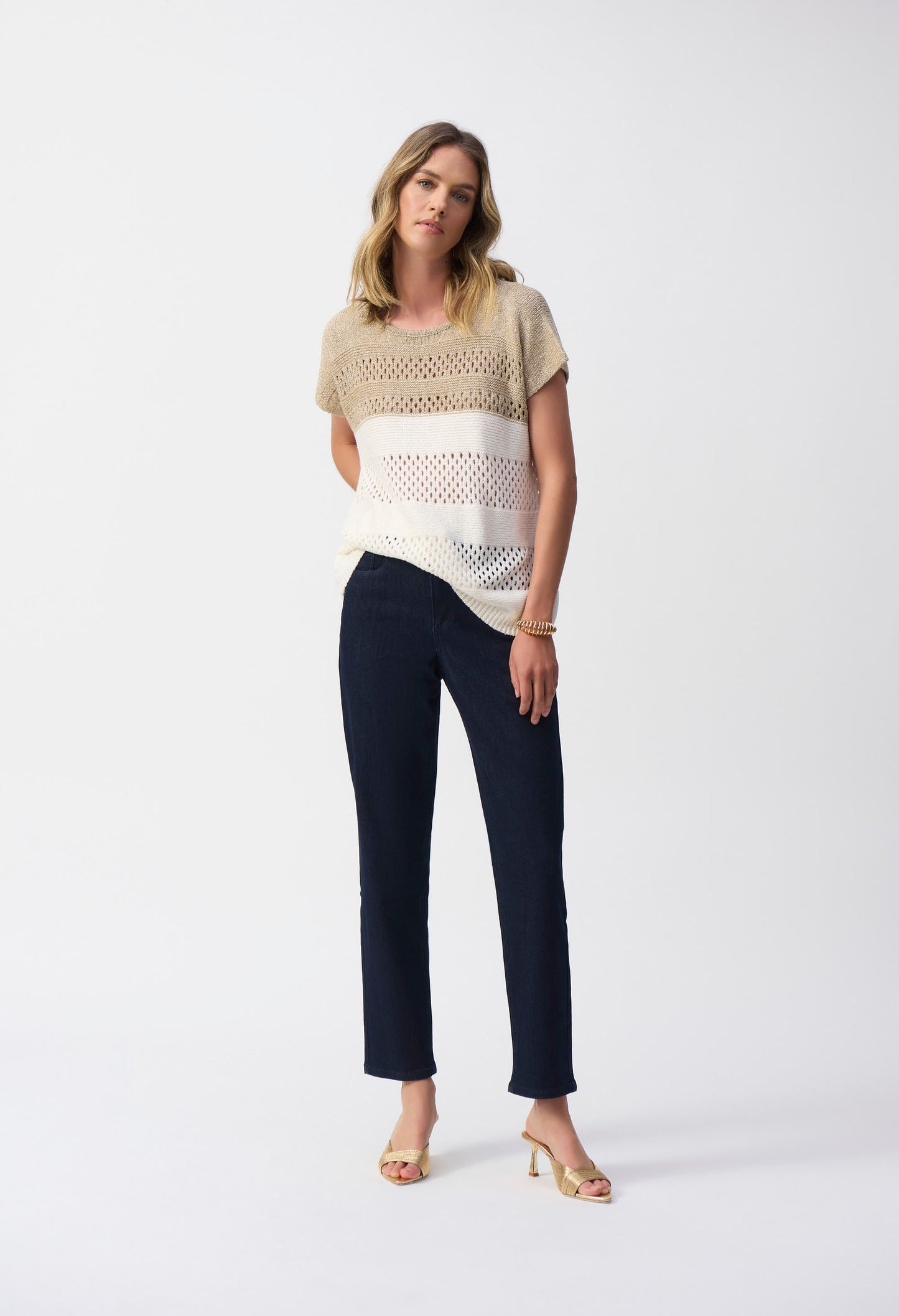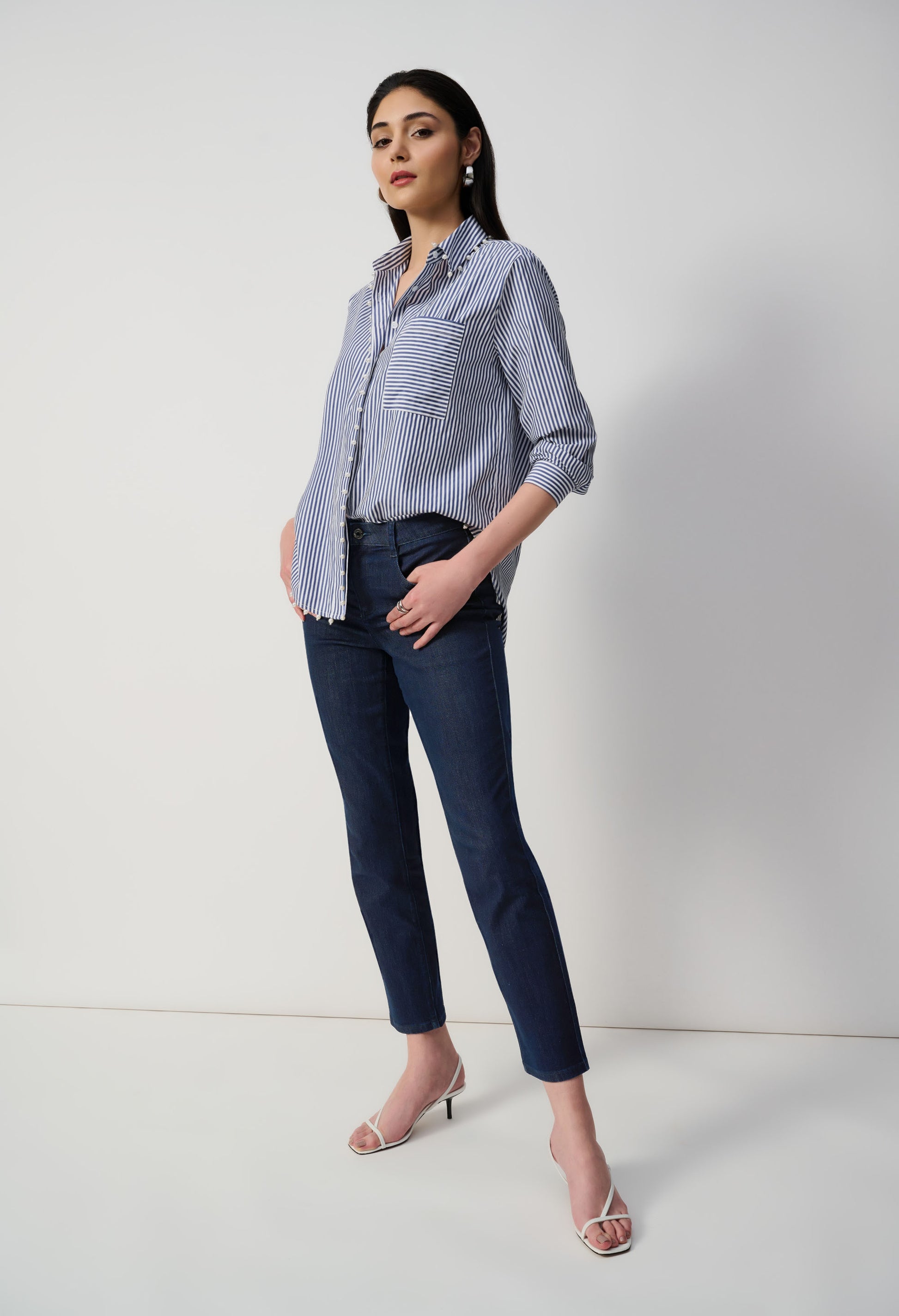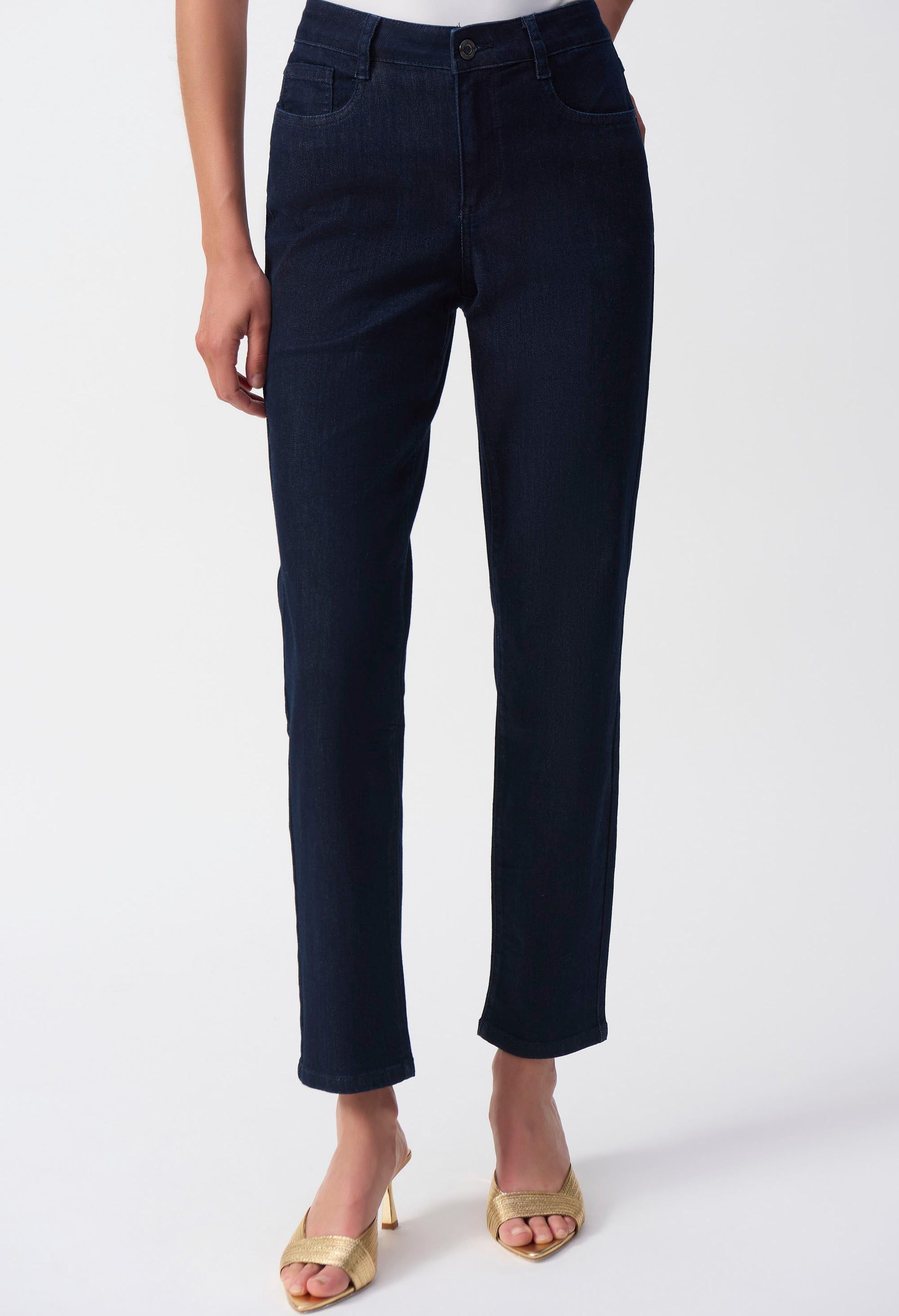 Discover the perfect blend of comfort and style with Joseph Ribkoff's full-length, straight-fit jeans. Ideal for casual occasions, these mid-rise jeans feature a plain pattern and practical elements such as buttoned closures and pockets. Embrace effortless fashion with these versatile bottoms, designed to seamlessly complement your everyday wardrobe.