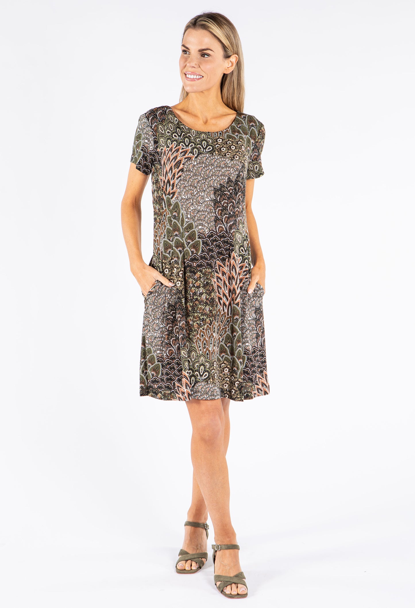 Connected Peacock Print Dress