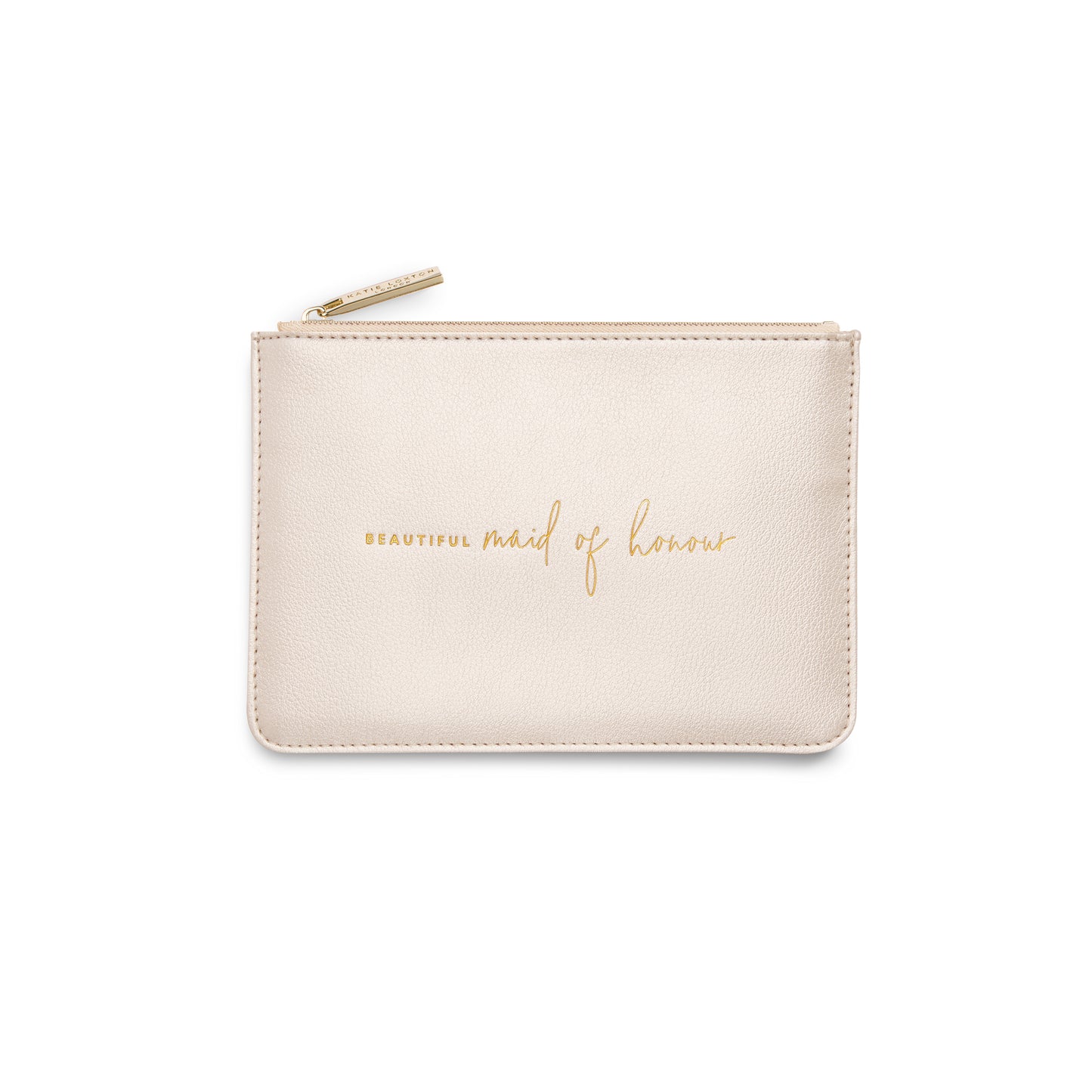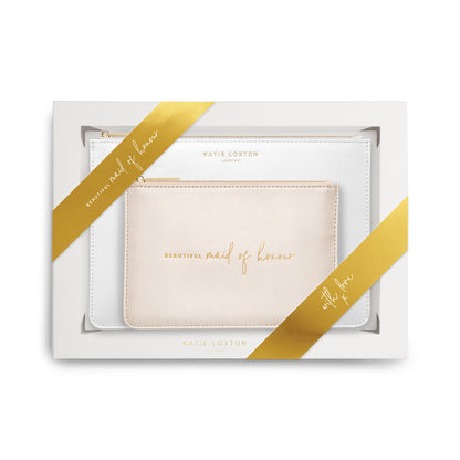 Make saying 'I do' a dream come true with the most perfect bridal accessories! This chic bridal Perfect Pouch Gift Set includes an enchanting metallic plain pouch for wearing every day before, during and after the wedding as well as a lovely 'Beautiful Maid of Honour' stamped mini pouch; a gorgeous token to remind them of every happy ever after moment!
