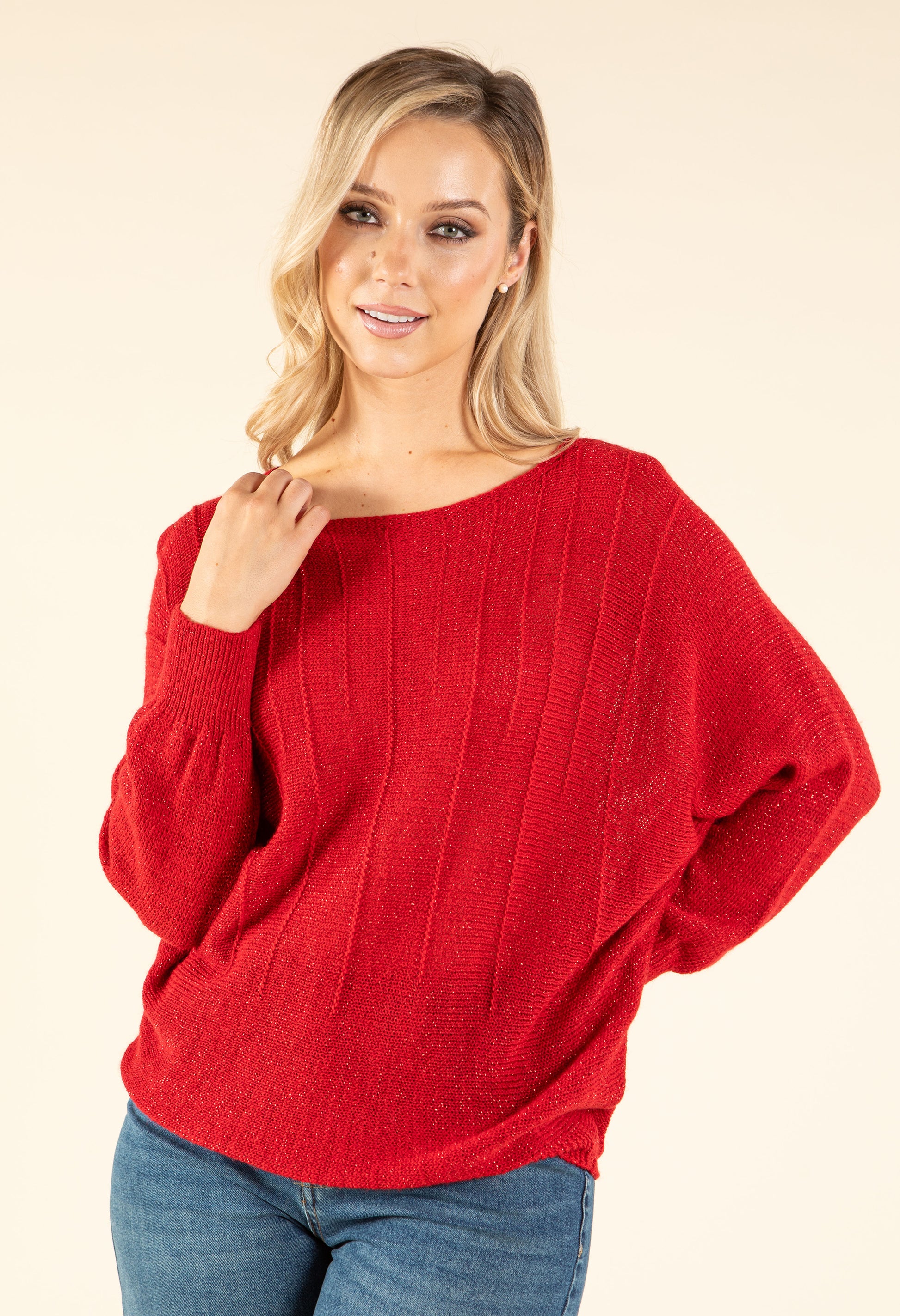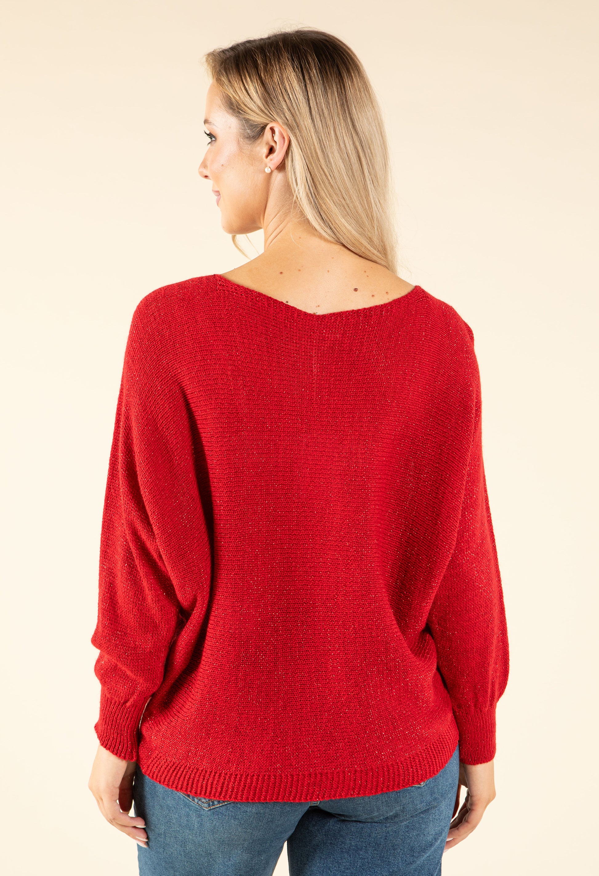 This sophisticated jumper features a round neckline and 3/4 length sleeves, crafted from a wool blend with subtle lurex stitching. Designed with a relaxed fit, it is available in a free size that fits sizes 8 to 14 comfortably.