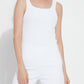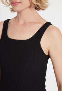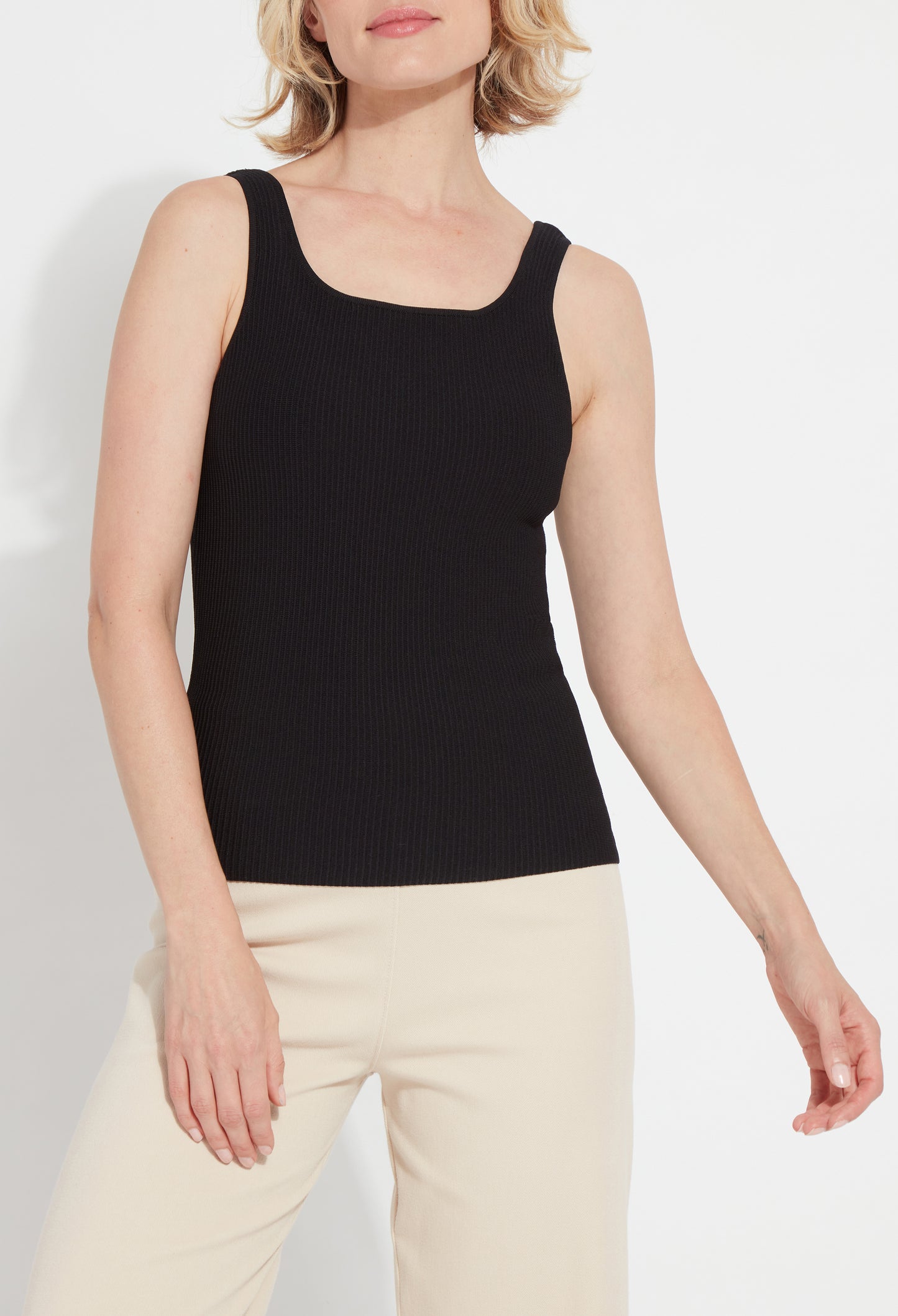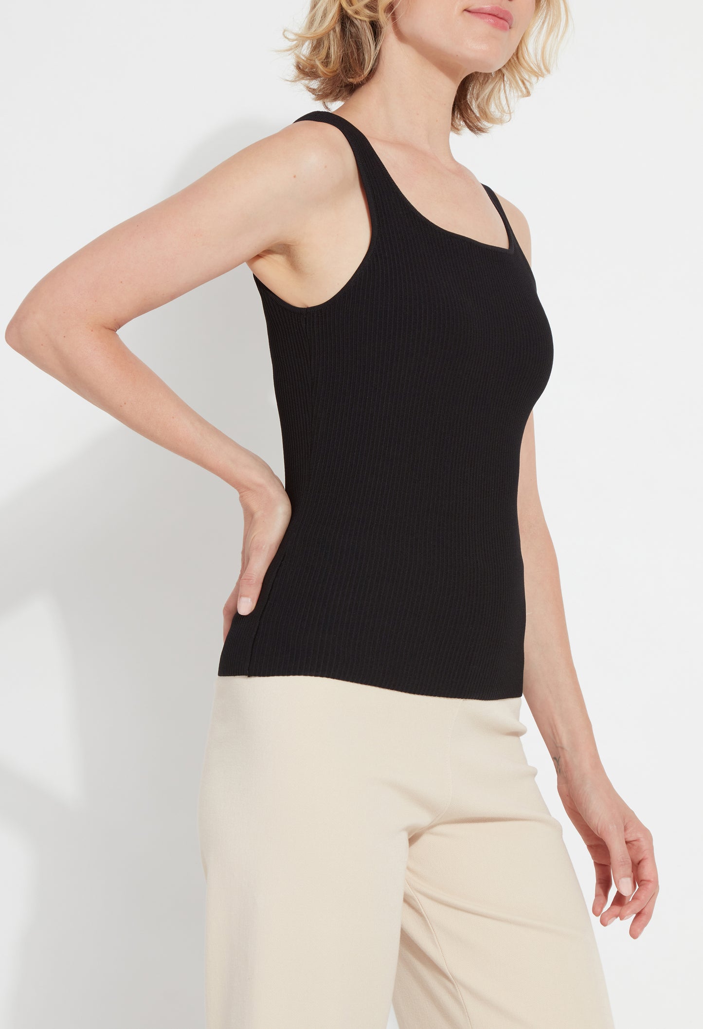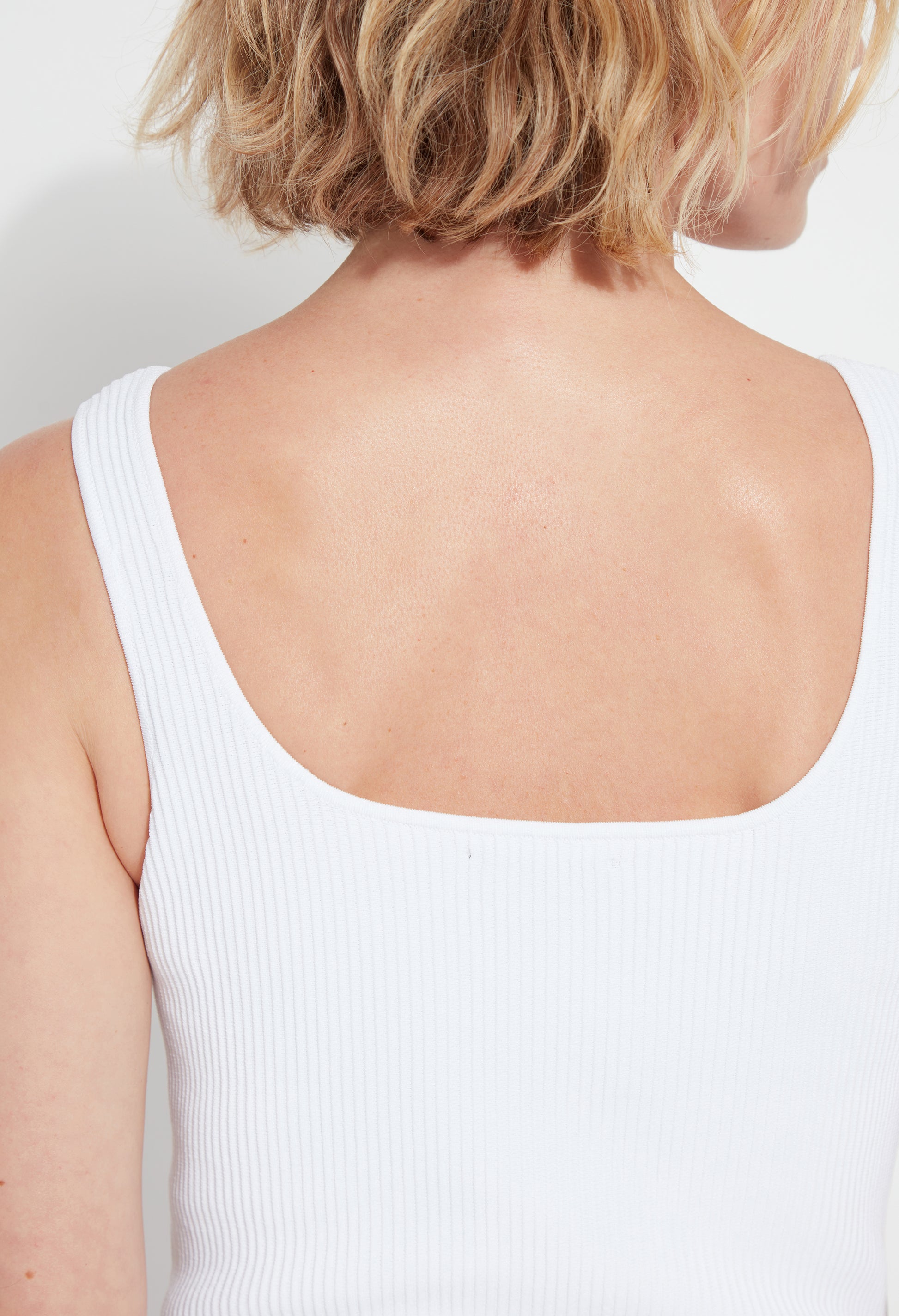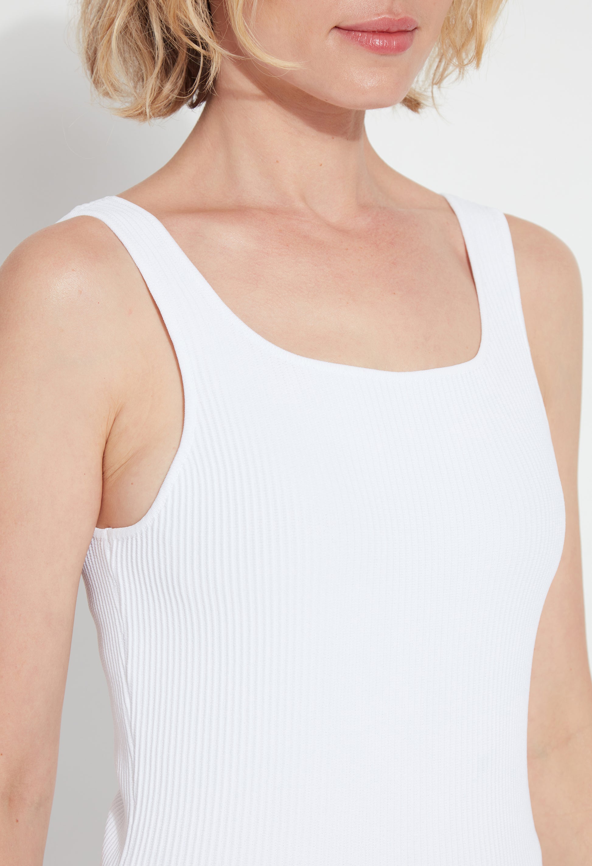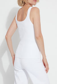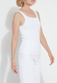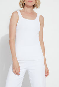 Made from knitted Viscose, Nylon and Spandex, the Avril Sculpting Tank is that timeless essential you’ll grab from your closet again and again. Offering a square front-and-back neckline with knitted tubular finishing, the Avril Sculpting Tank delivers the perfect compression and stretch without being constricting or sheer. It’s bra friendly and partners perfectly with our Premium Denim Frances Wide Leg Crop jean.