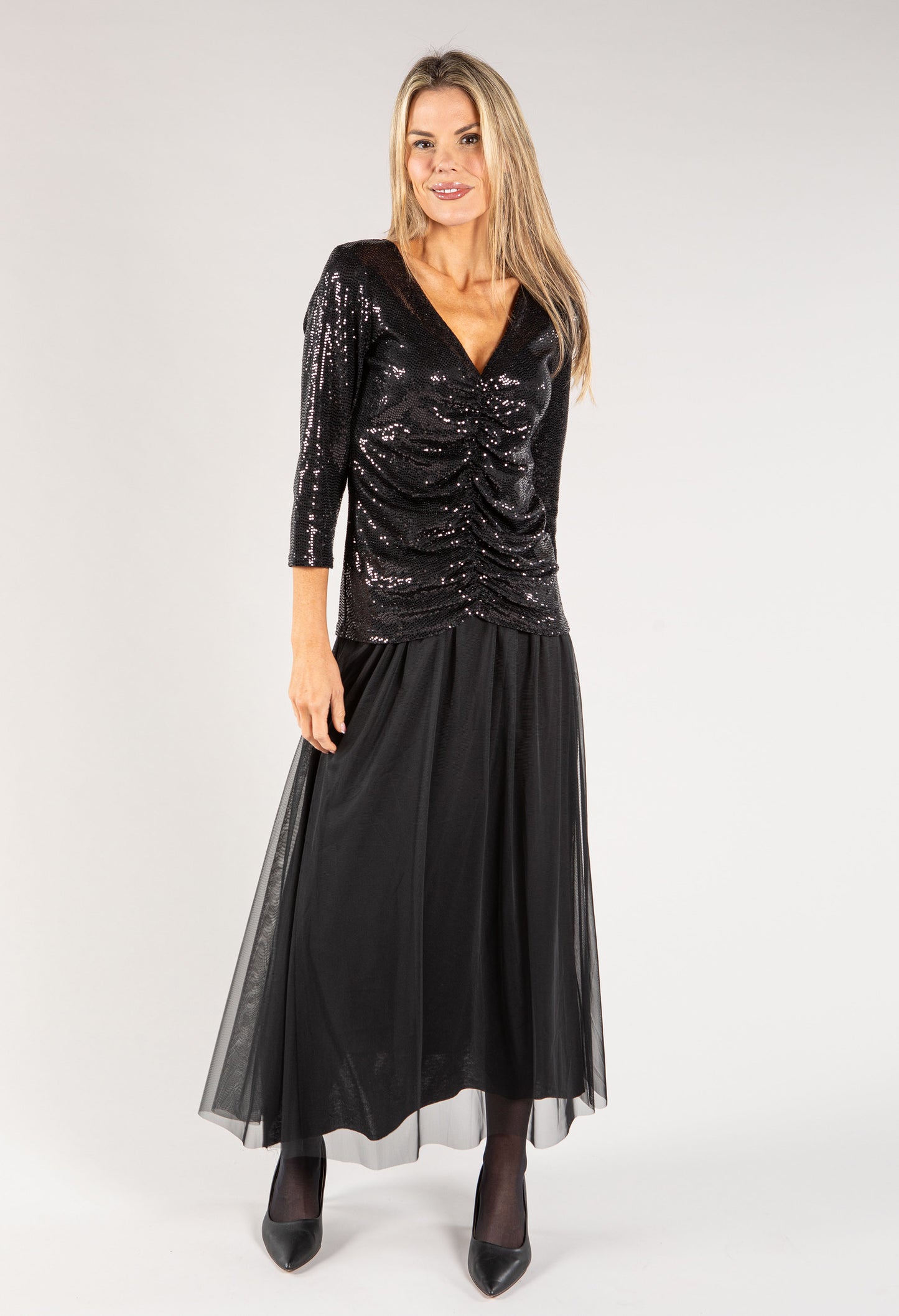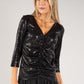 Tiana B Sequin Ruched V-Neck Top