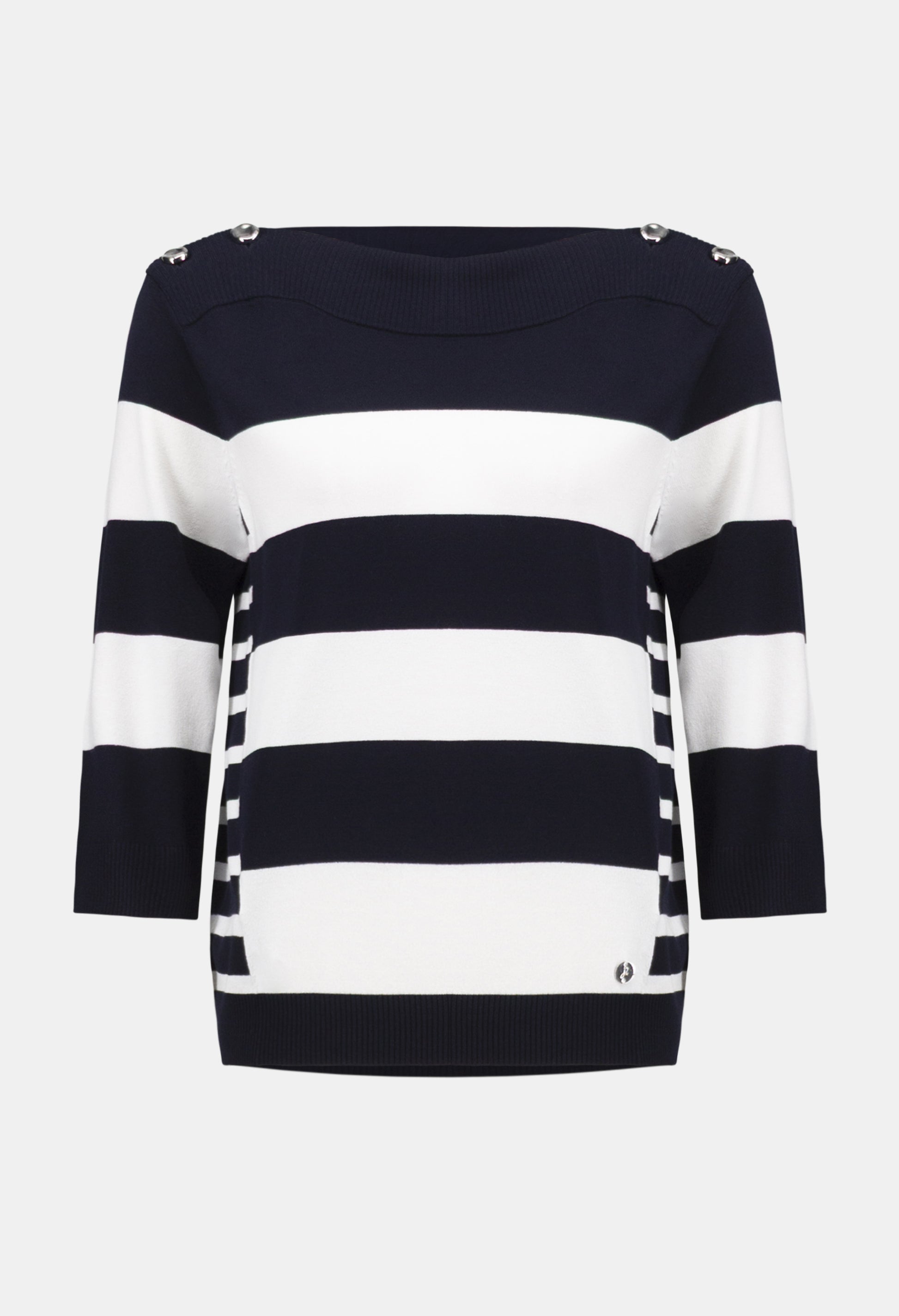 Experience ultimate comfort and effortless style with the Joseph Ribkoff pullover. Featuring a boat neck and hip-length design, this versatile piece is perfect for both casual and office settings. The regular fit and straight 3/4 sleeves offer a flattering silhouette, while the chic stripe pattern adds a touch of sophistication. Ideal for any occasion, this pullover combines functionality with fashion seamlessly.