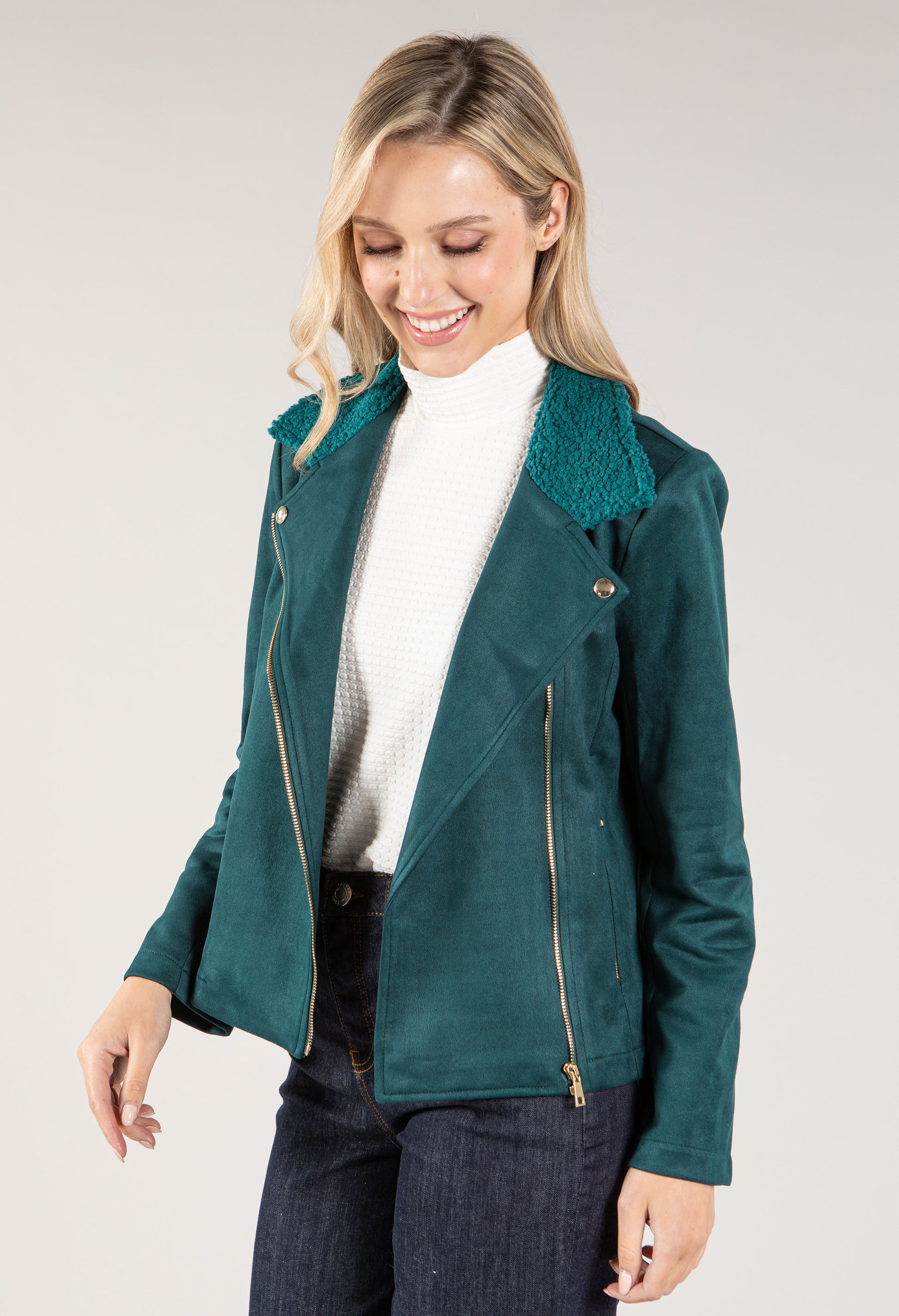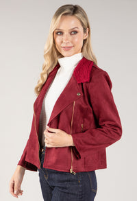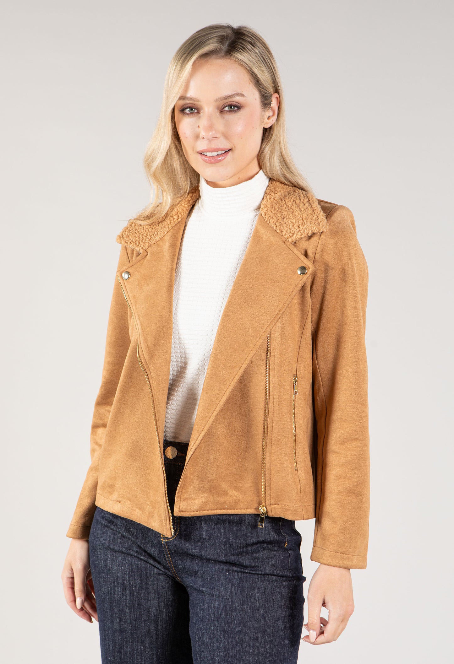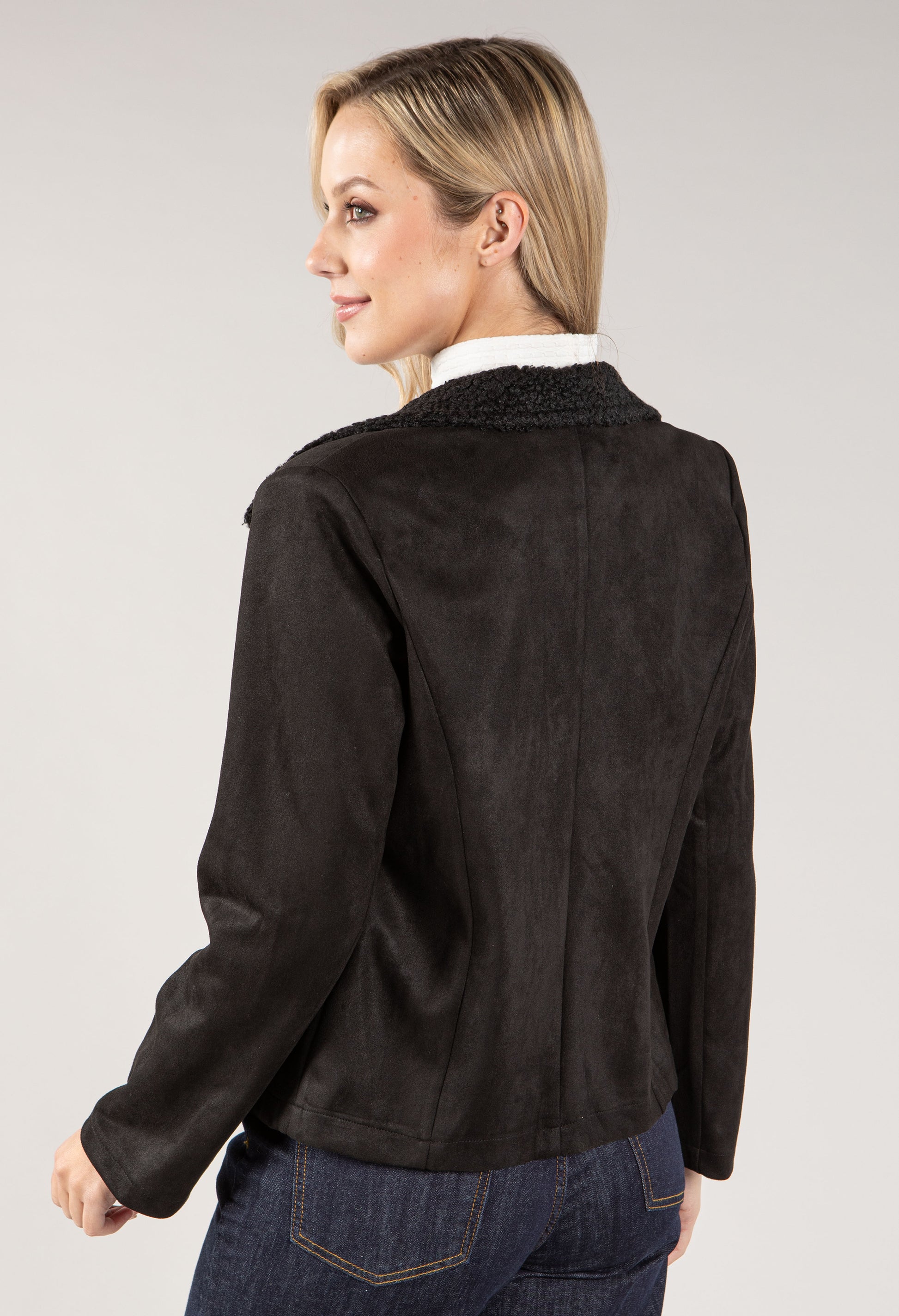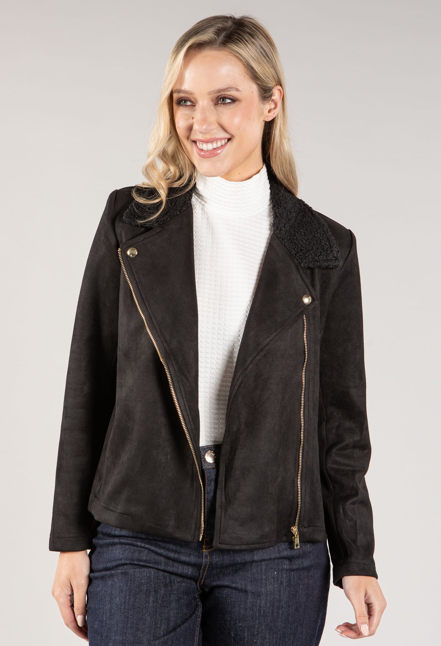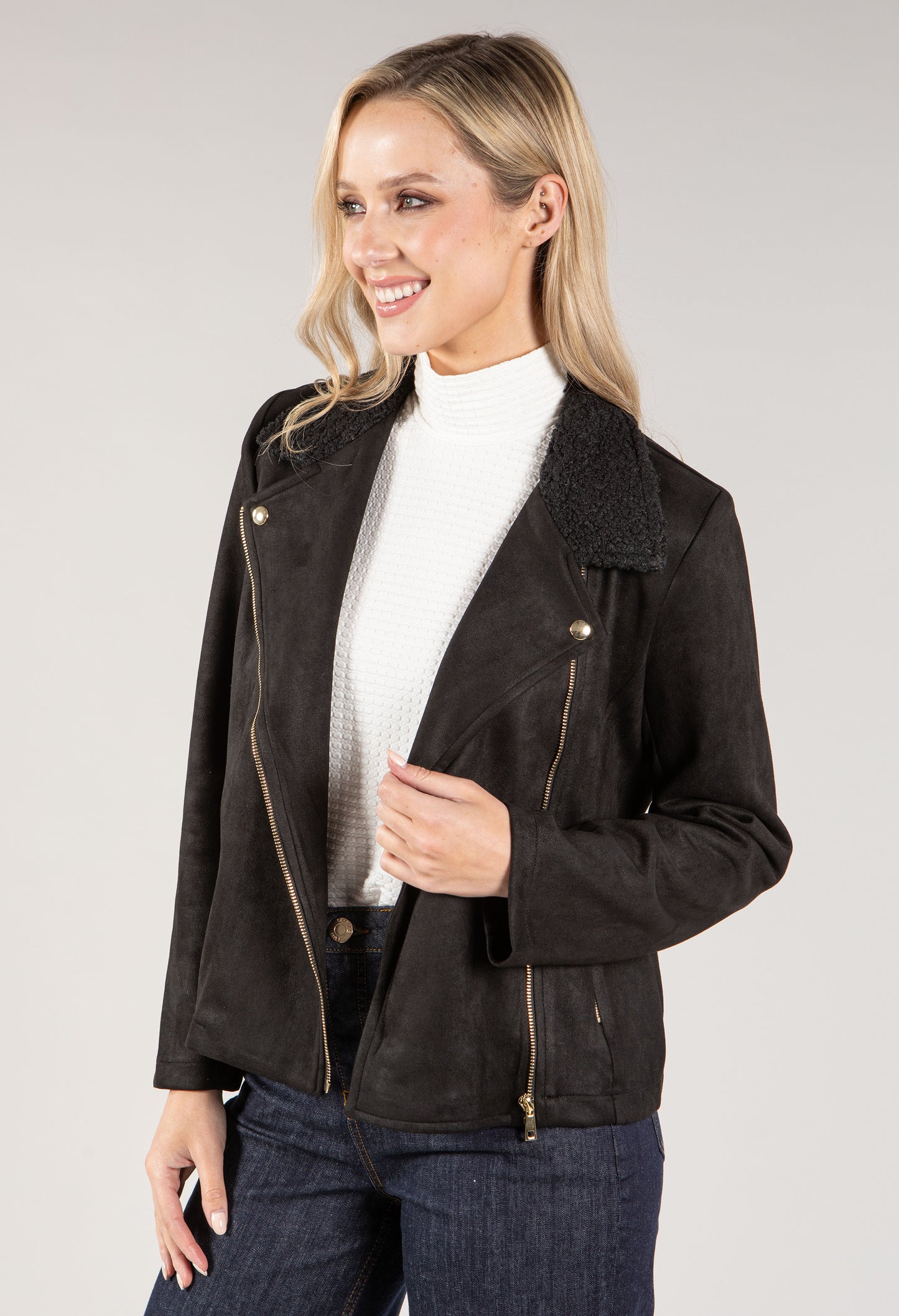 Sophie B Suedette Sherpa Collar Biker Jacket