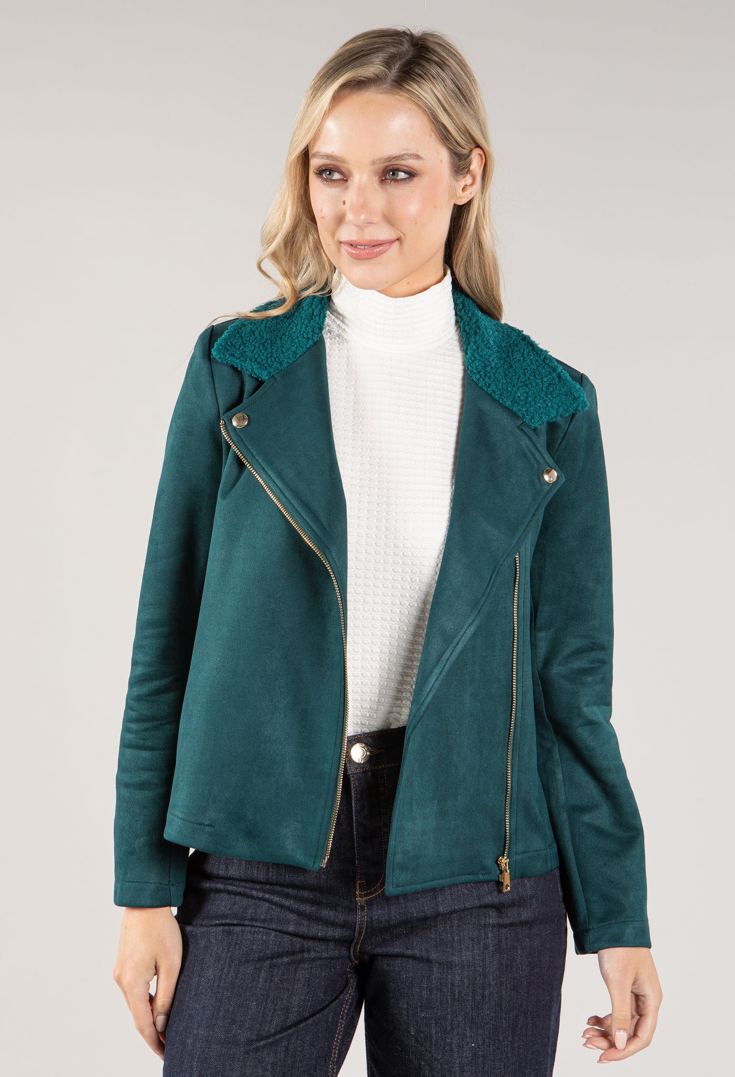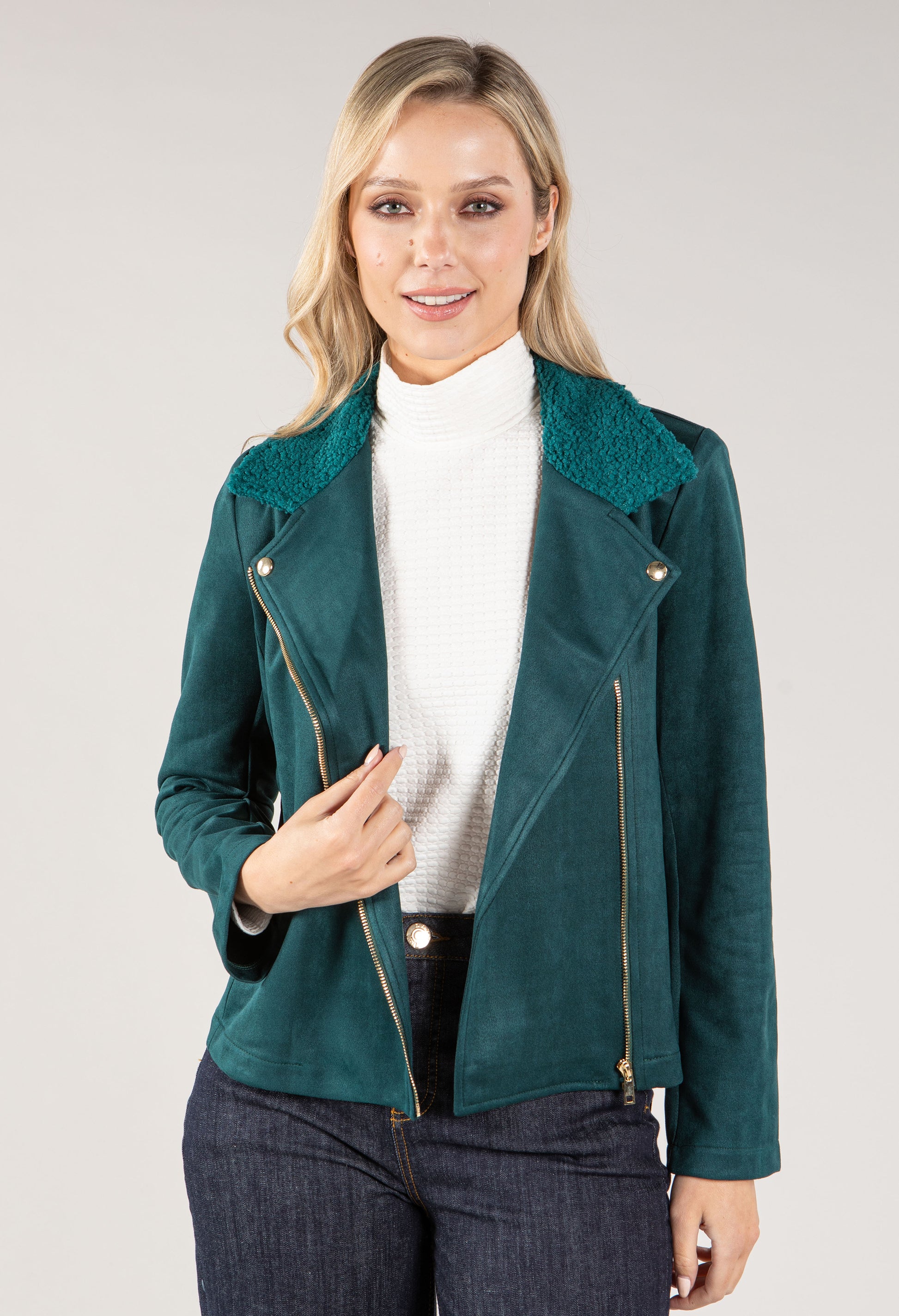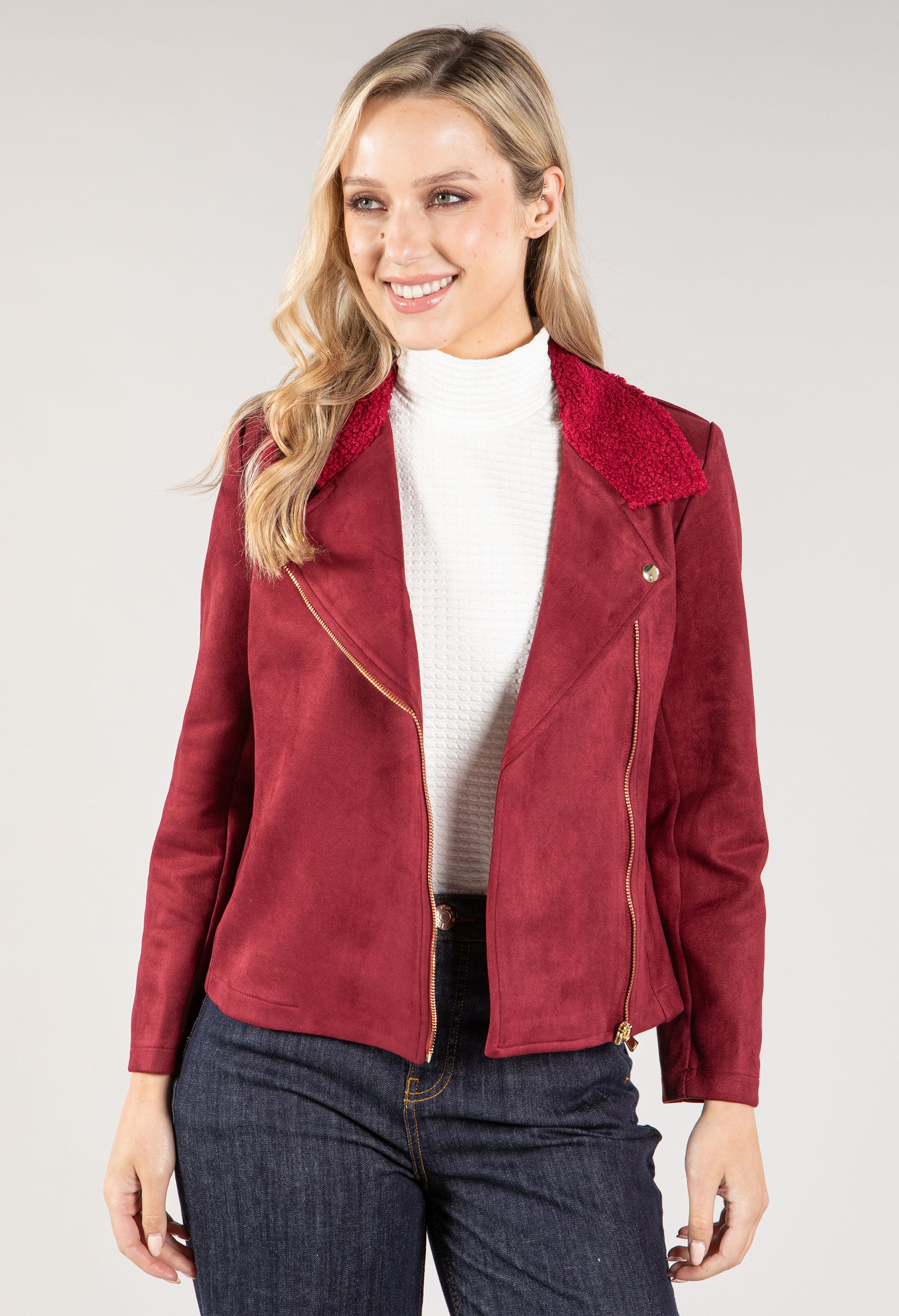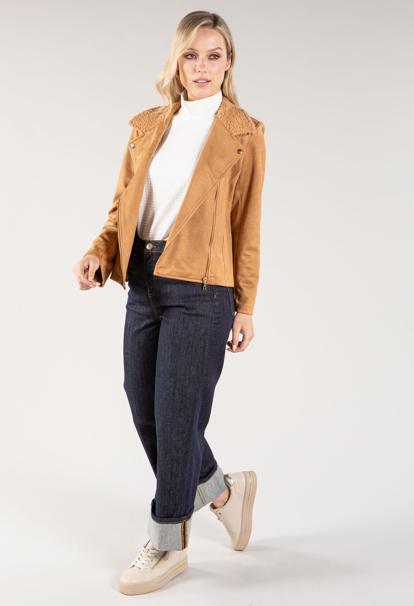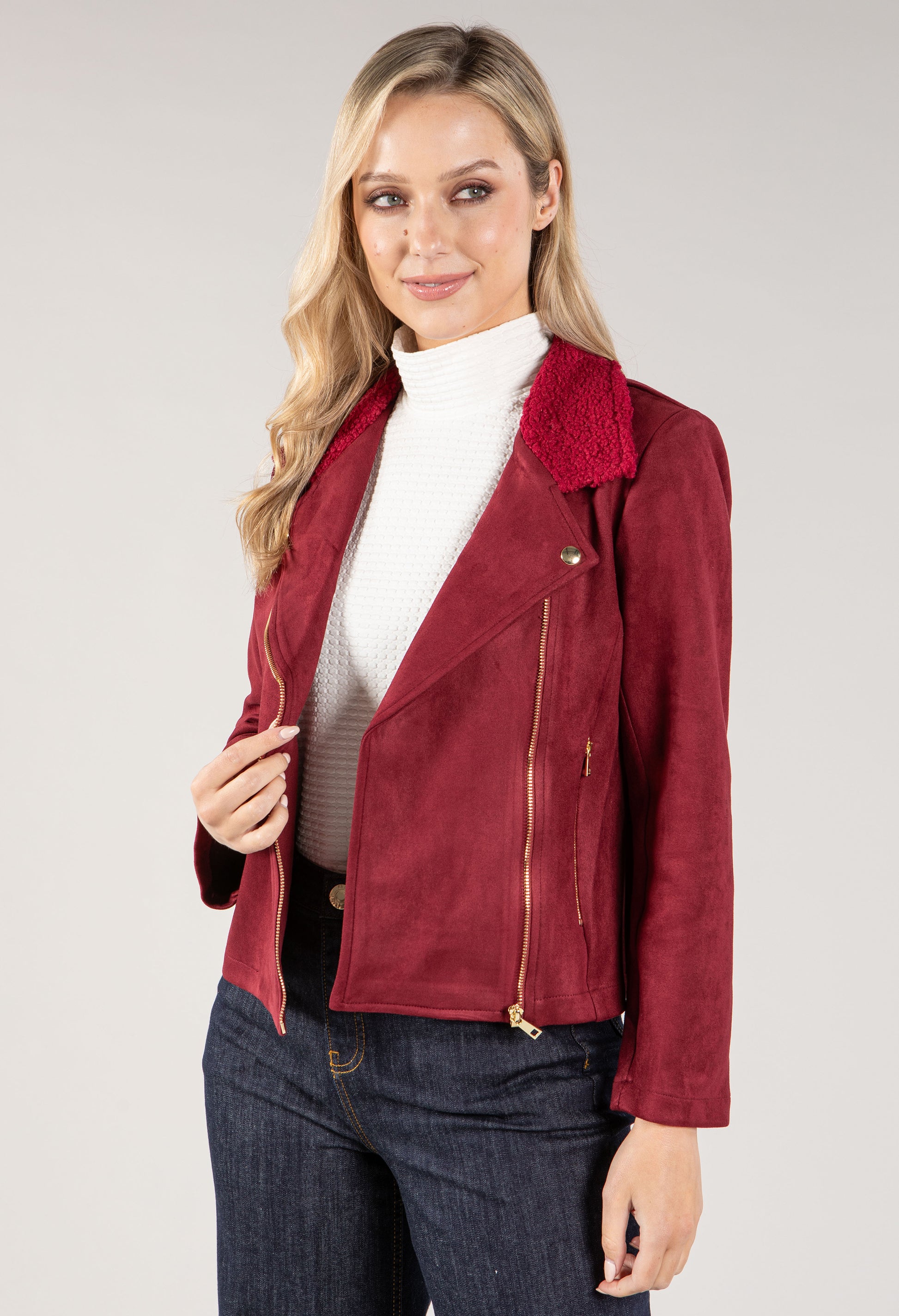 Sophie B Suedette Sherpa Collar Biker Jacket