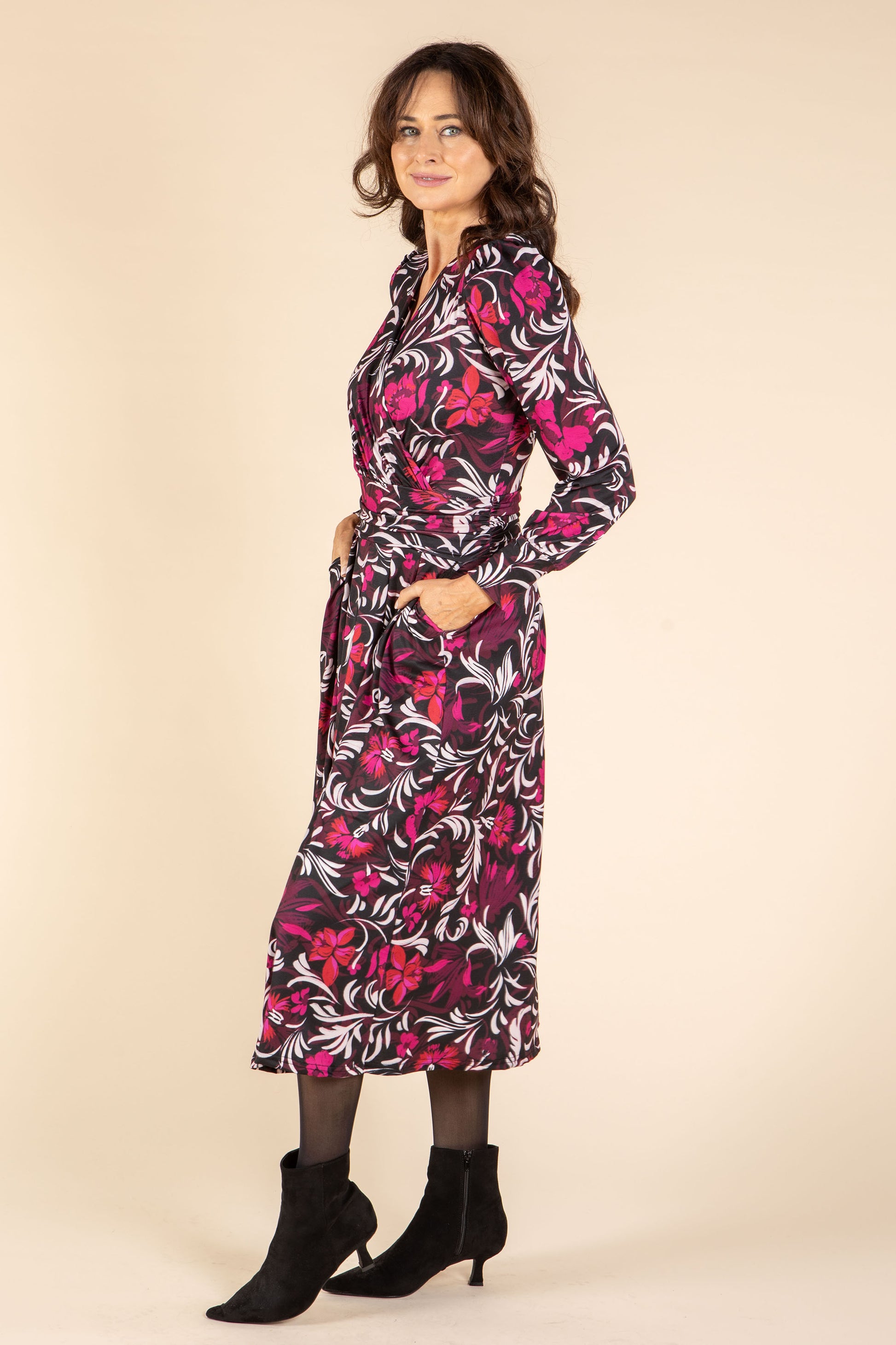 Feminine and flattering, this Midi Dress features a beautiful floral design and elegant faux-wrap silhouette. Fully lined with handy side pockets, it’s perfect for effortless everyday style or special occasions.