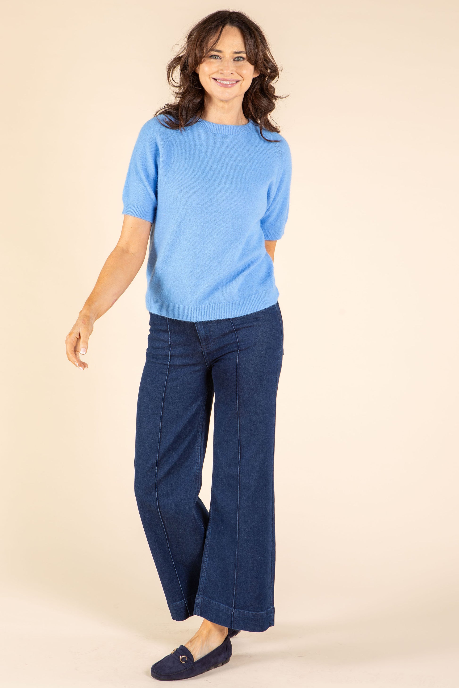 Featuring a round neckline and short sleeves, this sweater is designed with ribbed cuffs and hem for a refined finish. Crafted for a soft touch, it offers both comfort and style.