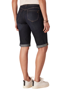 The perfect length, shorts. These Bermudas are perfectly polished in a dark blue indigo wash and are designed to mold, hold, and lift in all the right places for an exceptional fit that's always comfortable. Customize your fit with the option of wearing these shorts cuffed or uncuffed.