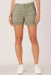 Longer days call for shorter hemlines! Whether you’re in a warm climate or simply letting your legs out of their cage, these “Ab”solution® high rise shorts are a fashionable way to kick off the season. They’re designed with large angled front pockets, a fixed 4.5” inseam hem, and slimming power mesh panels for tummy control, all in chic earthy tones.