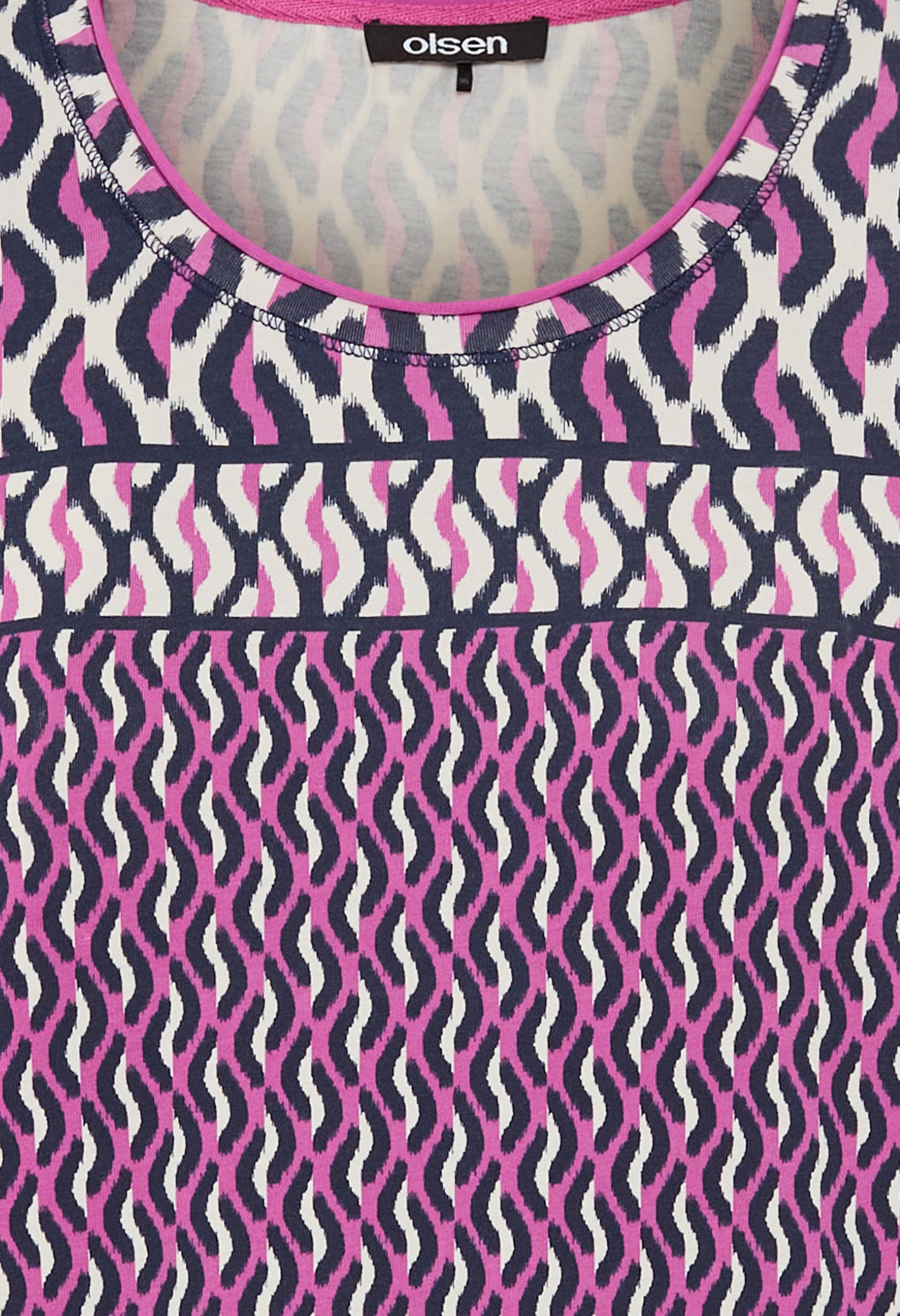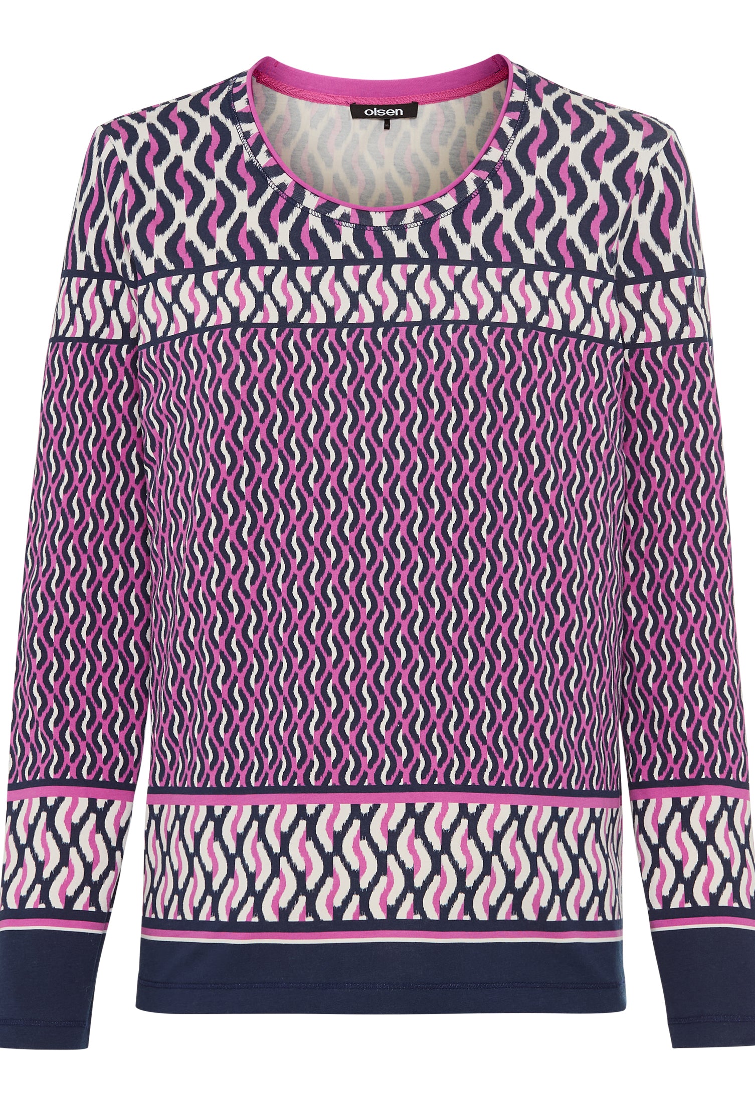 This long sleeve top features a round neckline and is crafted from stretch material for a comfortable fit. Its striking abstract print adds a modern and artistic touch to your wardrobe.