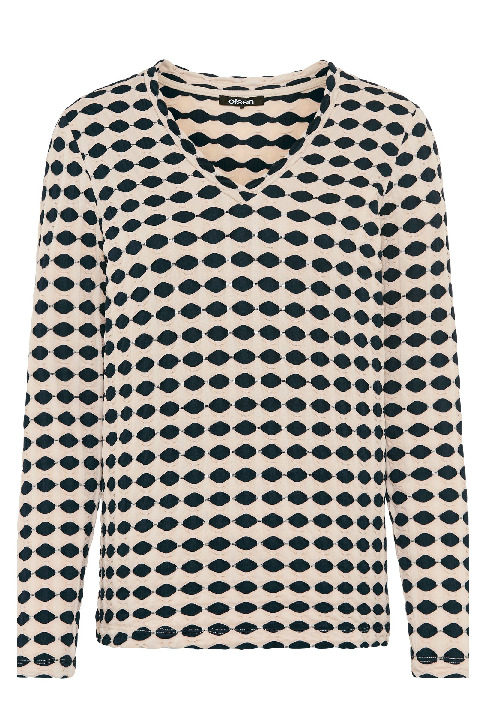 This slim-fit top features a V-neckline and long sleeves for a sleek silhouette. Made from stretch material, it showcases a bold abstract print that adds a contemporary edge to your look.