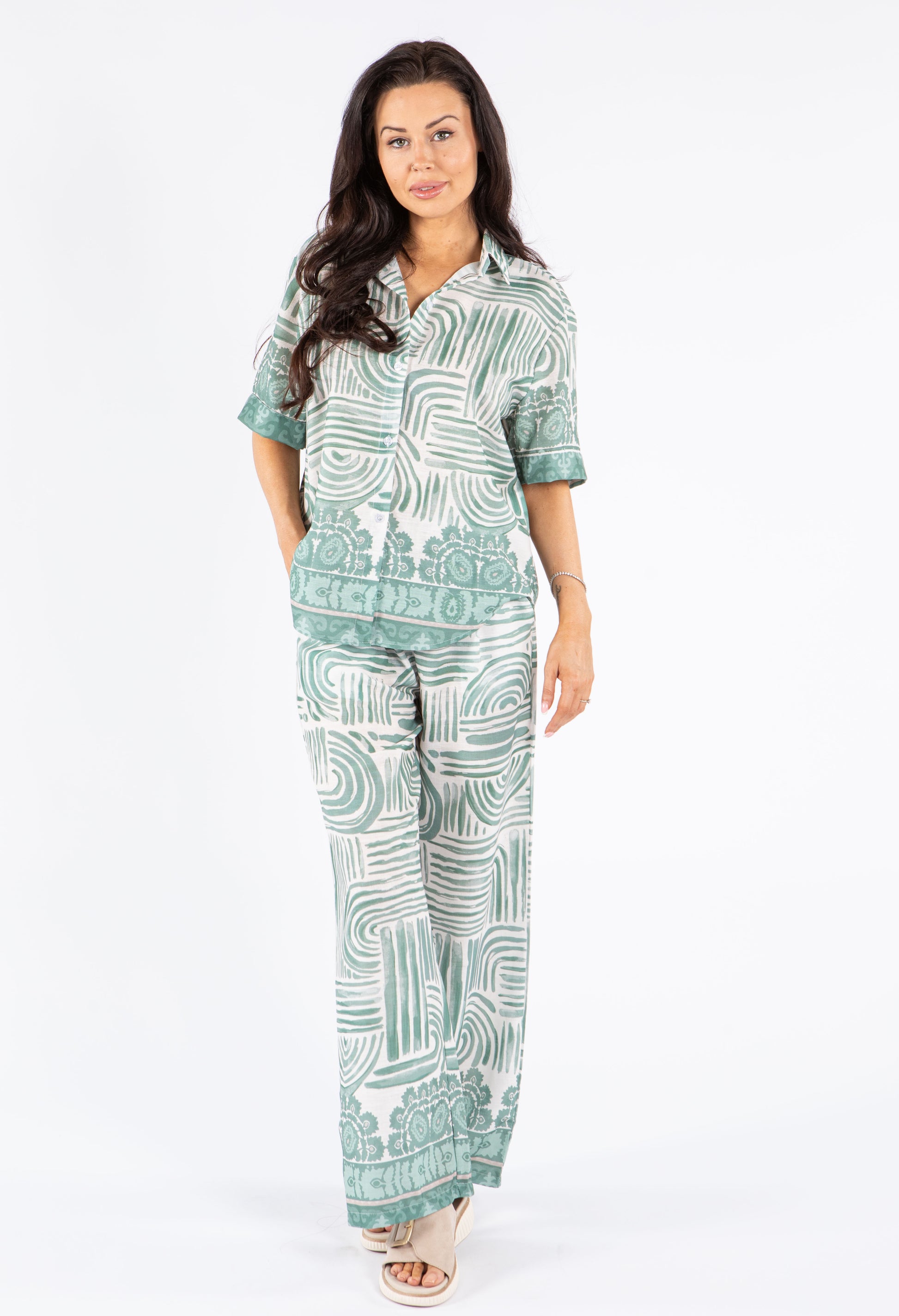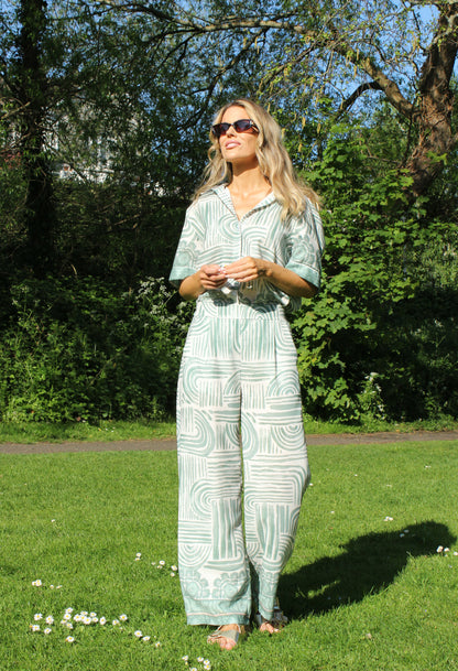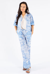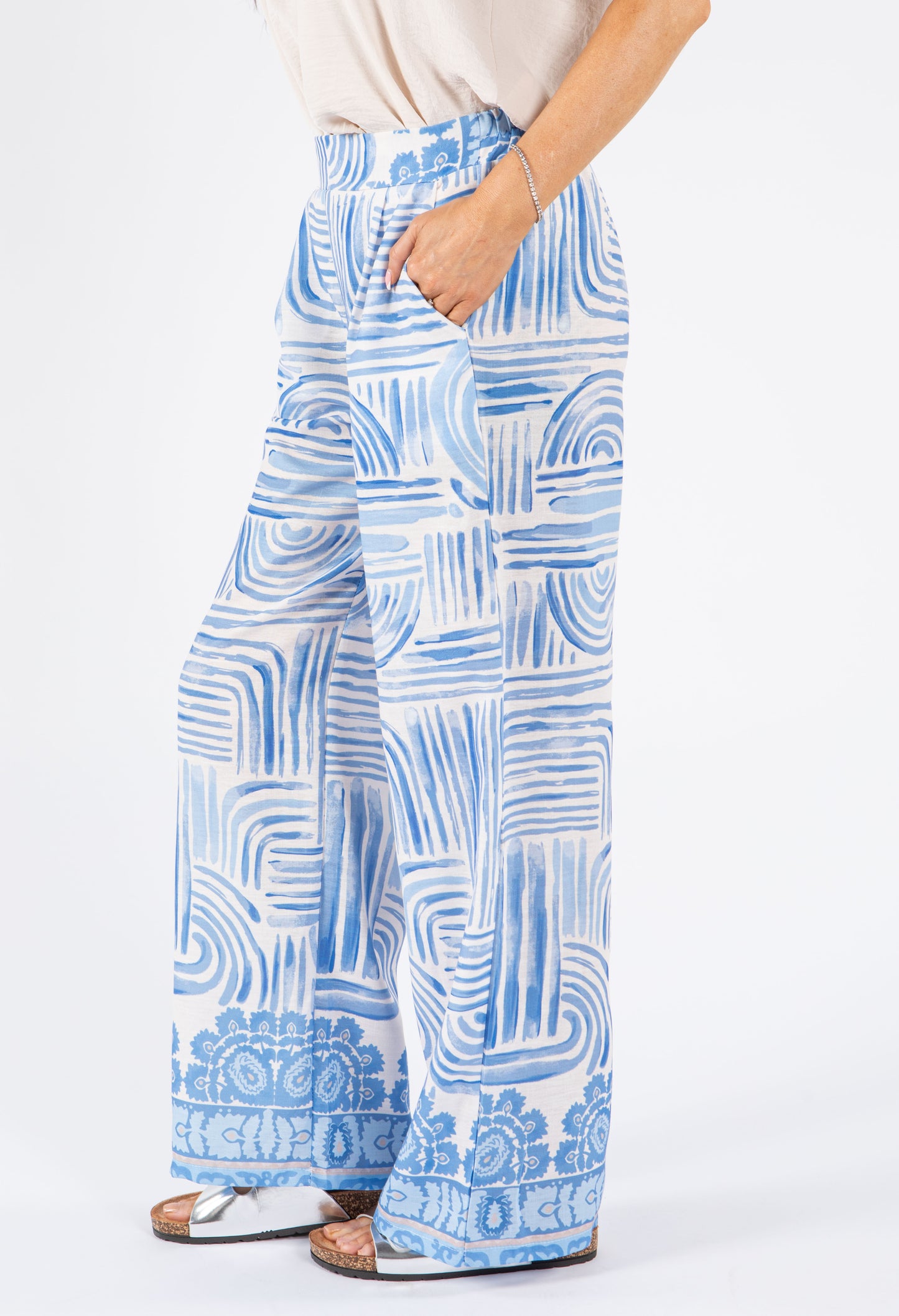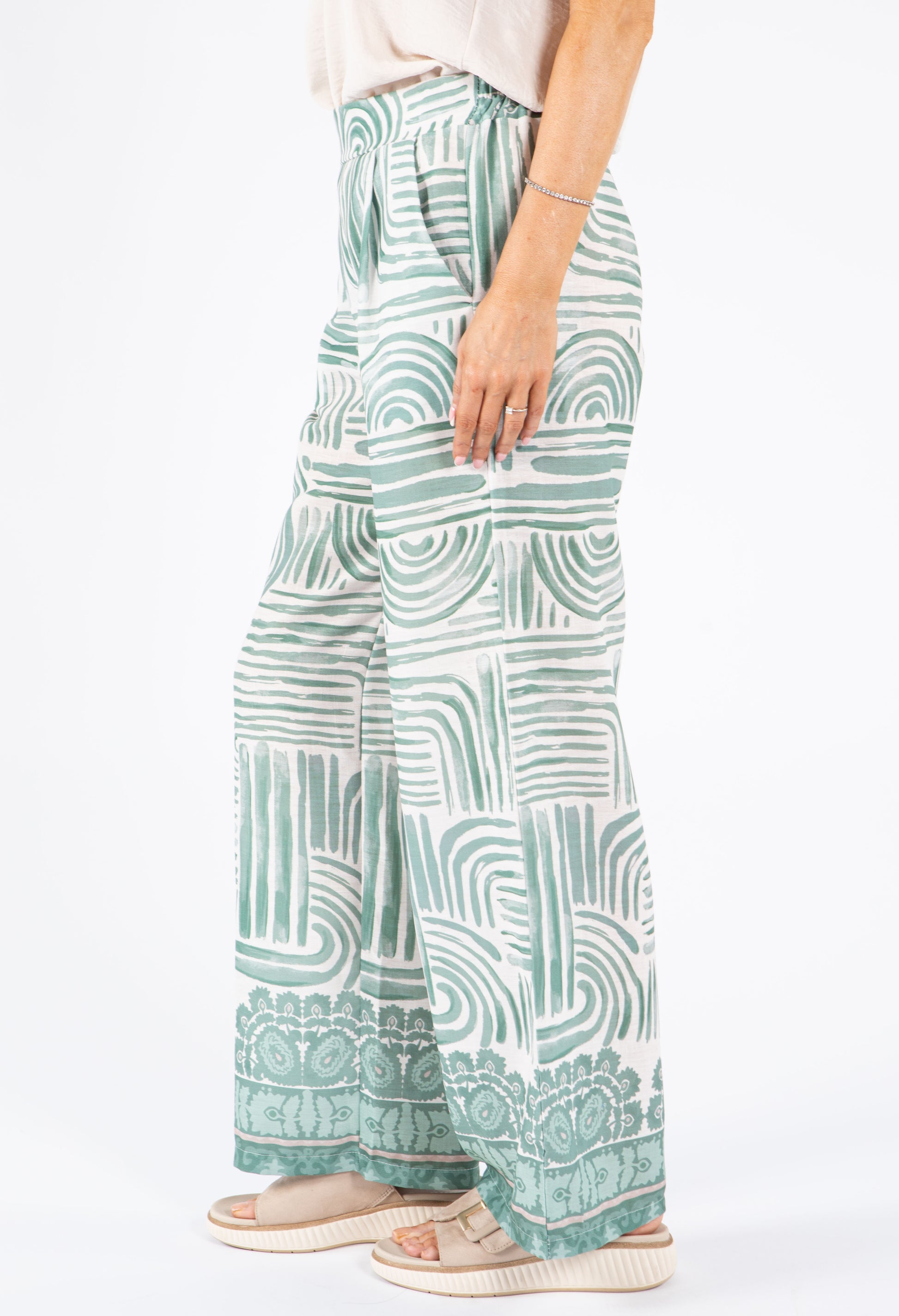 Effortlessly stylish, these wide leg trousers are made from a breathable linen-like material and feature an elasticated waistband, convenient side pockets, and a flattering cropped length.