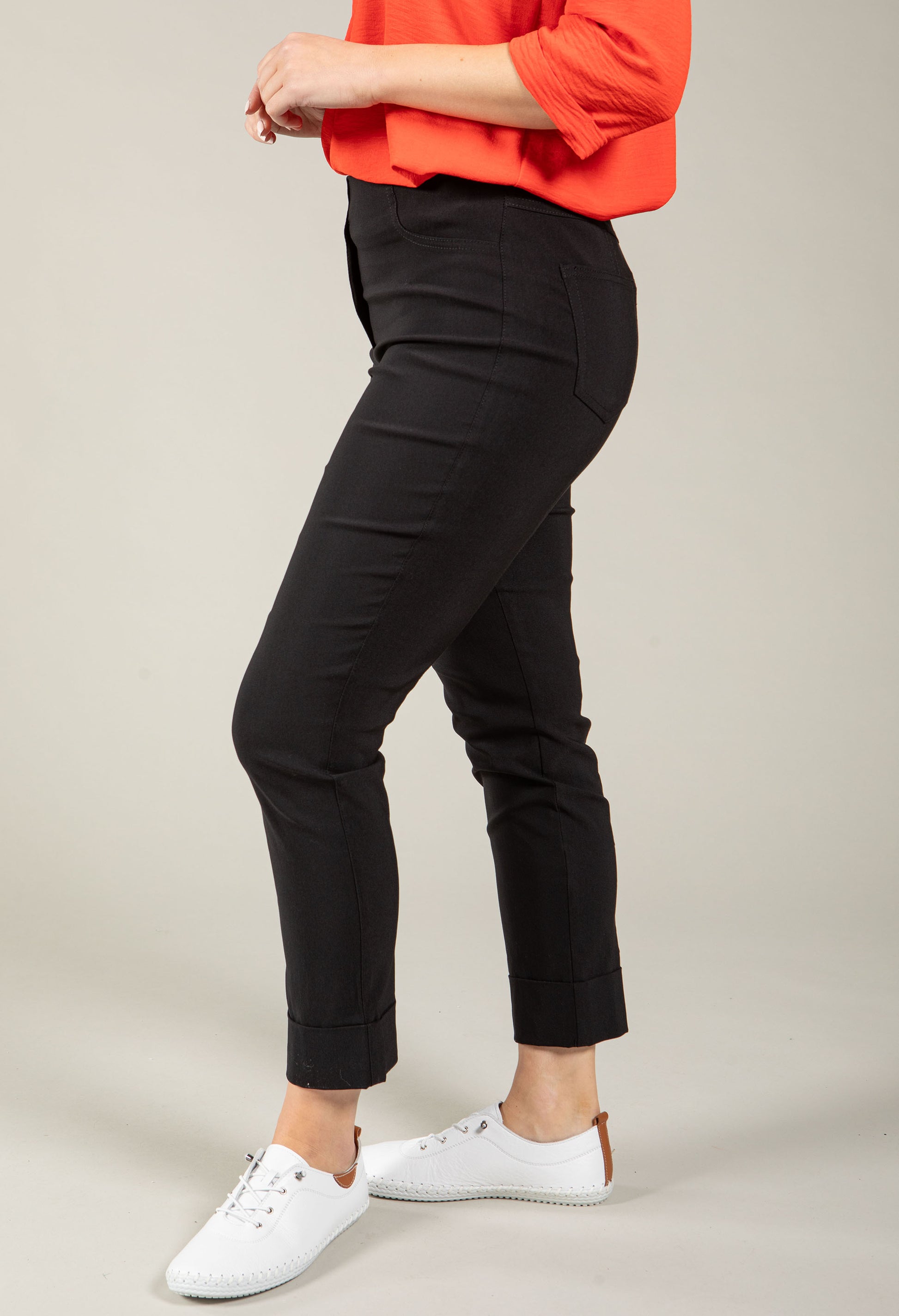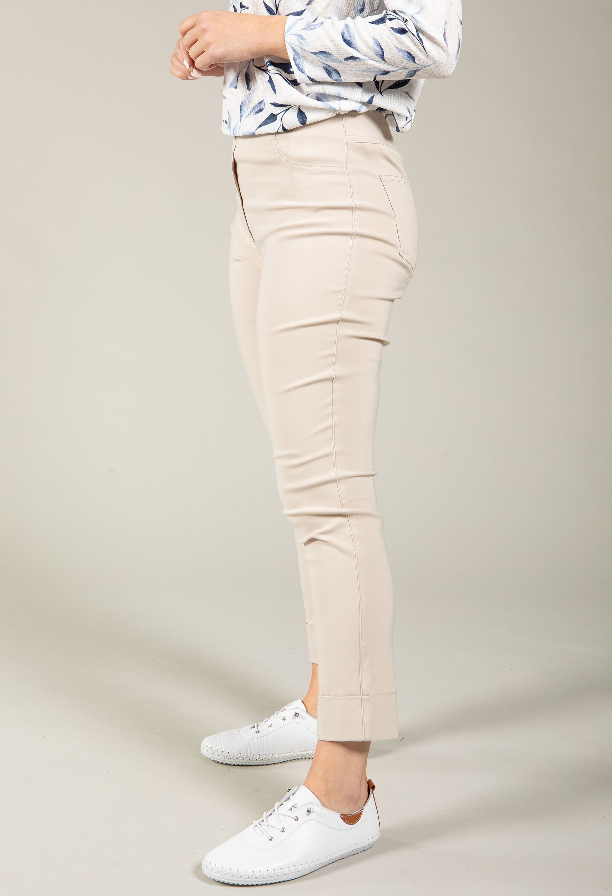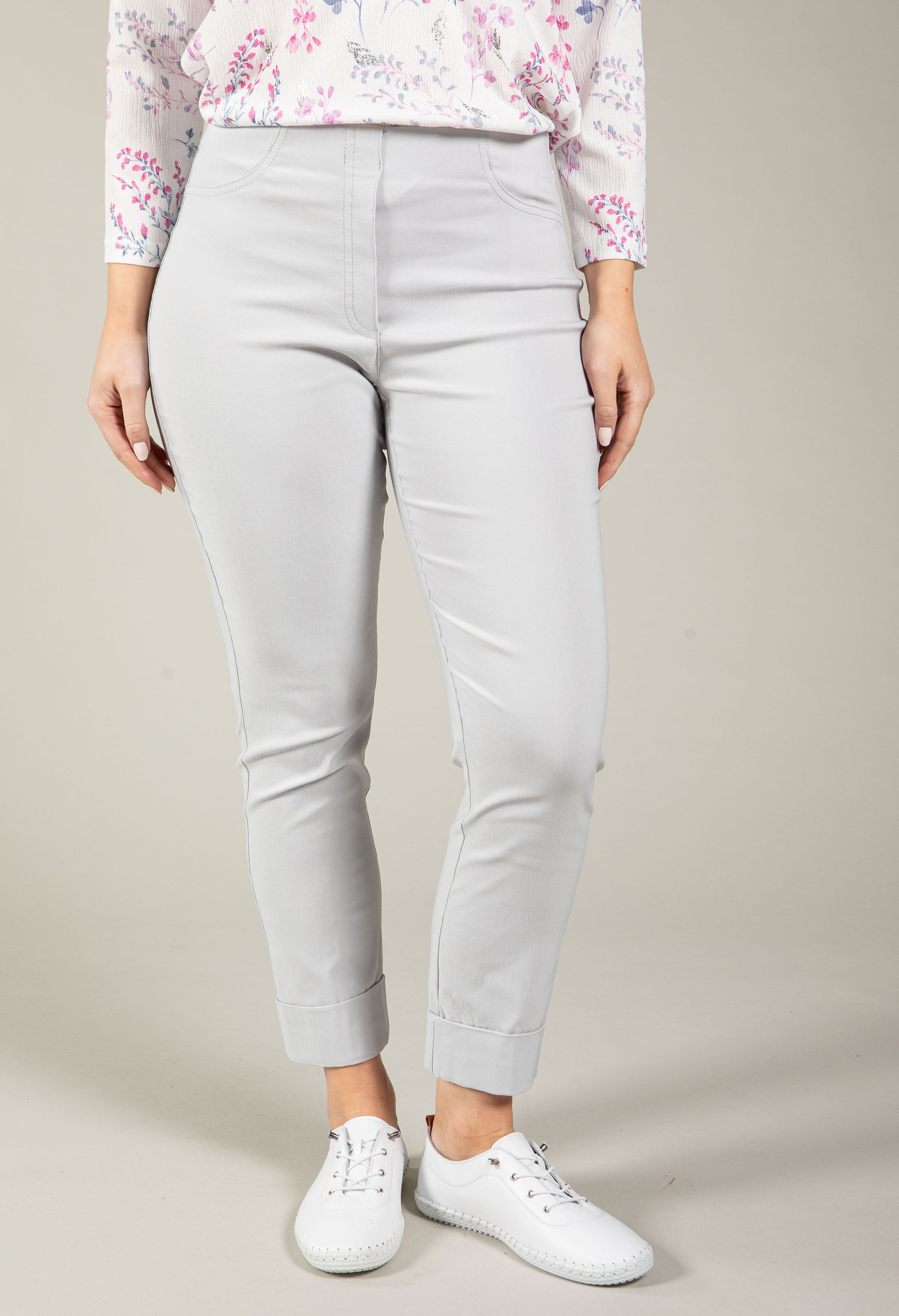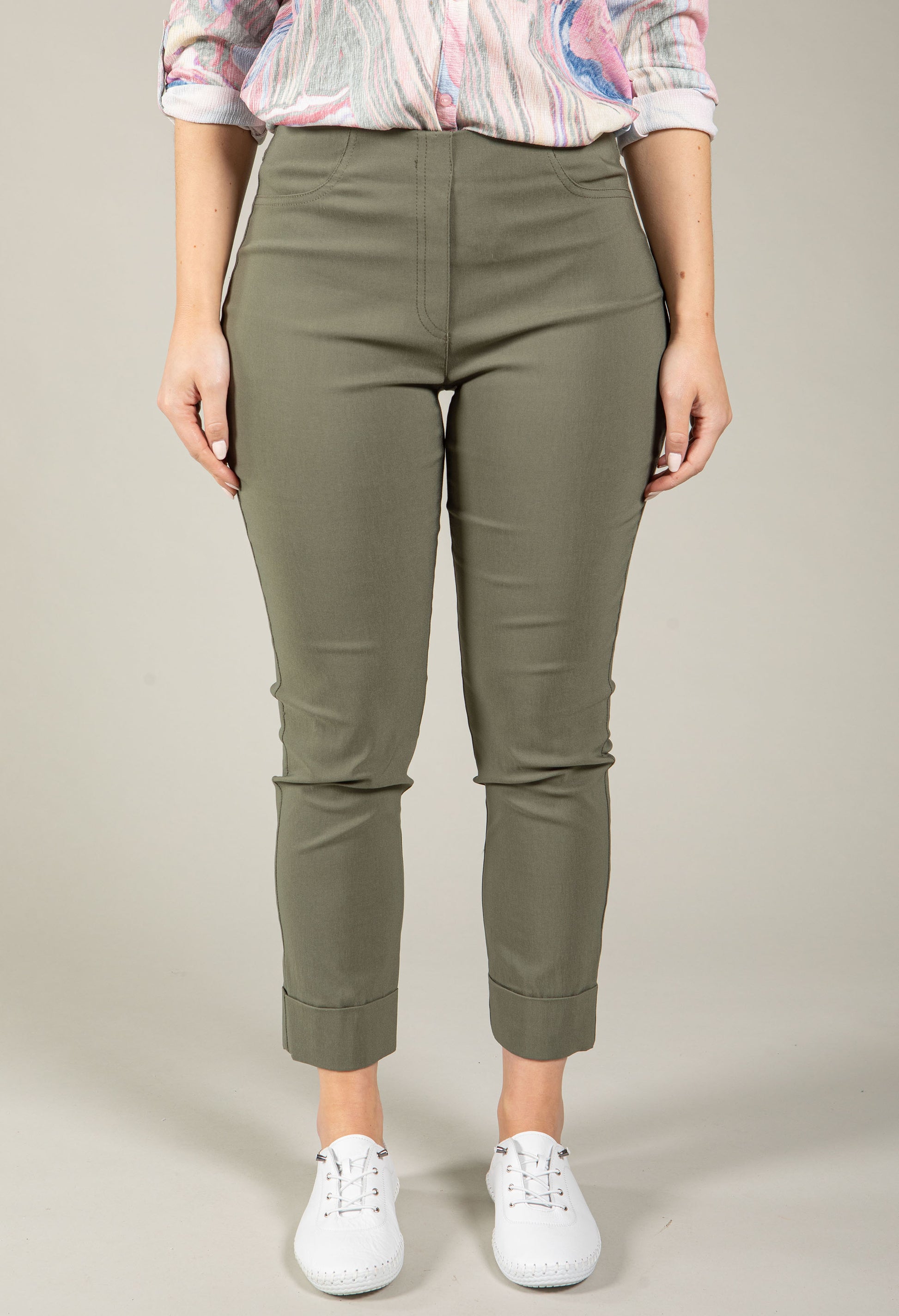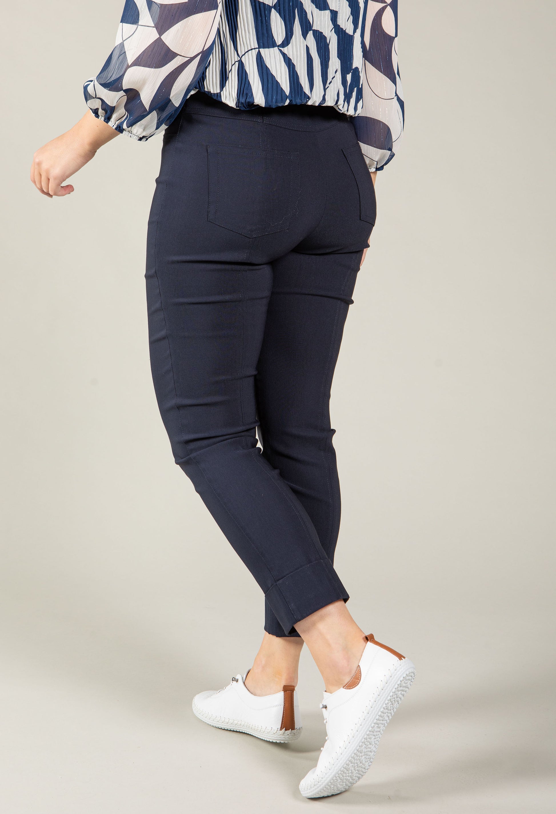 Slip into comfort with these high-rise 7/8 trousers featuring a convenient pull-on style and slim fit cut. The stretch fabric adapts to your body while the "Magic Shape" technology creates a flattering silhouette. Practical back pockets and sleek faux front pockets complete the look—perfect for everyday wear.