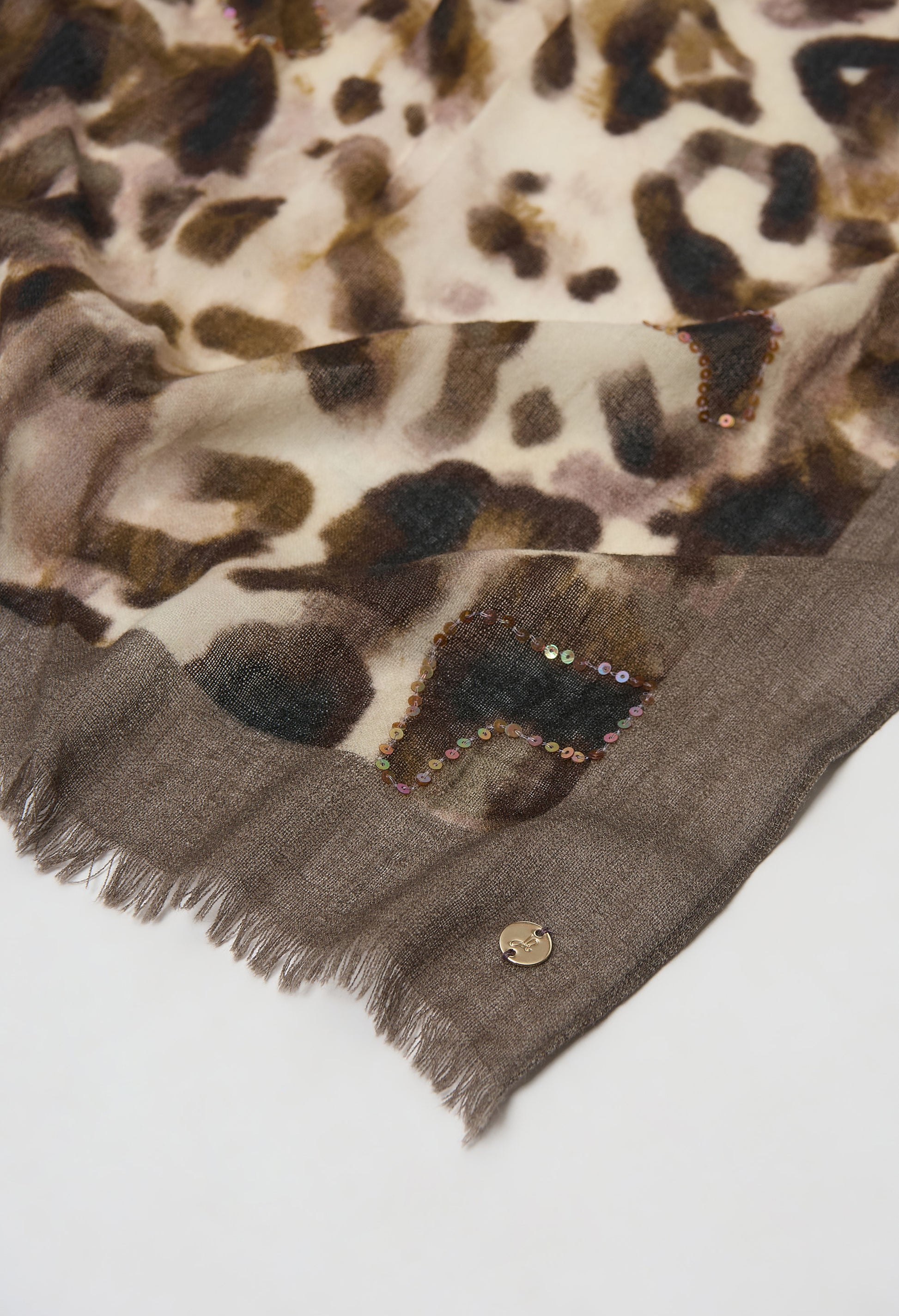 Introducing the Joseph Ribkoff scarf, a stunning accessory designed to add a touch of sophistication to any outfit. Featuring a captivating animal-print pattern and exquisite jewel embellishments, this scarf seamlessly combines elegance and style. Perfect for any occasion, it effortlessly enhances your look, making it a must-have addition to your wardrobe.