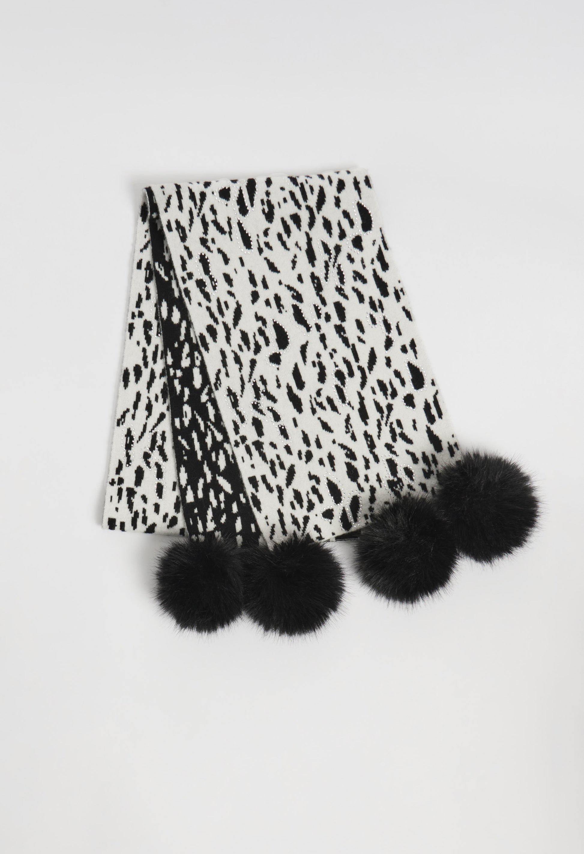Wrap yourself in luxury with the Joseph Ribkoff scarf, featuring a chic animal-print pattern. This stylish neckwear is adorned with faux-fur pom-poms and jewel embellishments, adding a touch of glamour to any outfit. Experience the perfect blend of elegance and comfort with this standout accessory that effortlessly enhances your wardrobe.