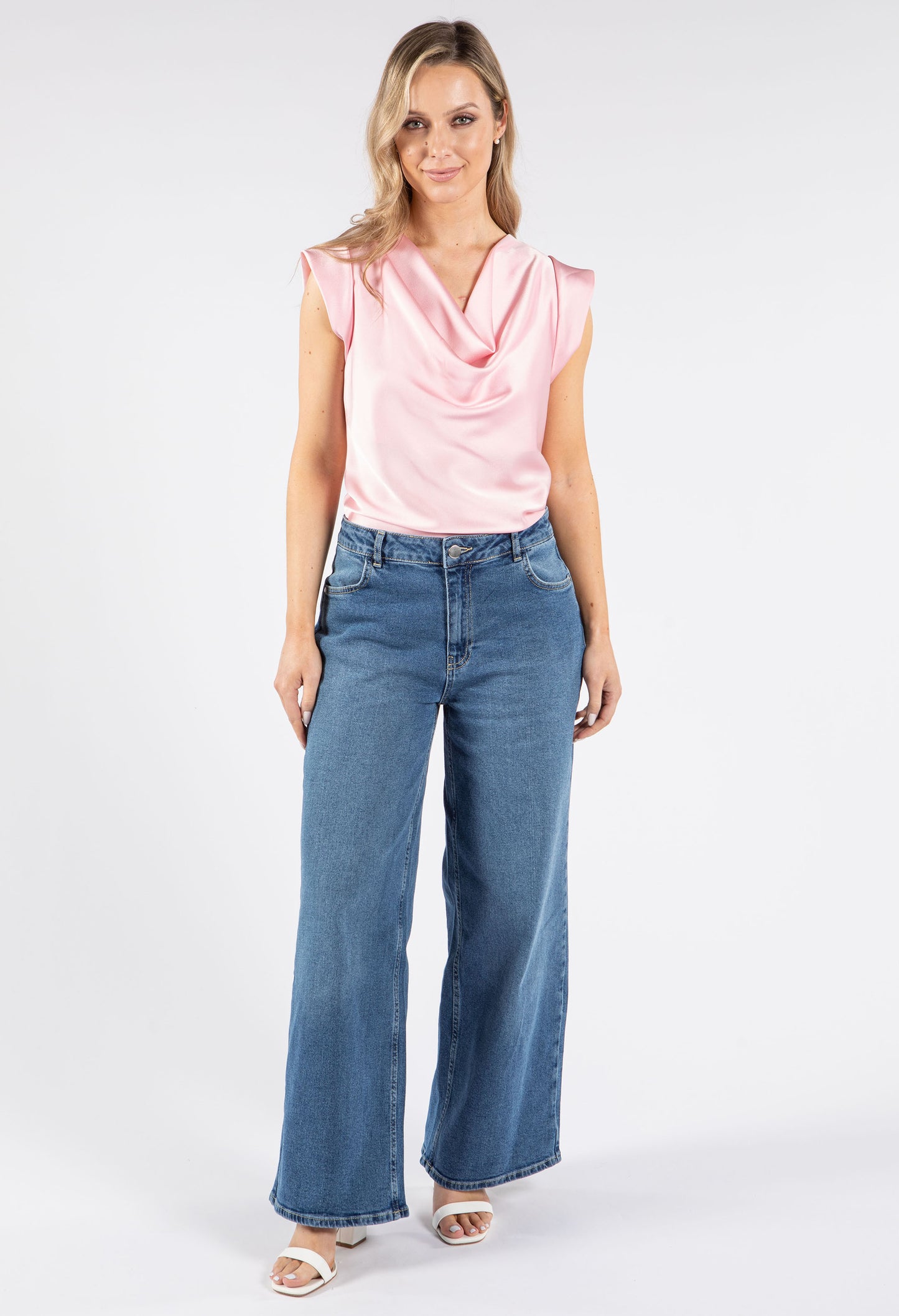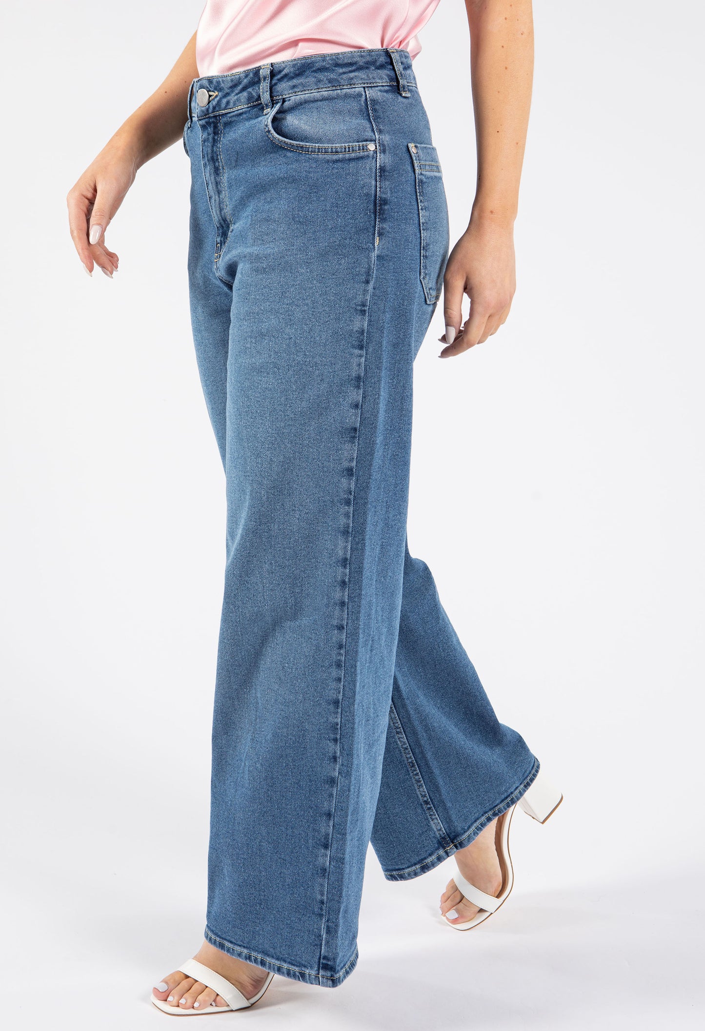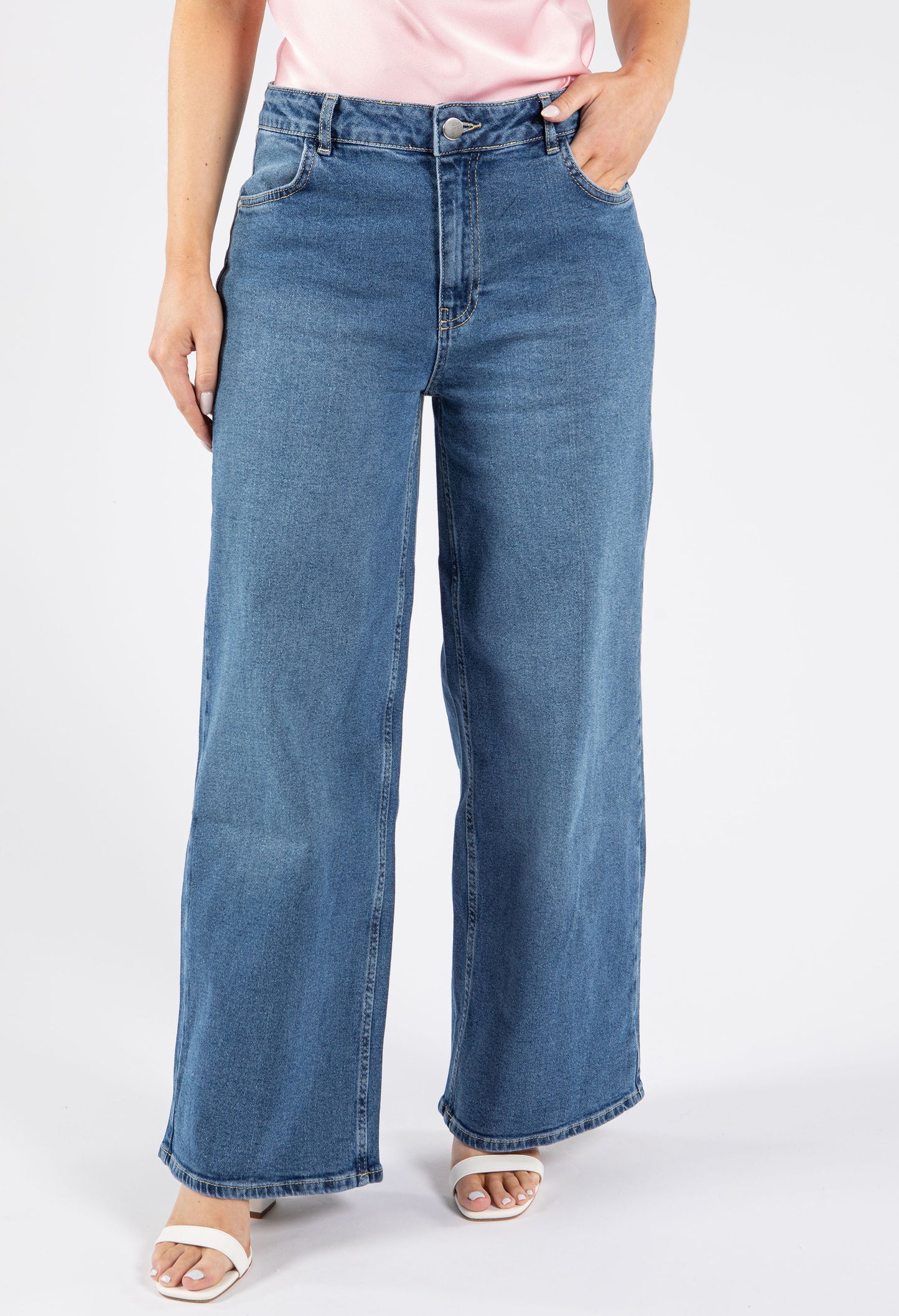 Relaxed fit, high-waist, light-wash denim with a soft straight leg—offering that true denim feel with all-day comfort.