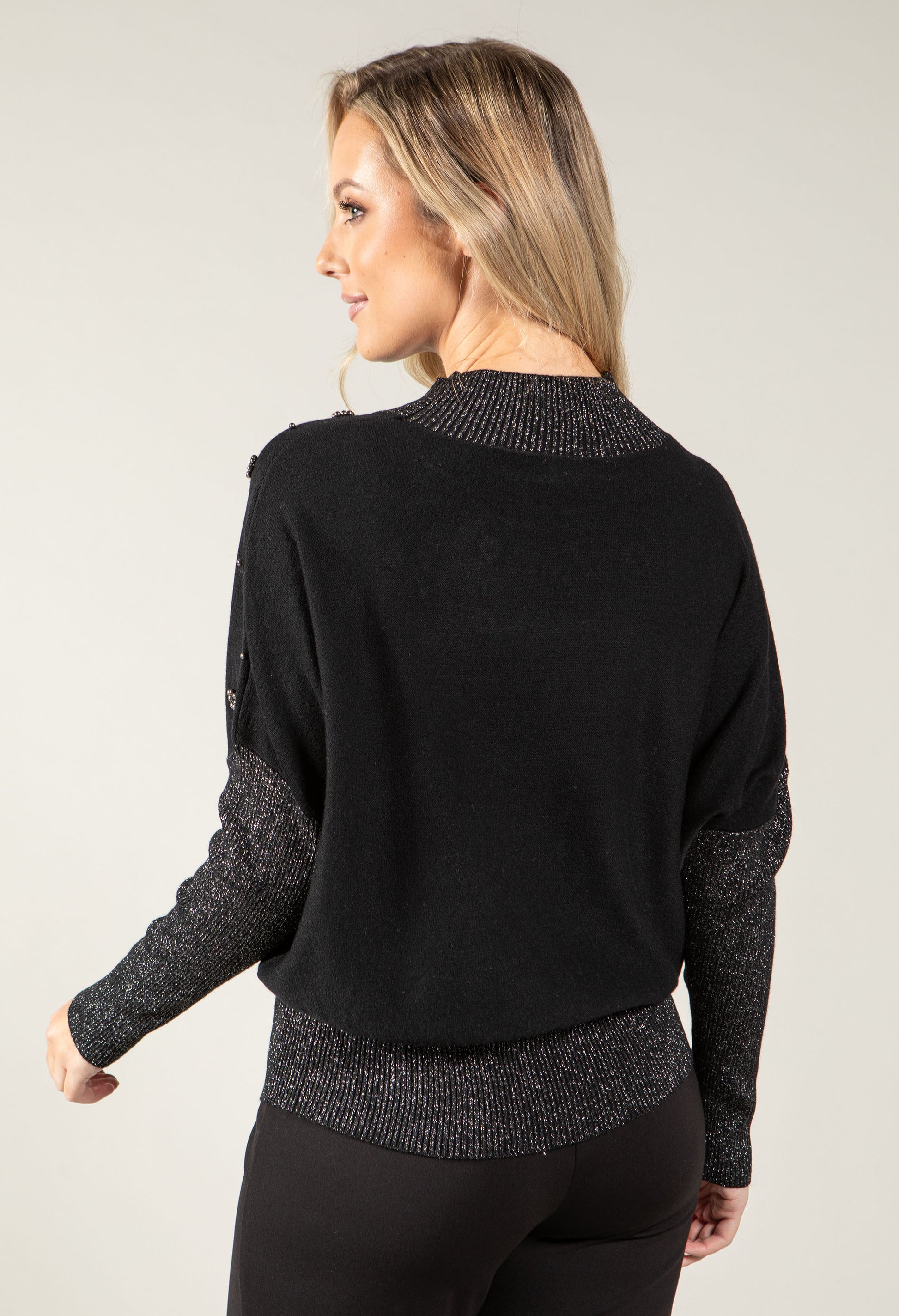 The Beaded High Neck Knit Jumper brings understated glamour with intricate beaded details and shimmering lurex stitching on soft-touch fabric. The high neckline and long sleeves feature ribbed finishes for a polished, structured look that's effortlessly chic.