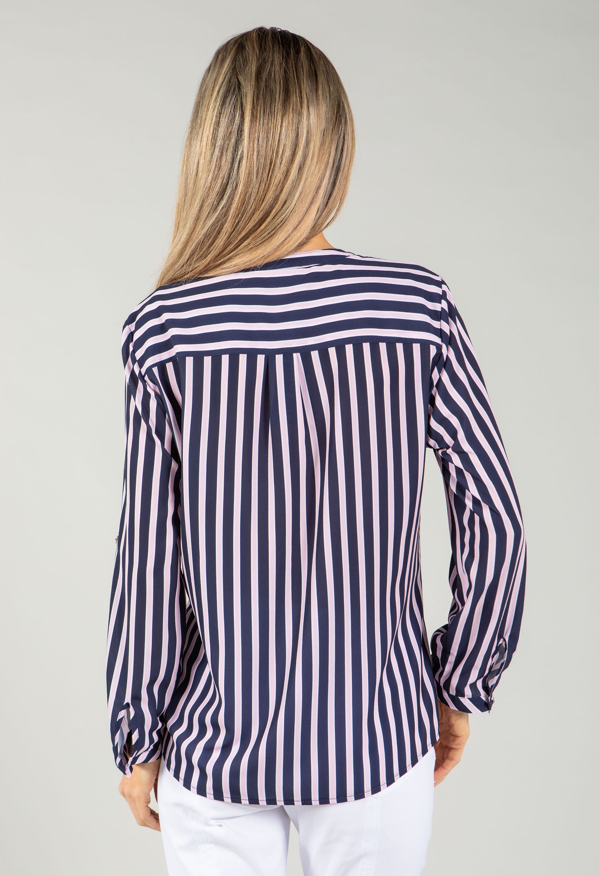 The Boni Striped Blouse is a go-to piece for effortless style. With its relaxed fit, V-neckline, and classic striped print, it's comfortable and versatile. Roll-up sleeves with buttoned cuffs let you adjust your look, while front patch pockets add practical charm.