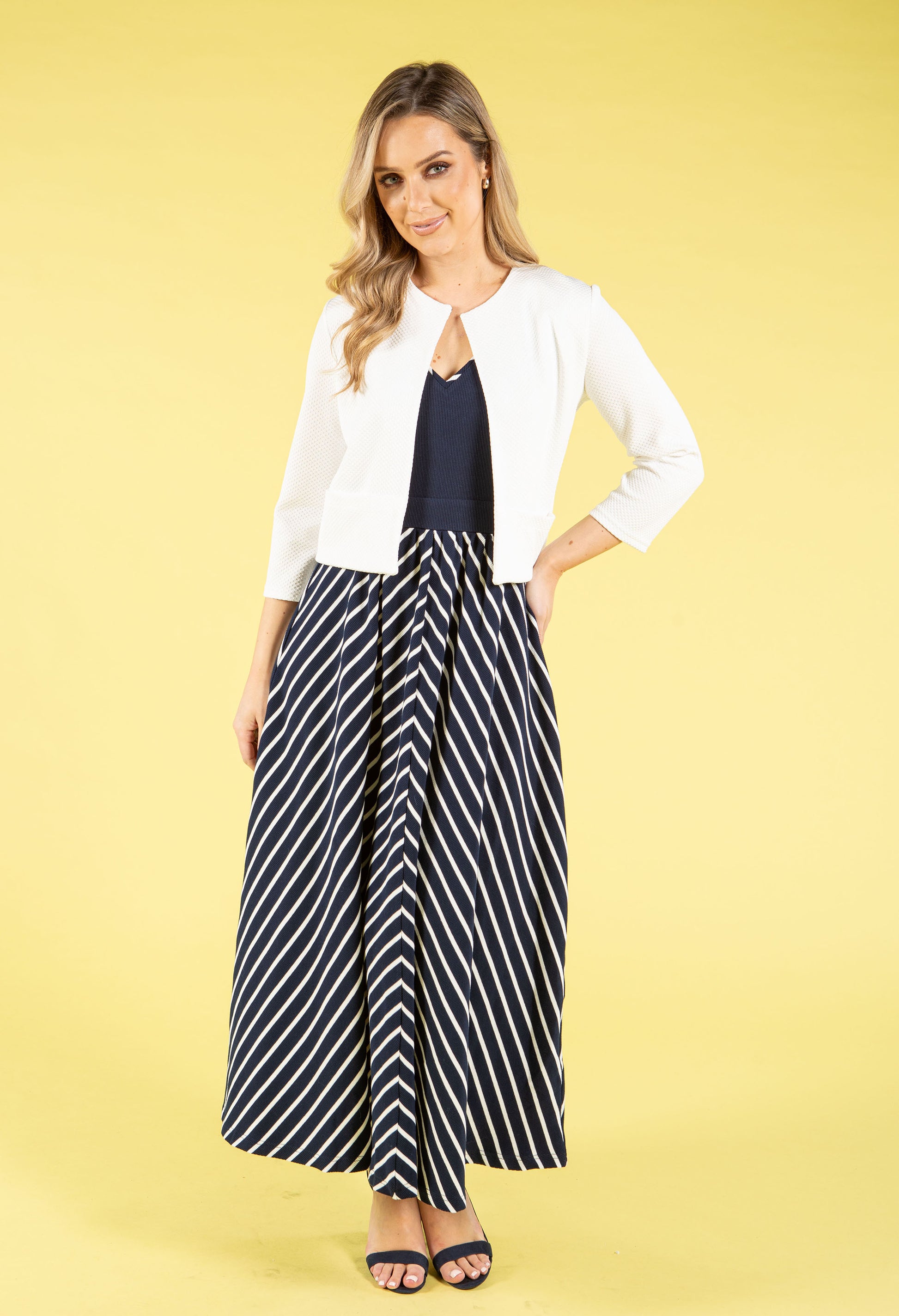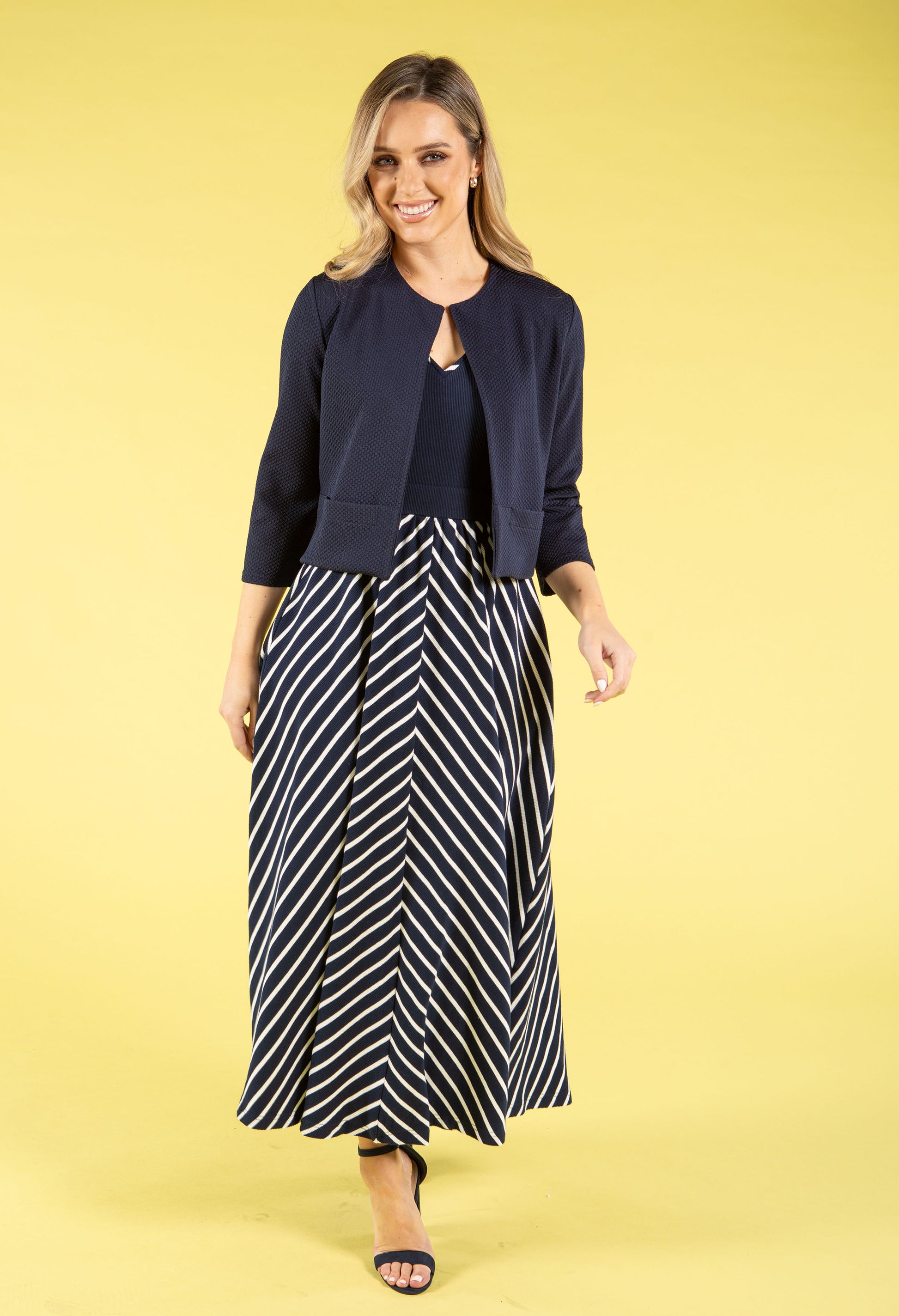 Discover effortless sophistication with this textured short jacket, designed to complement any outfit. Featuring a classic round neckline and three-quarter length sleeves, it's finished with a convenient clasp closure and functional front patch pockets. The stretch material ensures a comfortable fit that adapts to your movements, making it the perfect layer for work, weekend outings, or casual gatherings.