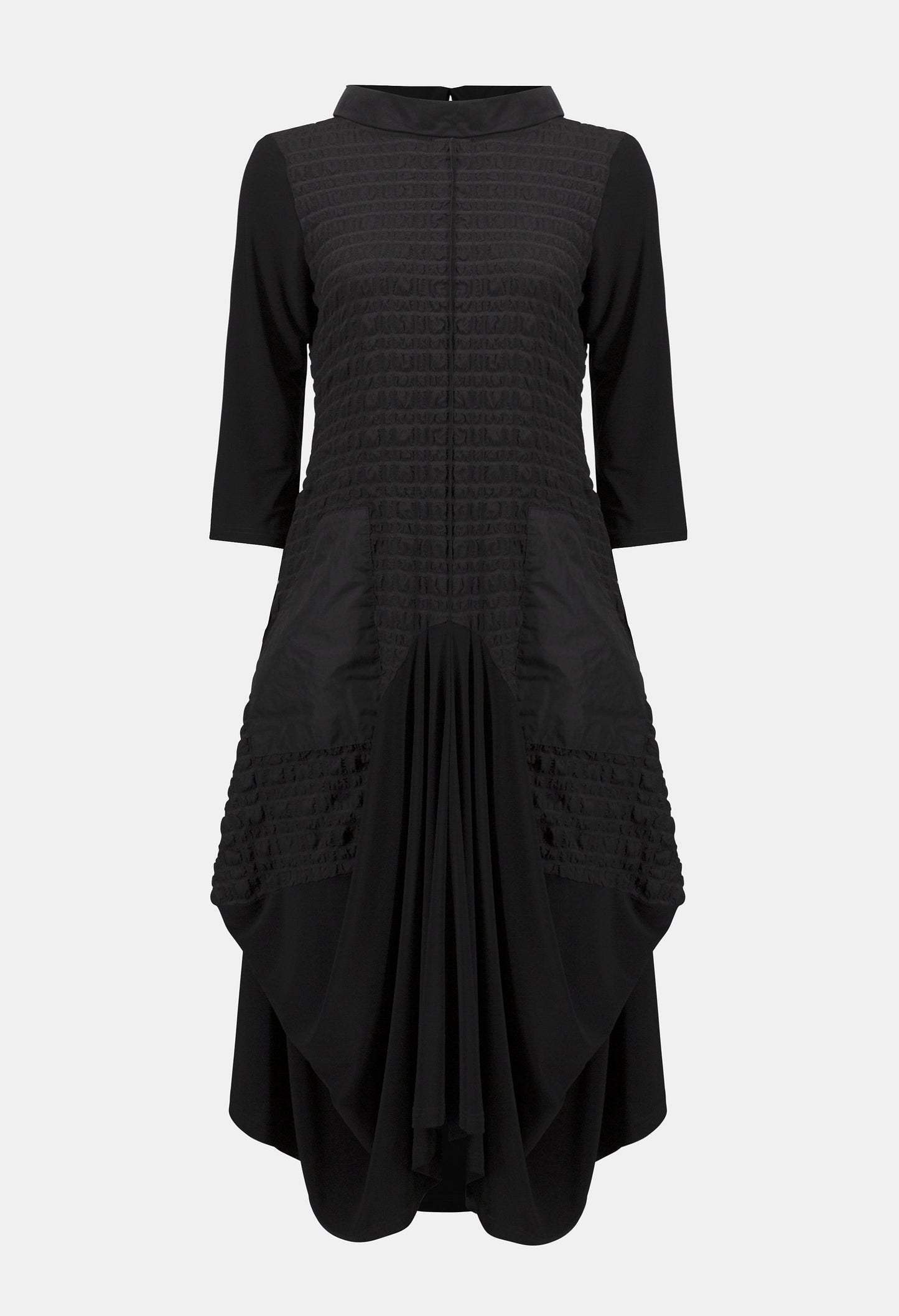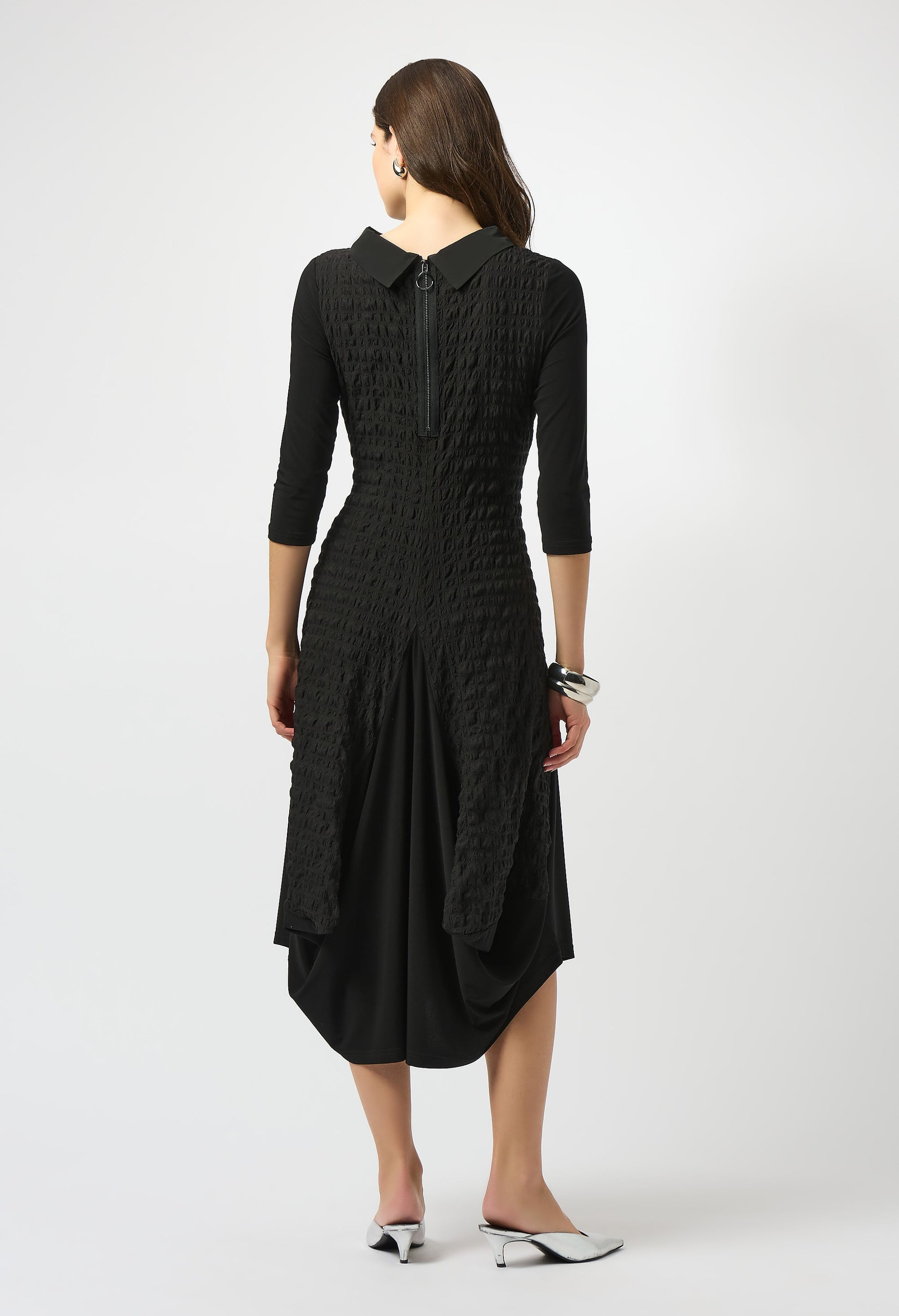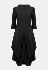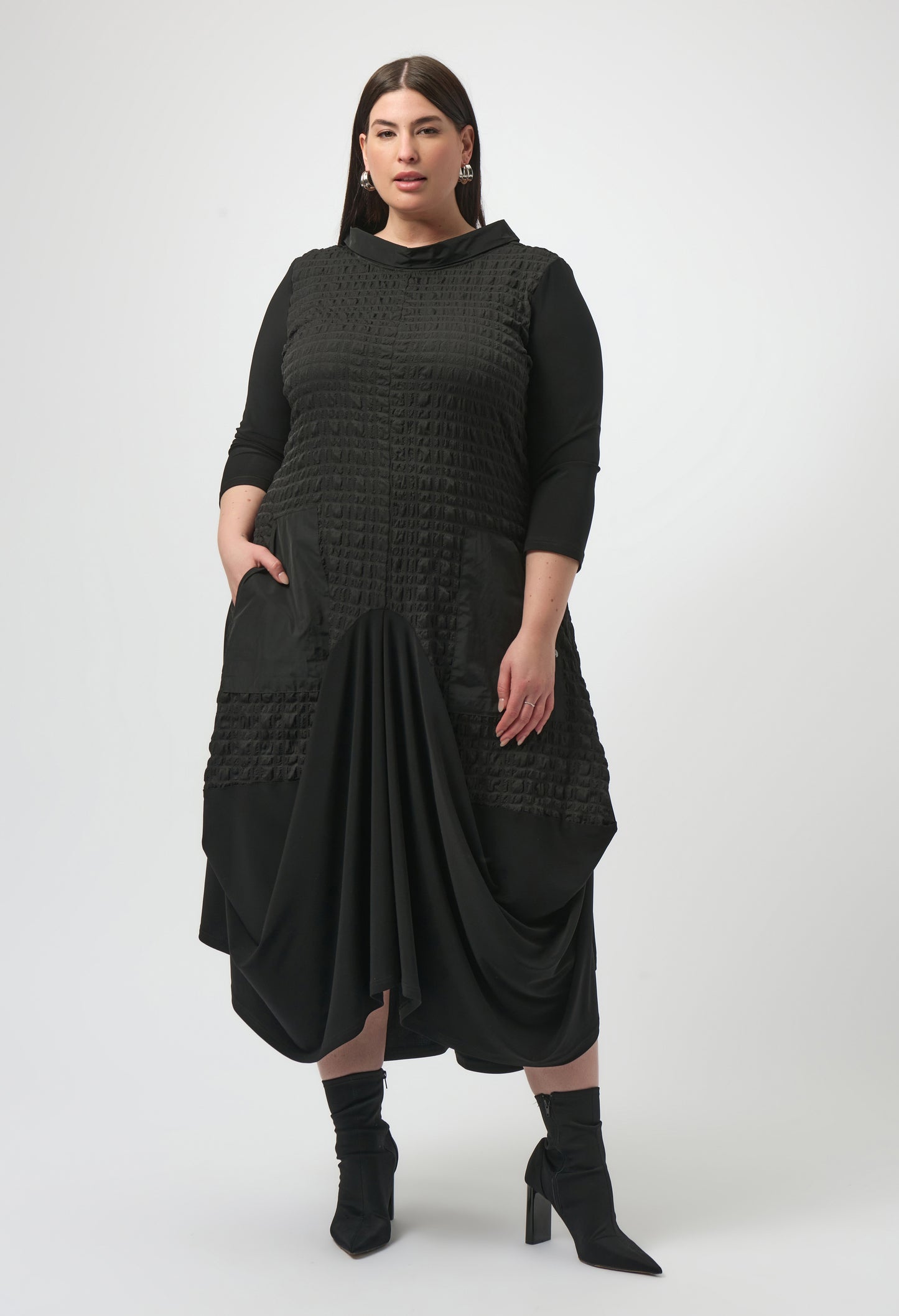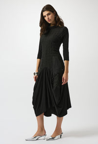 Experience the perfect blend of comfort and elegance with Joseph Ribkoff's A-line midi dress. Designed for both casual and semi-formal occasions, this dress features a flattering round neck and 3/4 straight sleeves. The ruched detailing and convenient pockets add a touch of practicality to its feminine style. The plain pattern ensures versatile wear, making it a must-have wardrobe staple.