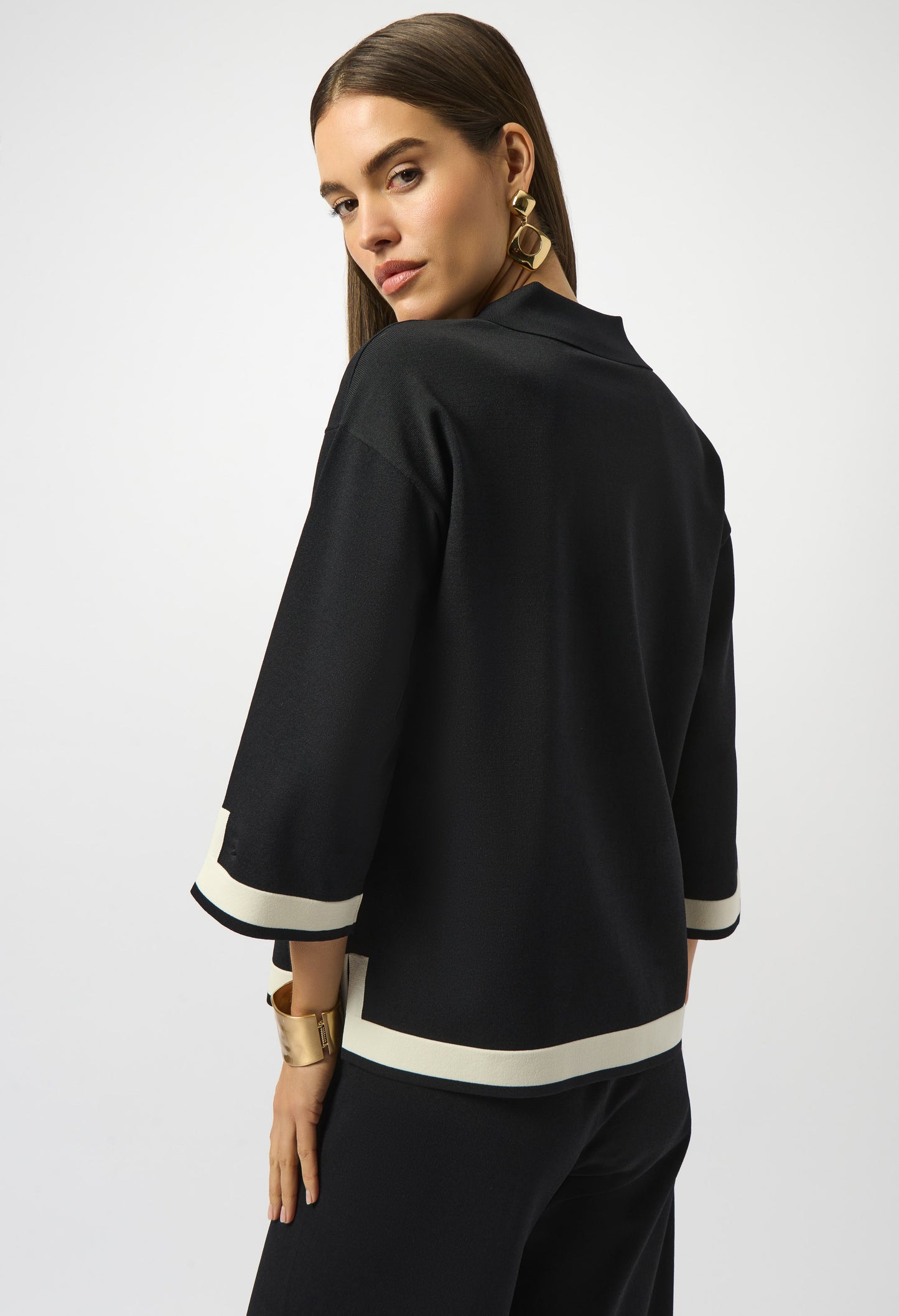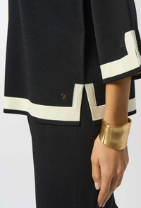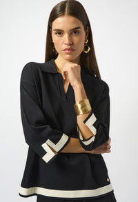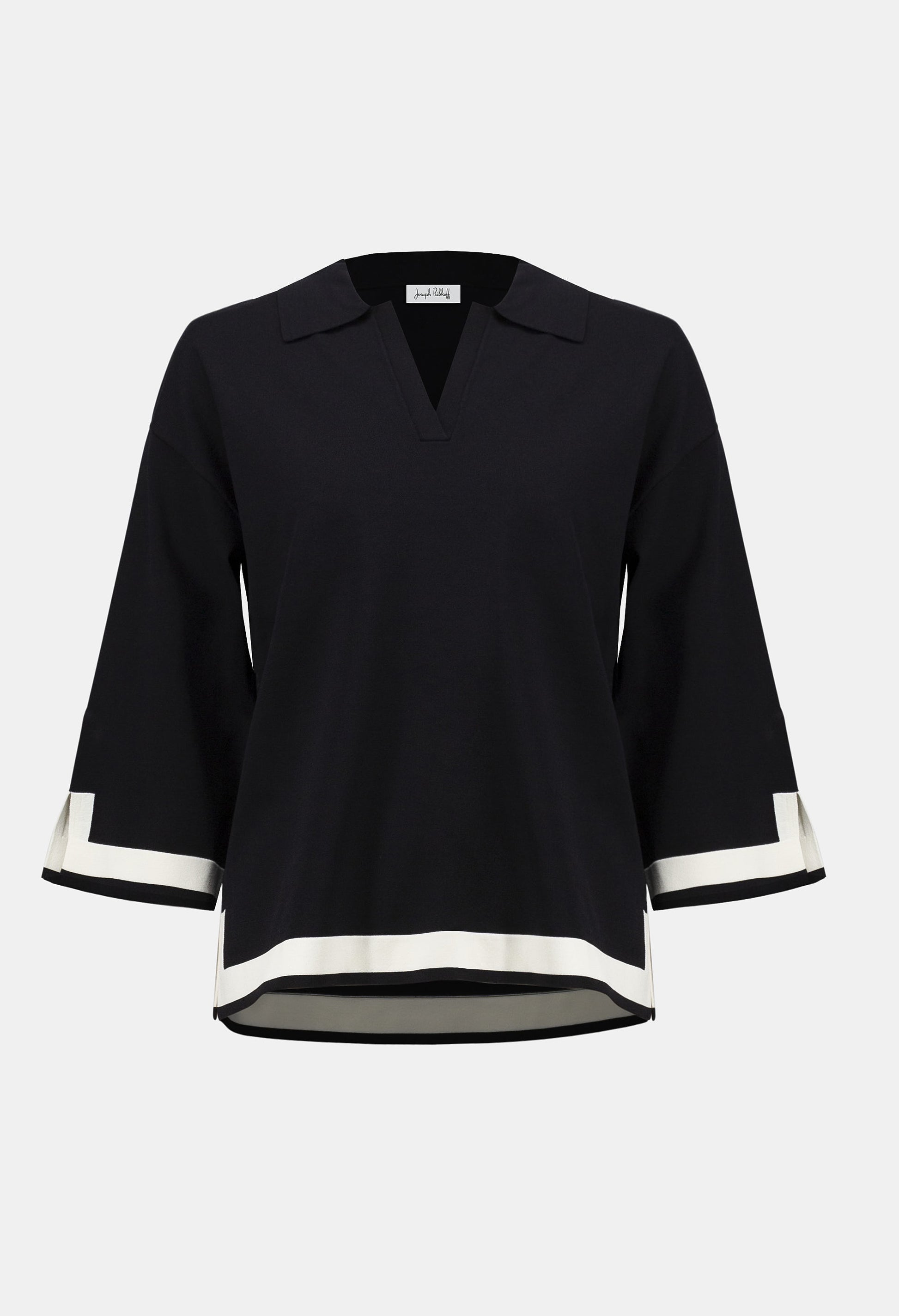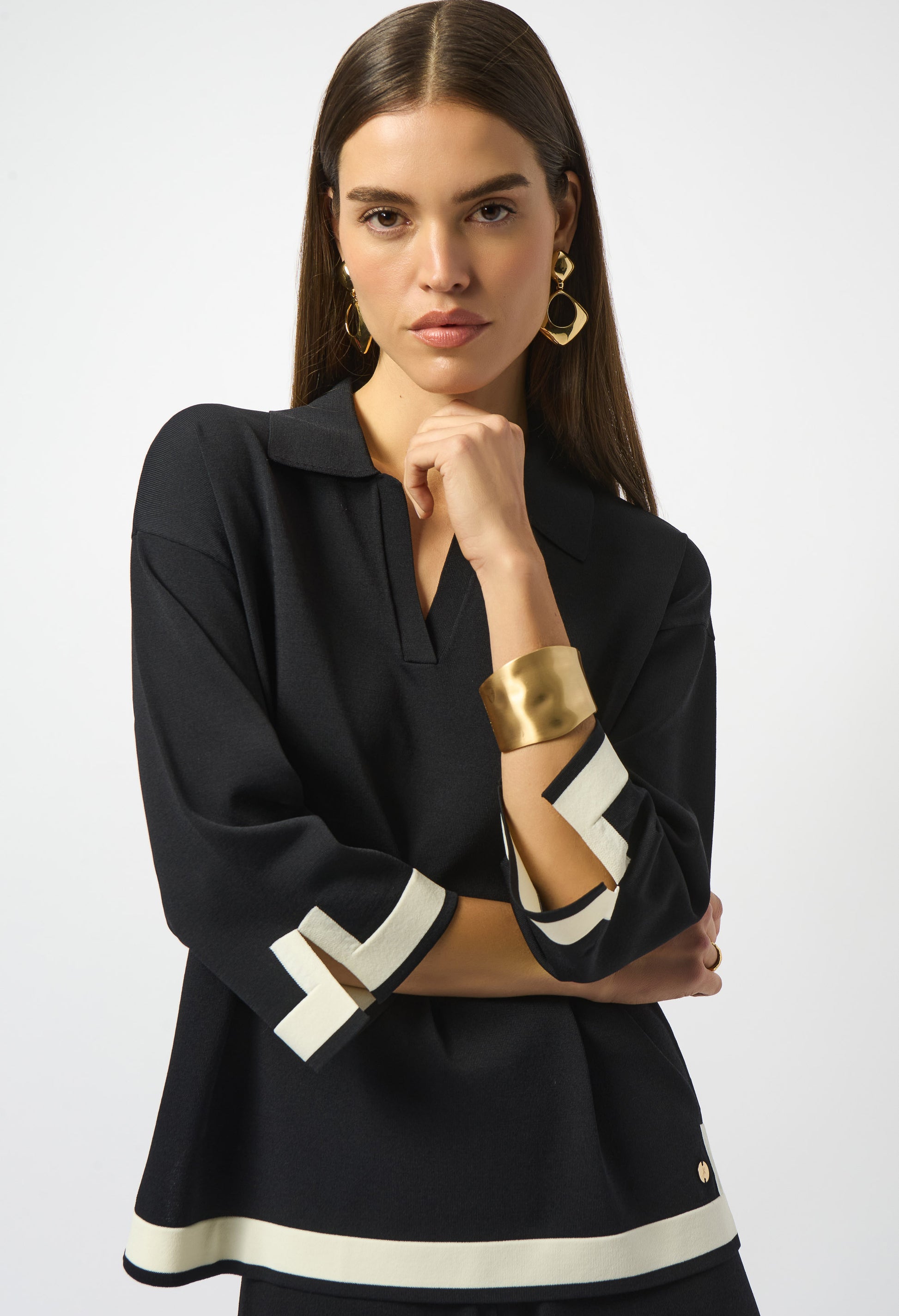 Introducing the Joseph Ribkoff pullover, a chic and minimalistic addition to your wardrobe. This hiplength, regular-fit piece features a buttoned and embellished closure, paired with a sophisticated collar and V-neckline. Perfect for casual, office, or semi-formal occasions, it boasts a plain pattern and 3/4 straight sleeves, ensuring both style and comfort.