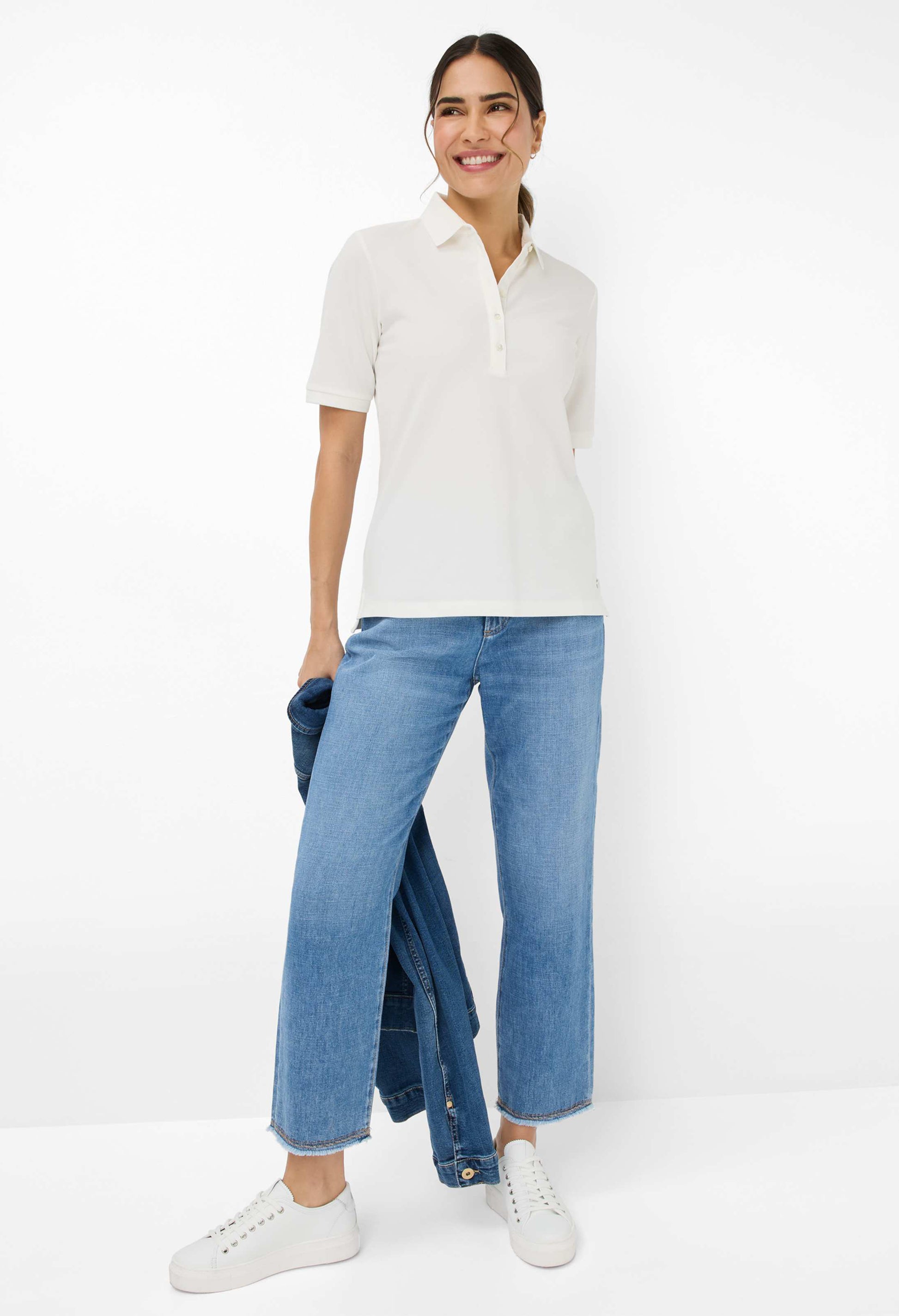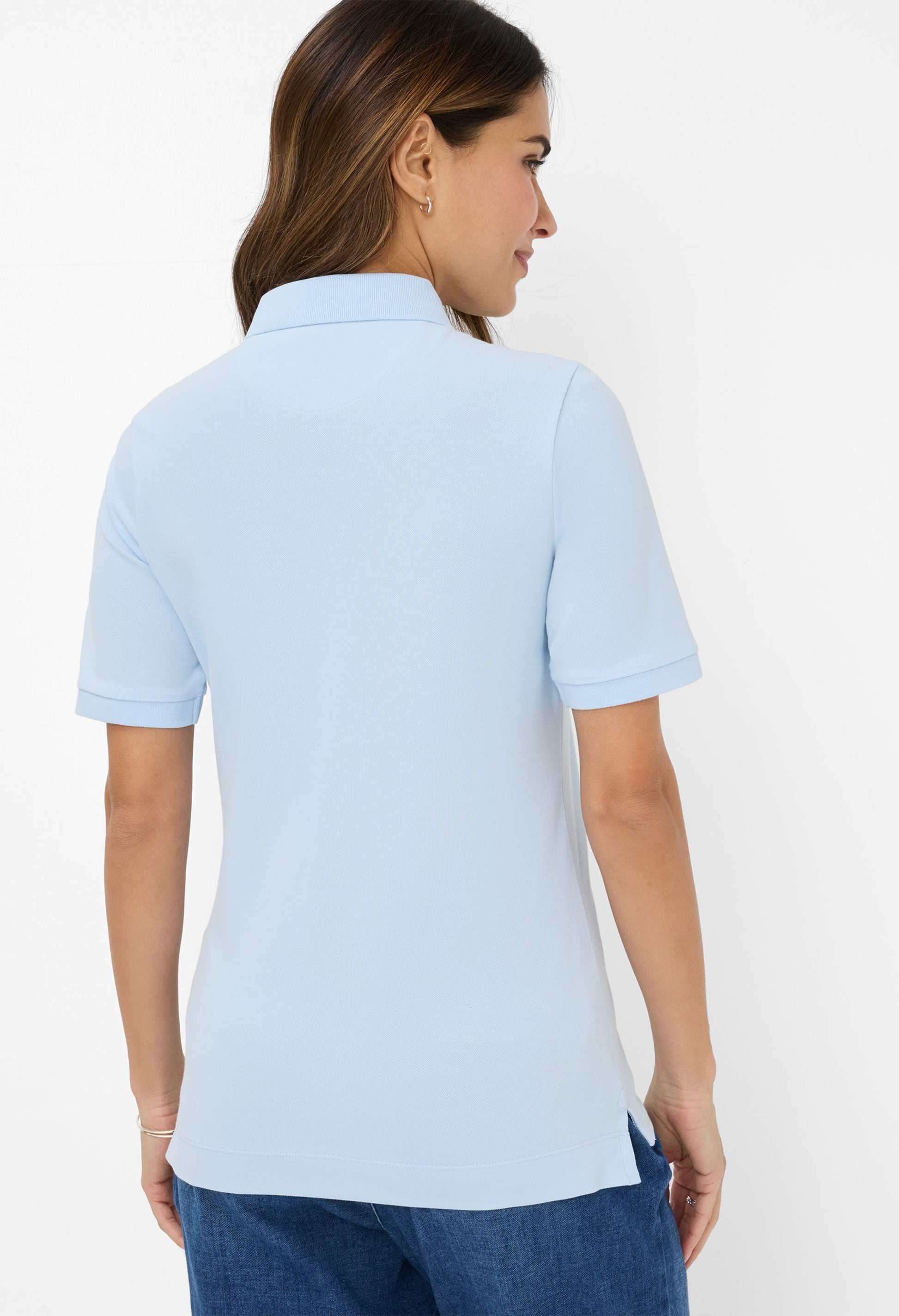 The Cleo-style polo shirt is your perfect companion for spring – a stylish essential that combines sporty elegance with modern casualness. The tailored silhouette flatters the figure and creates a feminine look, while the classic button placket with polo collar underscores the timeless character of this design. Made from high-quality piqué fabric with 97% cotton and 3% elastane, the shirt offers a comfortable feel and optimal freedom of movement.