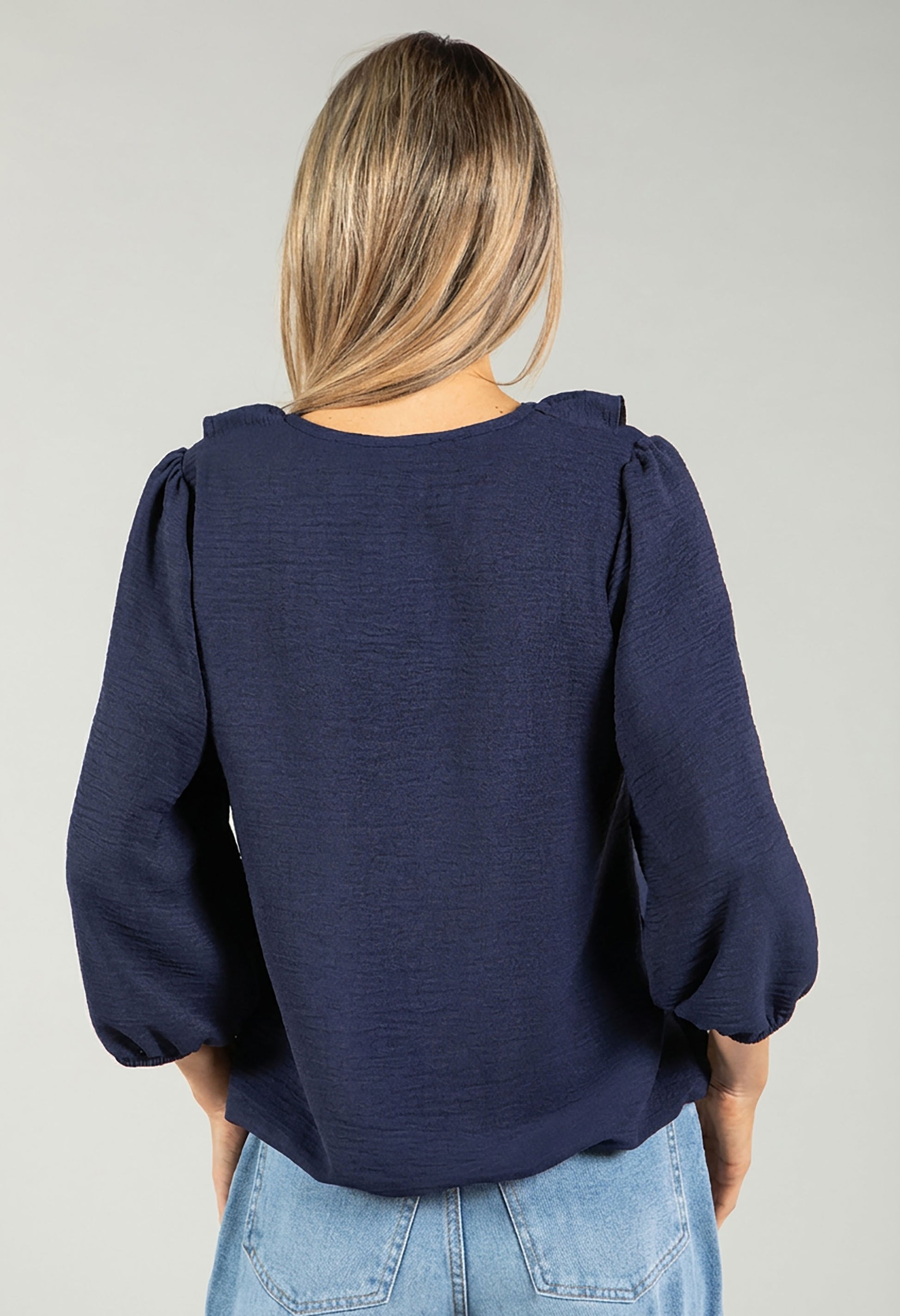 Introducing Corail, a charming blouse that brings feminine elegance to your wardrobe. The delicate frill detail at the neckline adds a playful touch, while the relaxed fit ensures all-day comfort. Three-quarter length sleeves with elasticated cuffs pair beautifully with the V-neckline, and the elasticated hemline keeps everything in place—a sophisticated piece perfect for work or weekend wear.