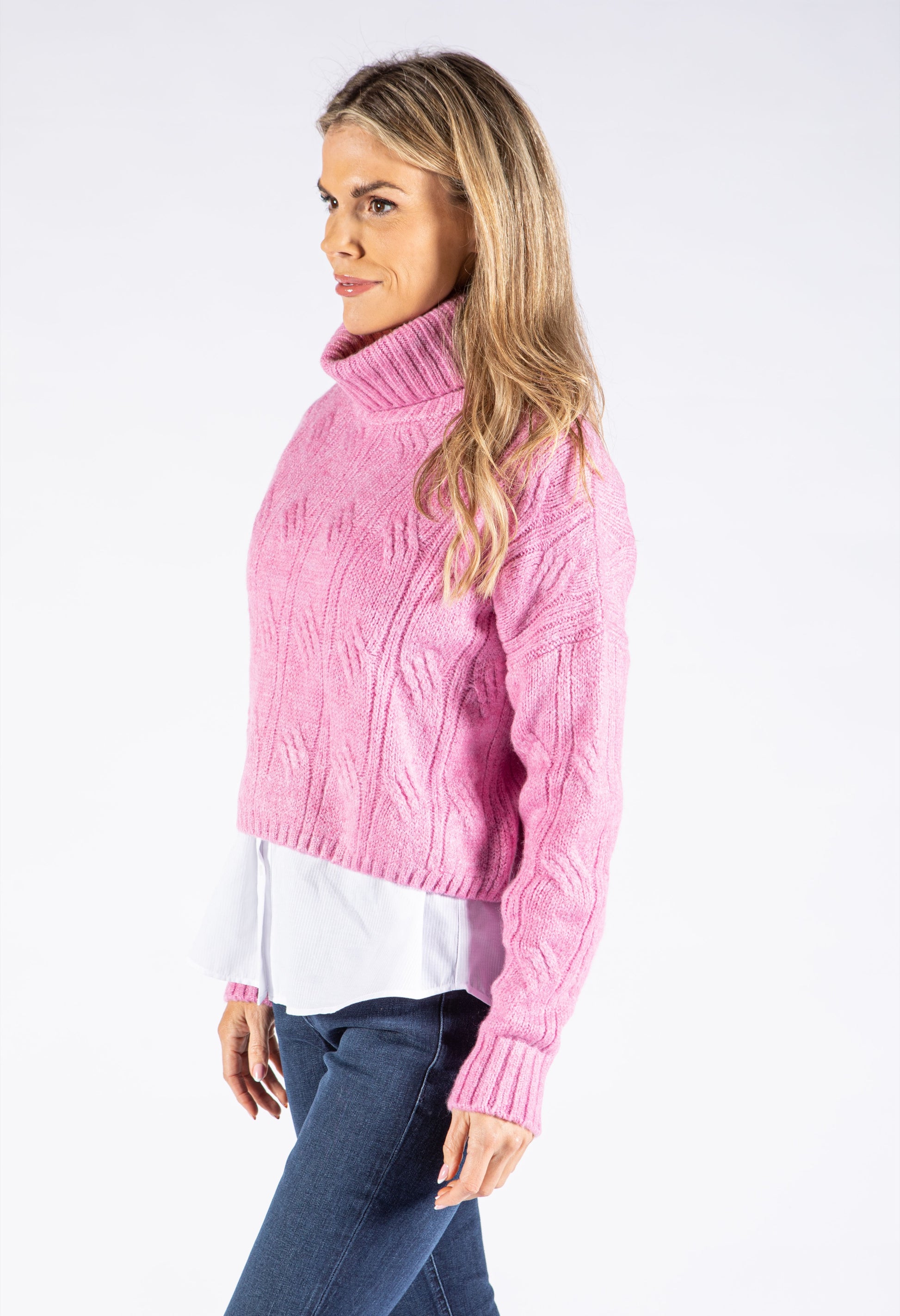 Twist Cropped Knit Roll Neck