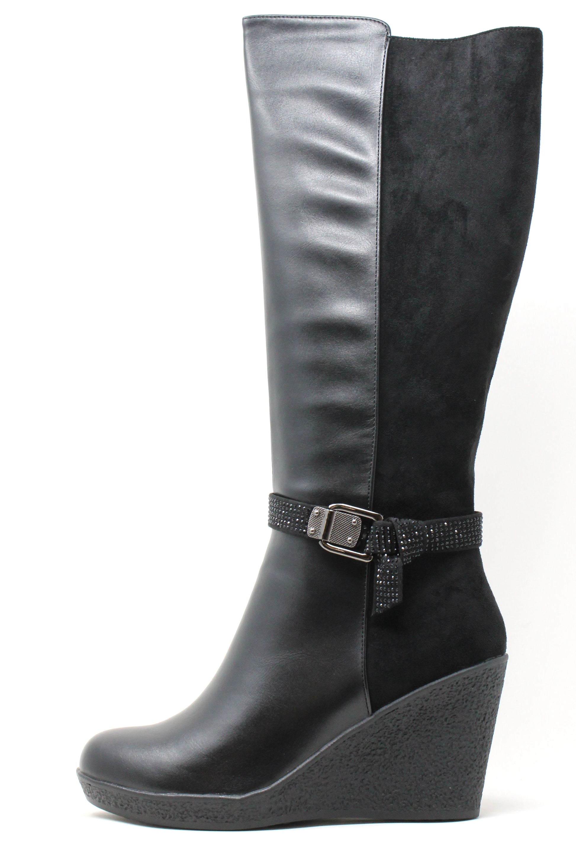 Essential Footwear Diamante Buckle Knee High Boot