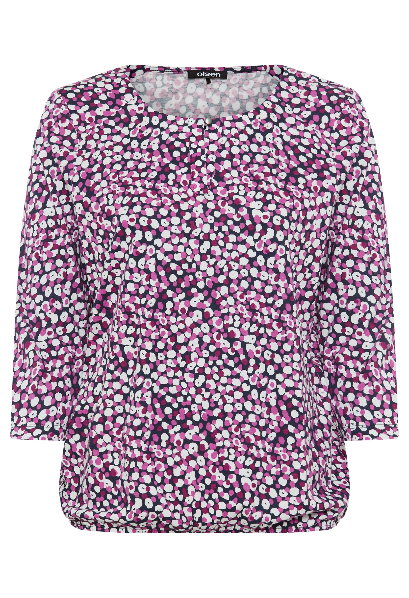 This blouse showcases a round neckline and 3/4 length sleeves for a balanced look. Featuring a charming ditsy print and an elasticated waistband, it offers both style and a comfortable, flattering fit.