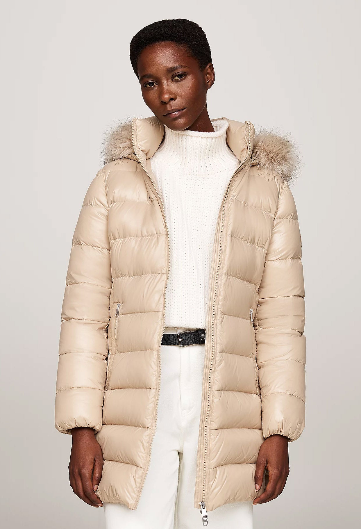 • Removable faux fur trim on hood