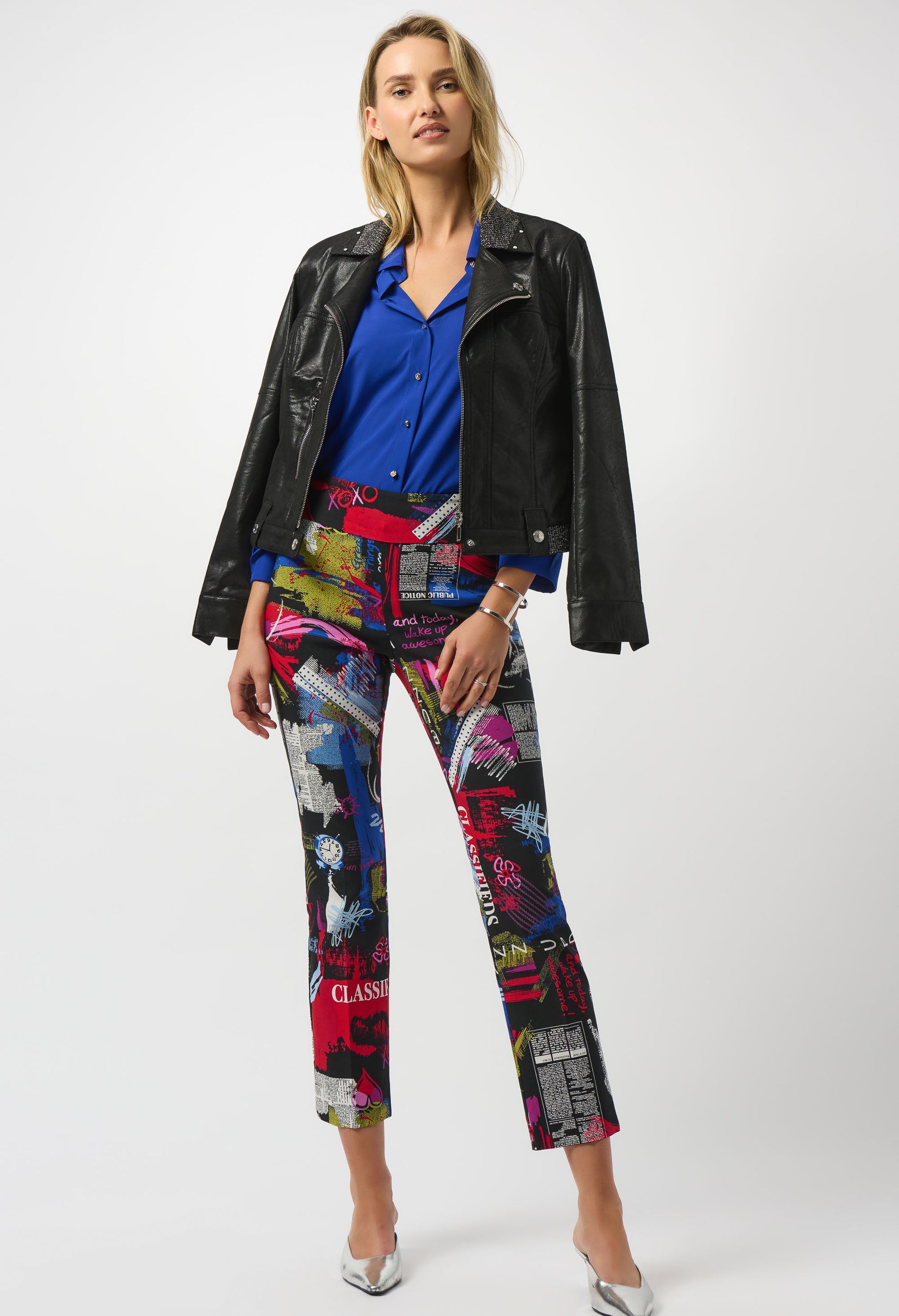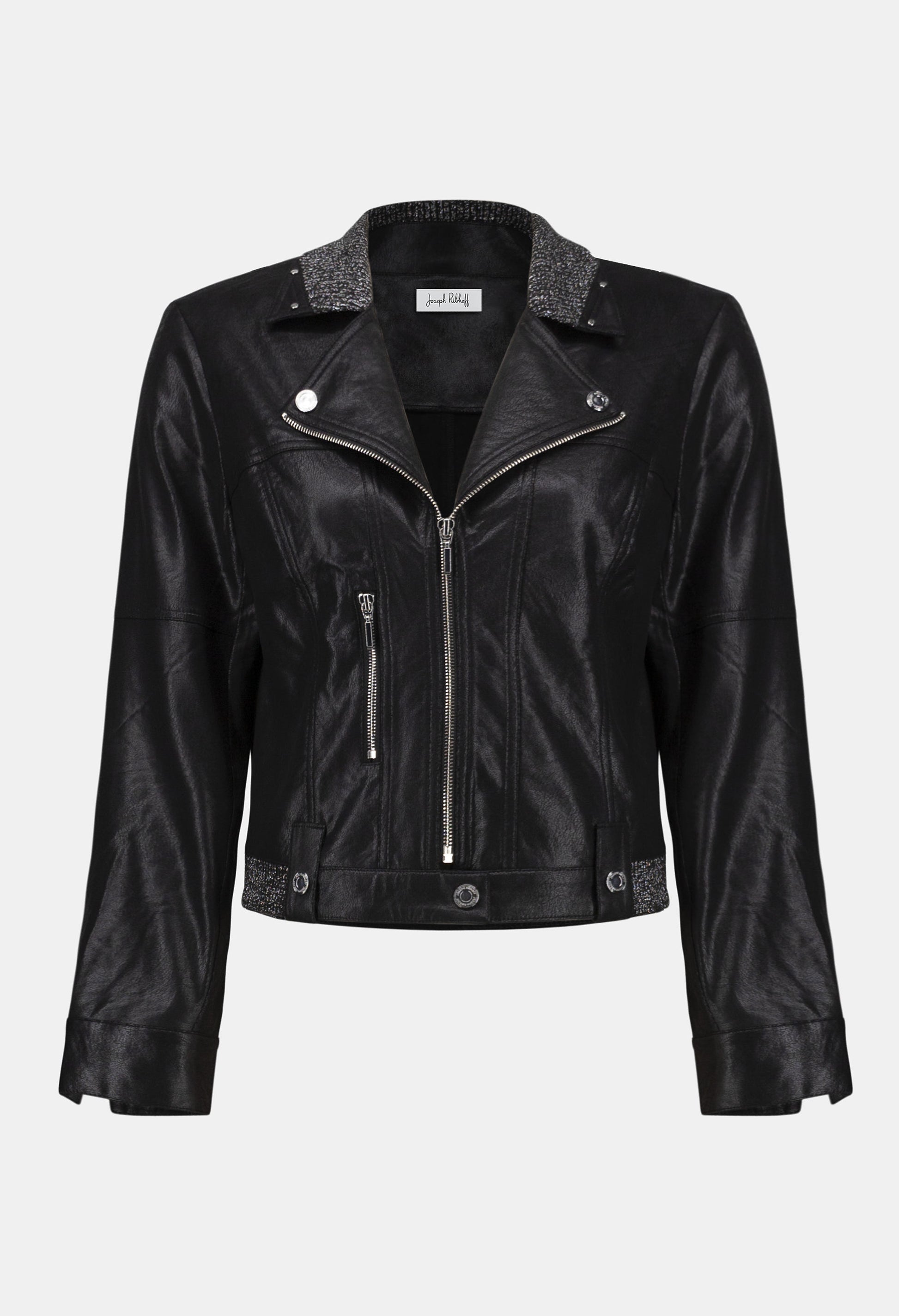 Slip into the sophisticated charm of Joseph Ribkoff with this leather overclothes piece. Boasting a collared neckline and a regular fit, it offers a flattering waist-length design. The long, straight sleeves and plain pattern add a touch of edgy style, perfect for casual outings or a night out. Featuring both zipper and button closures, this versatile top is a must-have for any wardrobe.