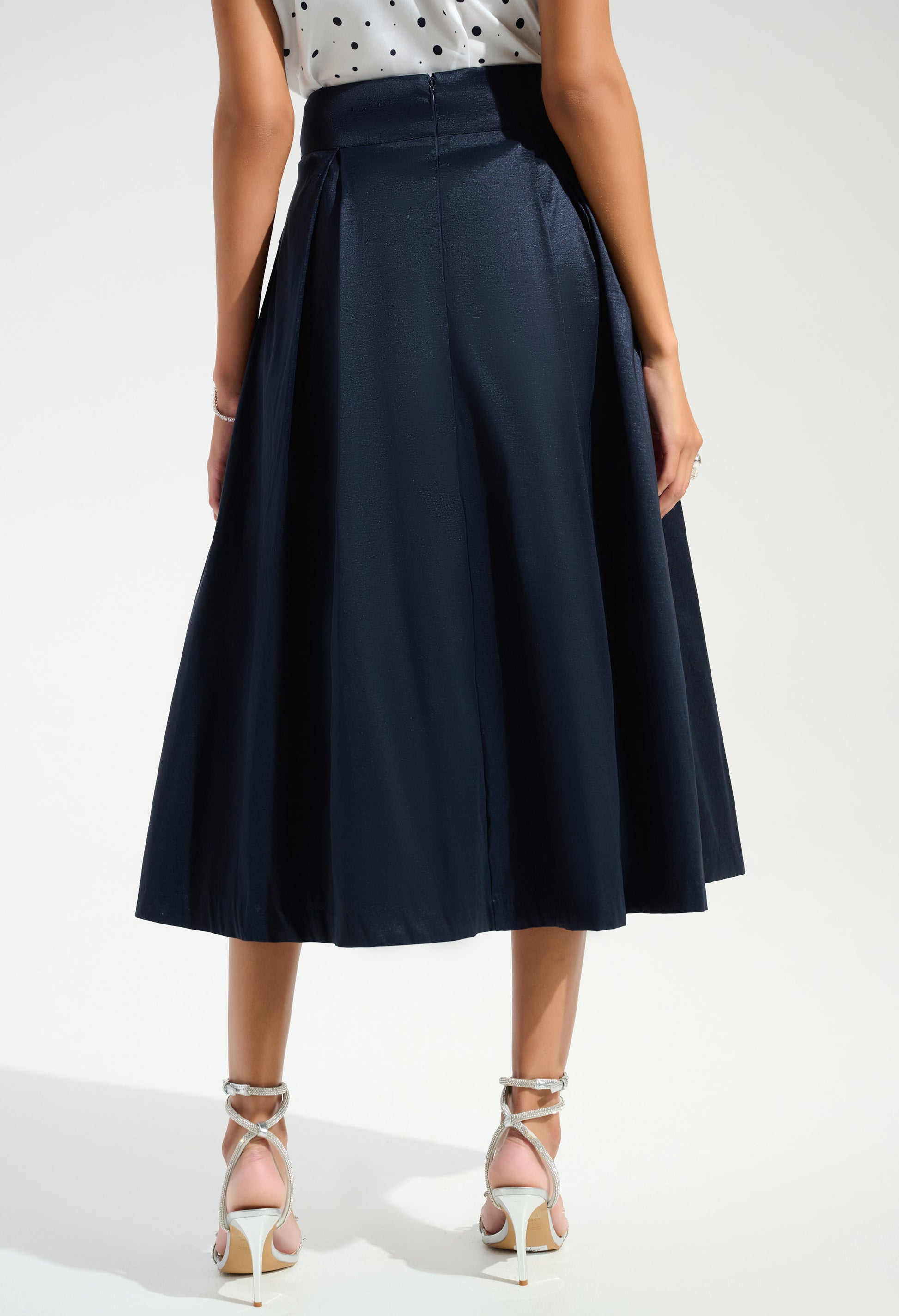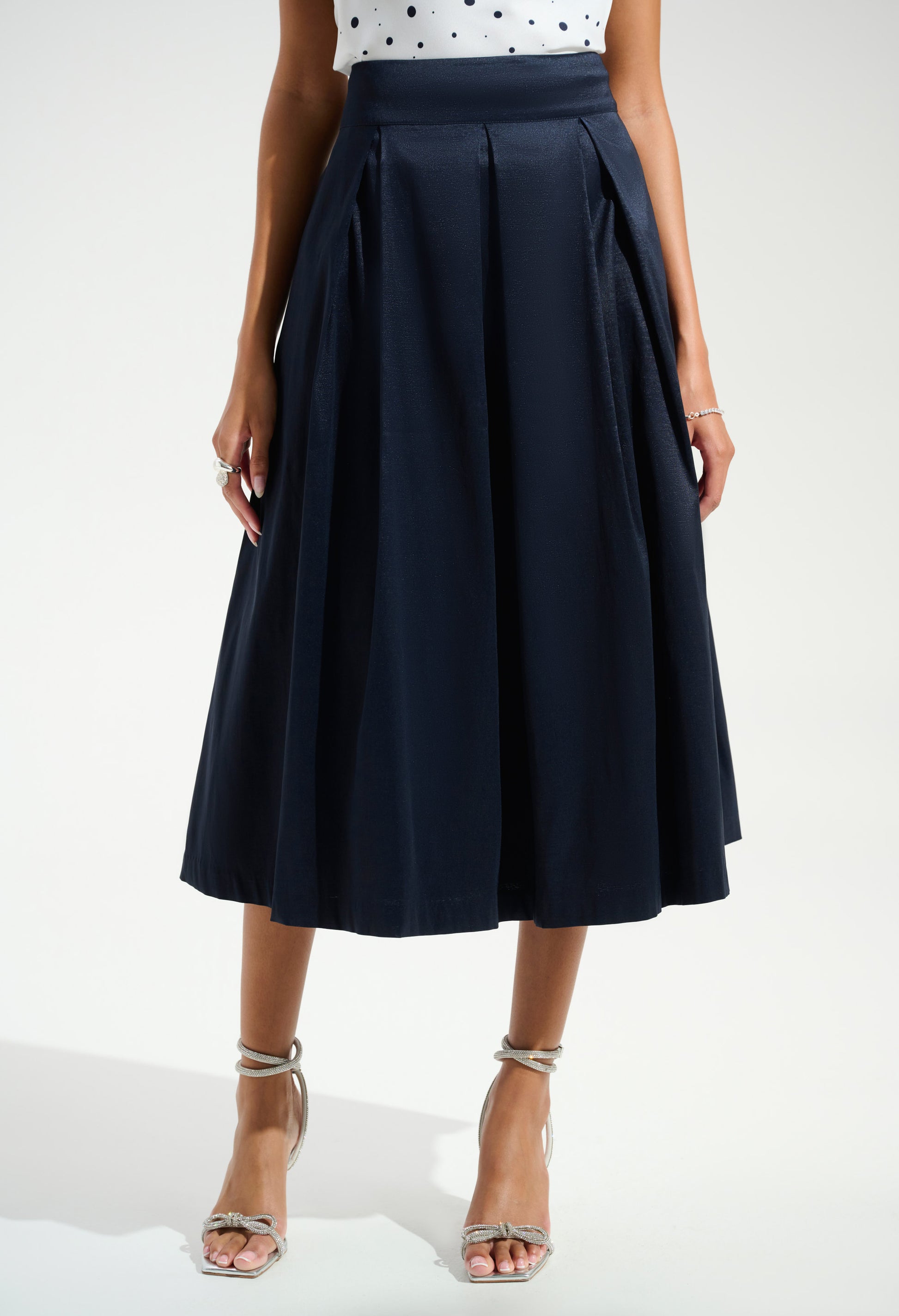 Experience timeless elegance with the Joseph Ribkoff A-line midi skirt. Perfect for formal, semi-formal, or casual occasions, this high-waist skirt boasts a feminine and elegant style. The pleated design and plain pattern enhance its sophisticated appeal, making it a versatile addition to any wardrobe. Ideal for those seeking a blend of comfort and chic fashion.