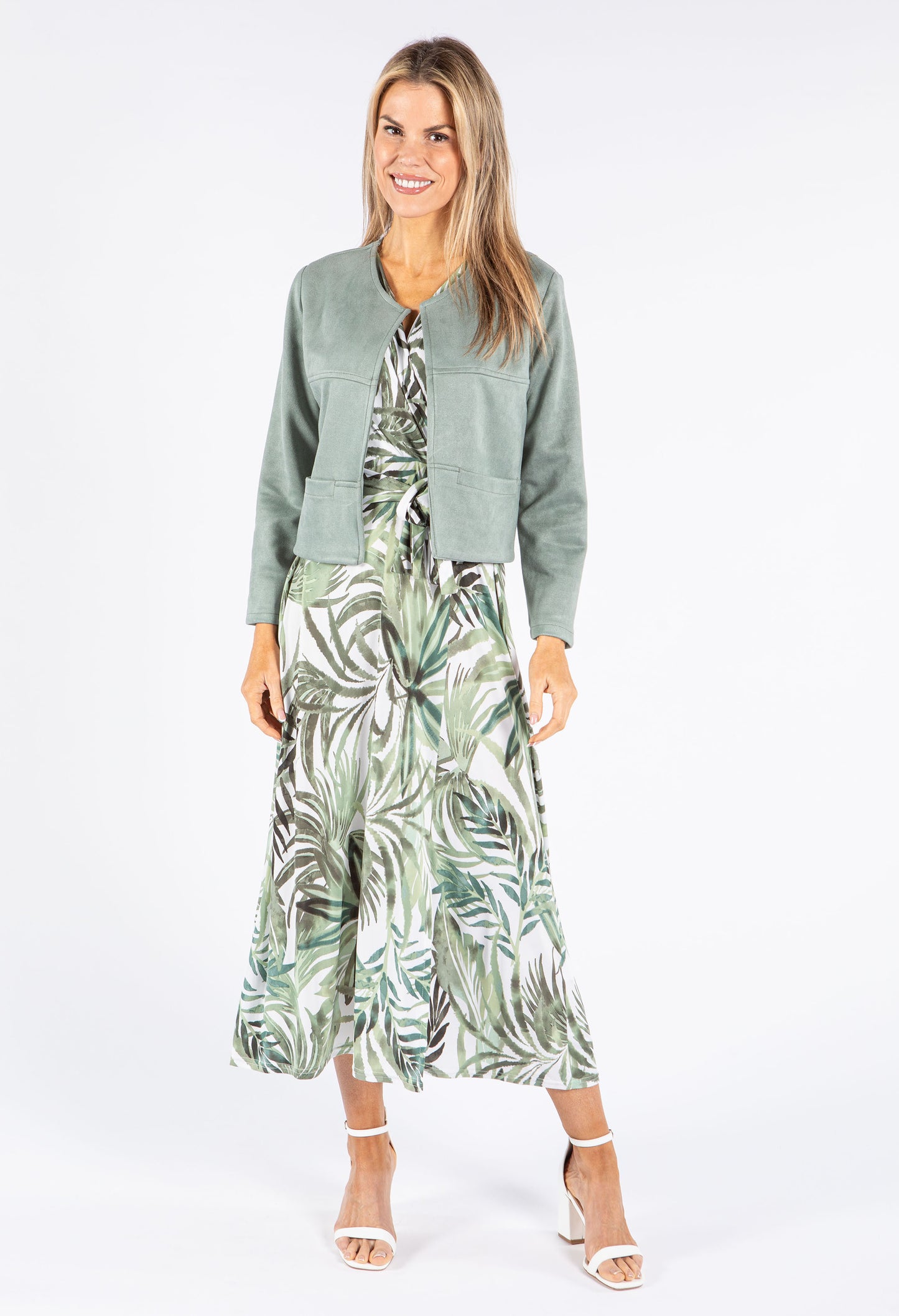 Lifestyle Image - Sage: Dress, Heels, Bag, Sunglasses