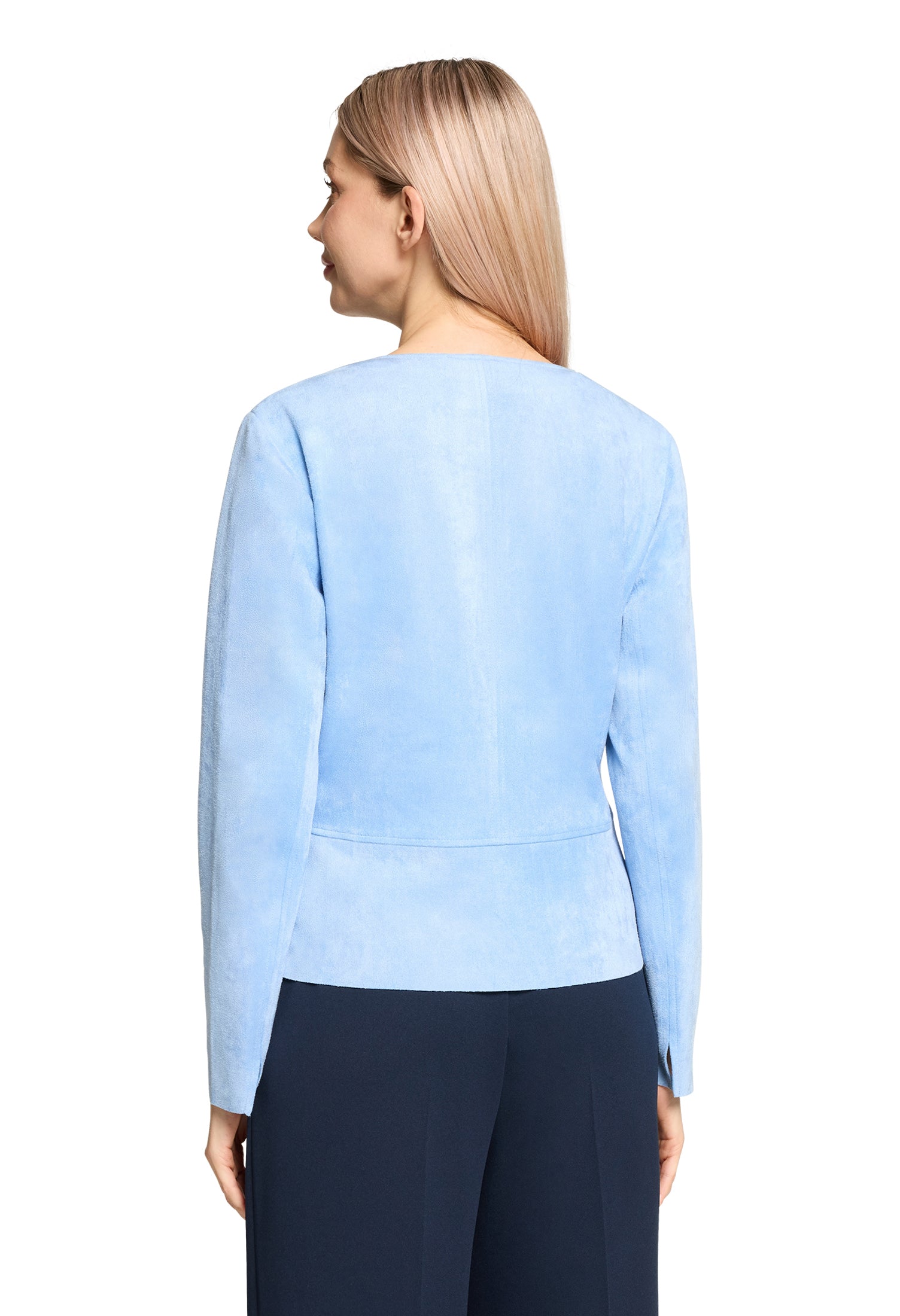 Elevate your style with this sleek faux suede zip-up jacket. The close-fitting 56 cm silhouette with long sleeves and round neckline offers timeless sophistication, while the two-way zip provides flexible layering options. Luxe comfort made simple.