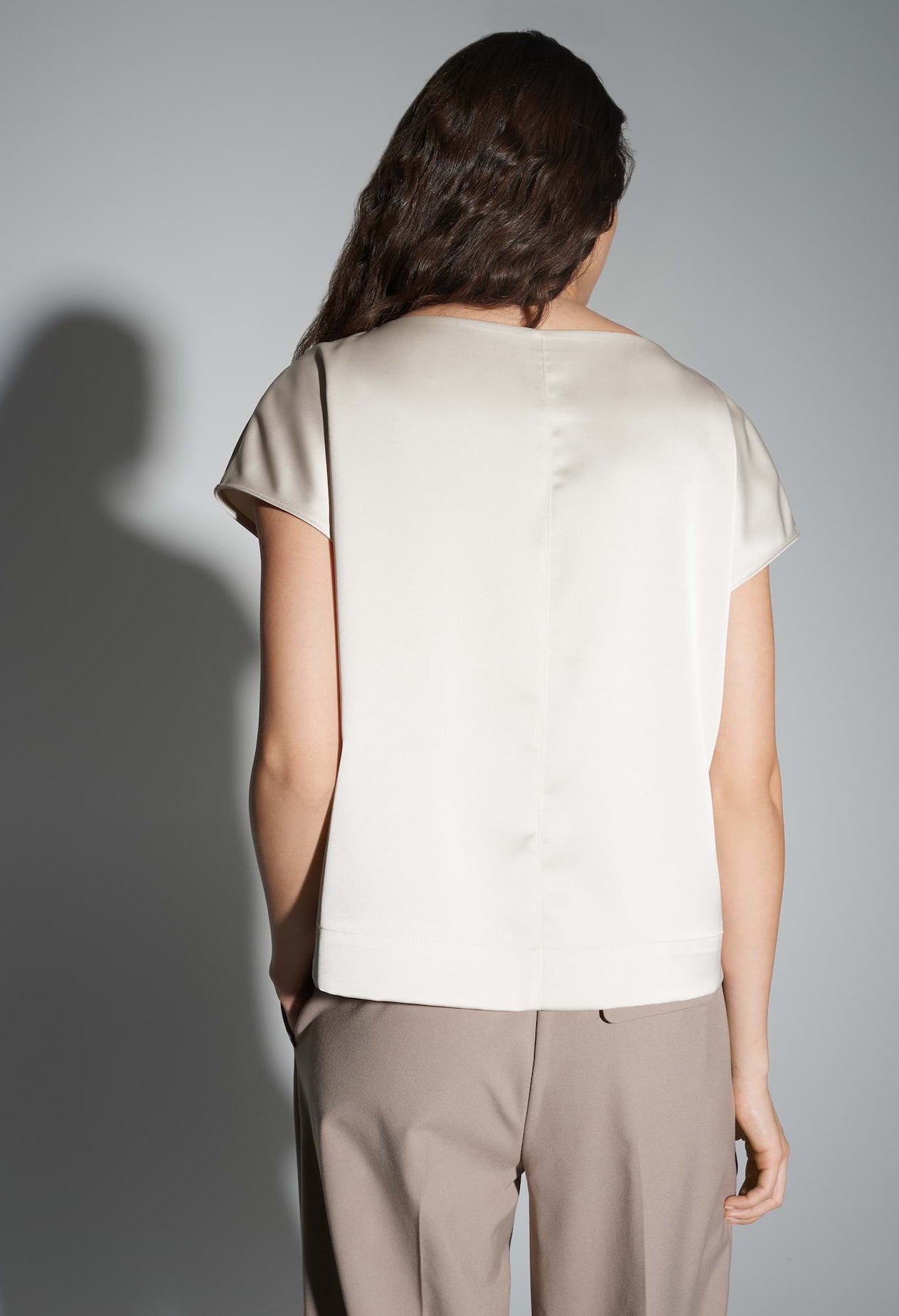 Satin meets minimalist chic. The flowing shirt blouse can be effortlessly combined with the matching wide-leg trousers to create a glamorous outfit for special occasions.