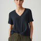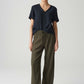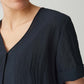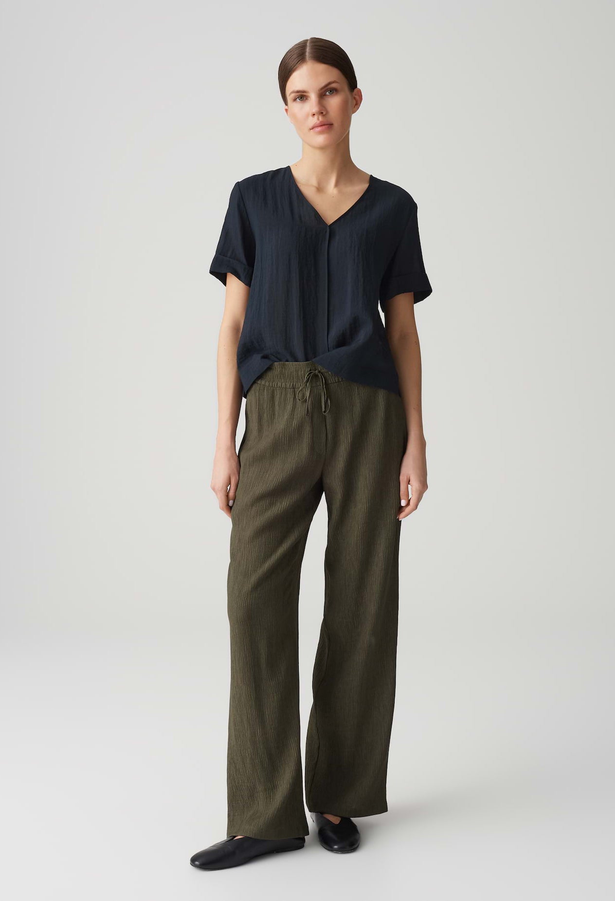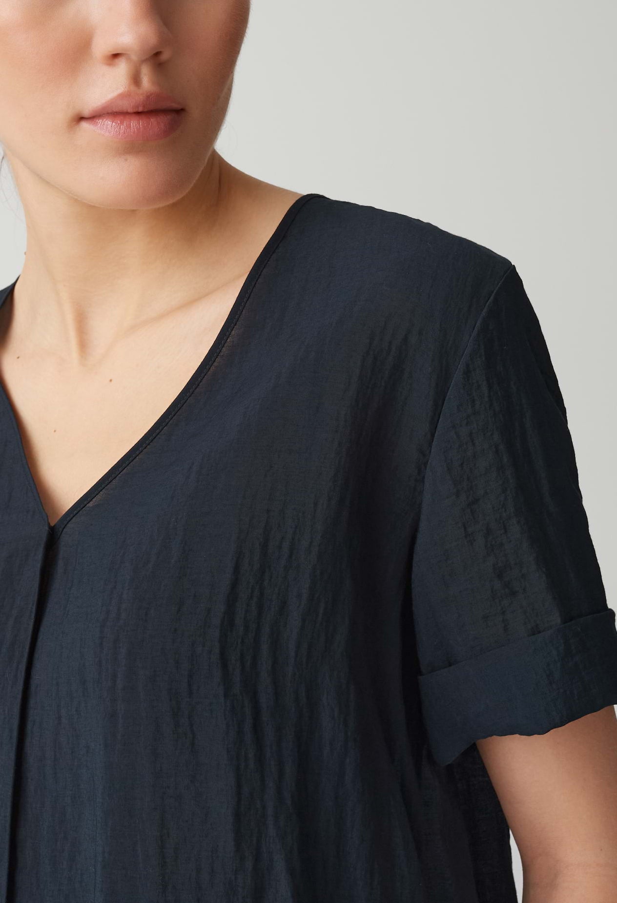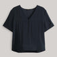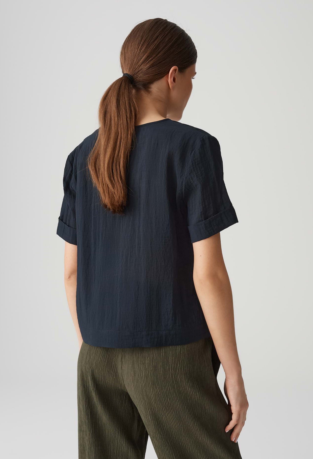 The subtly structured boxy blouse with contrasting piping detail at the neckline is a light and airy companion for the city. Modern and versatile.